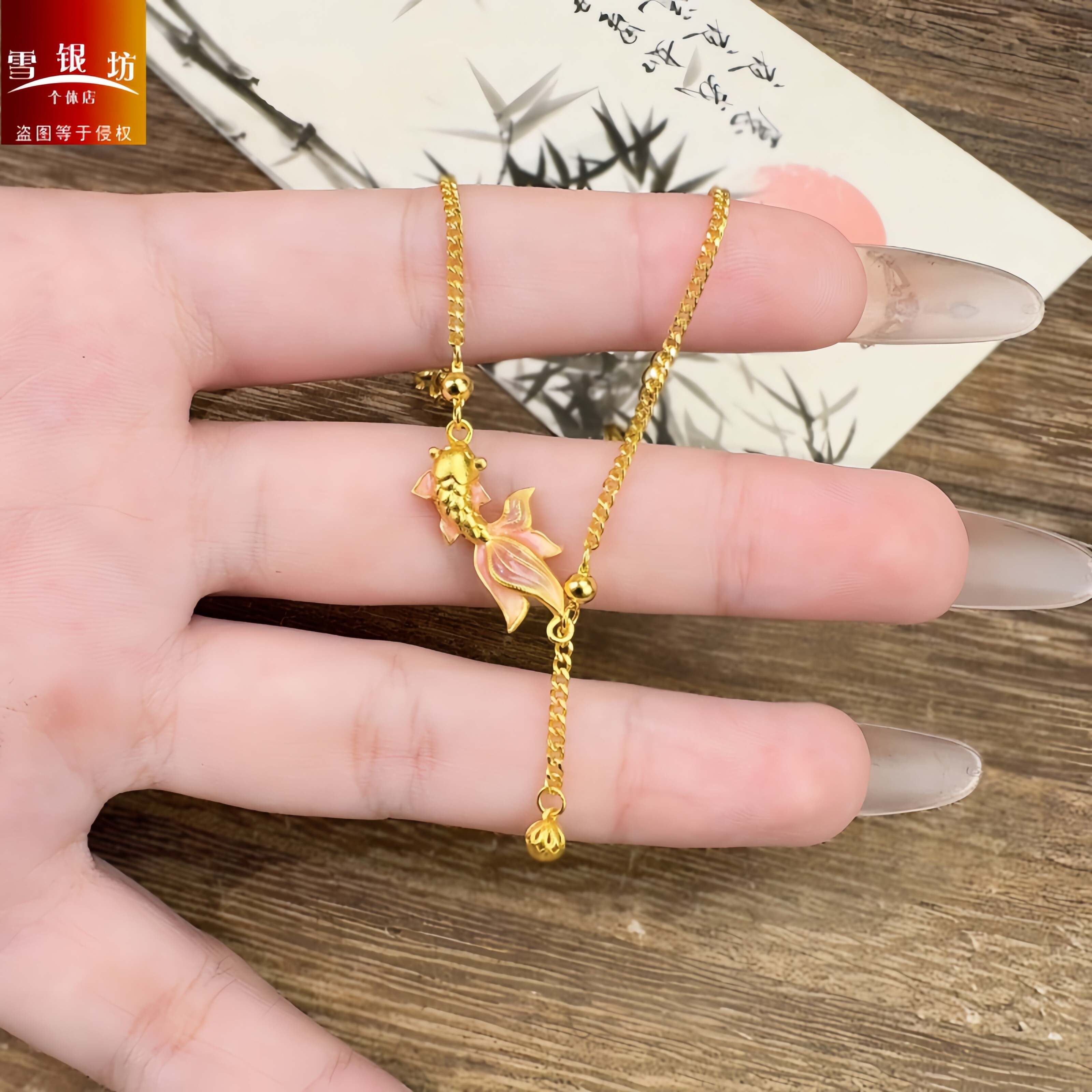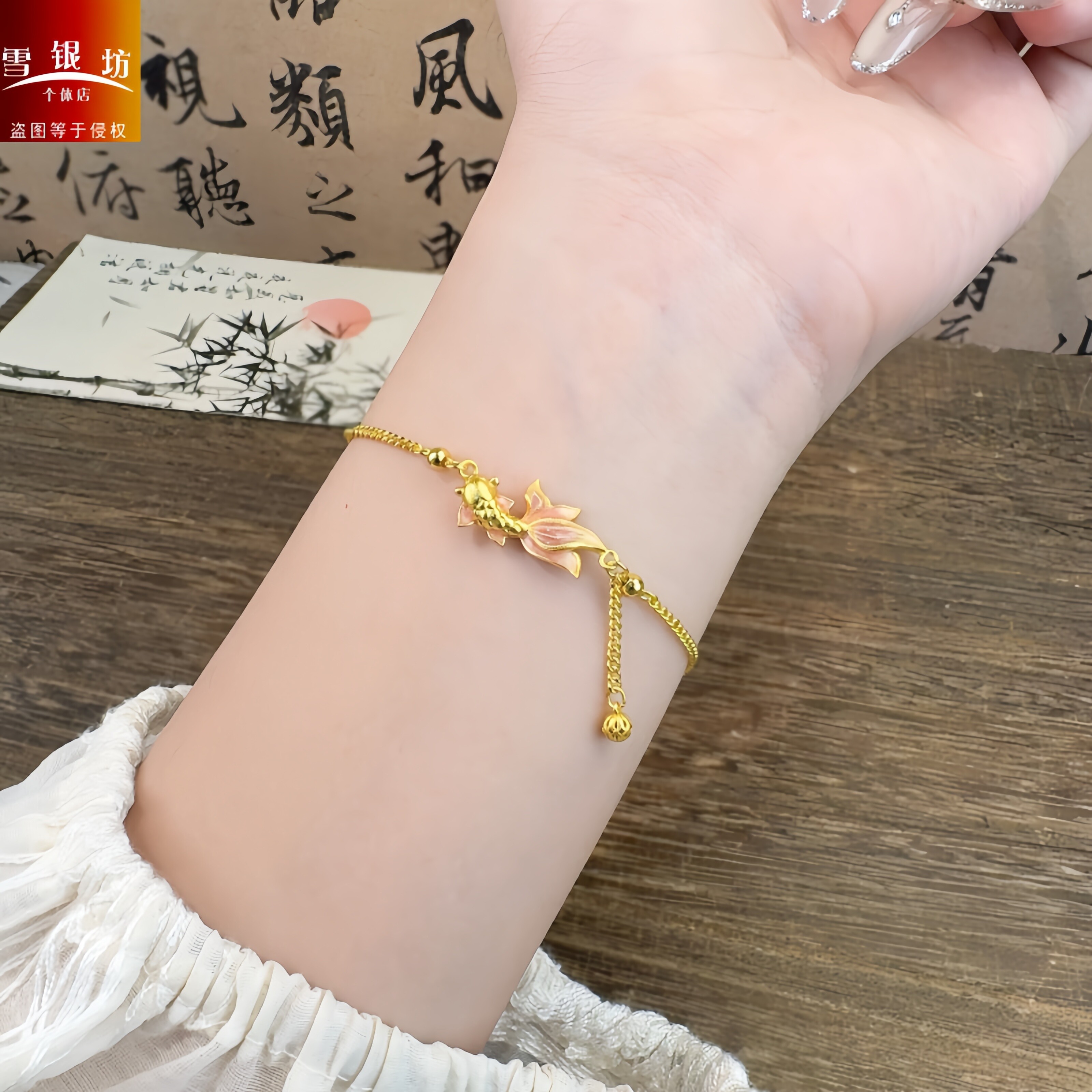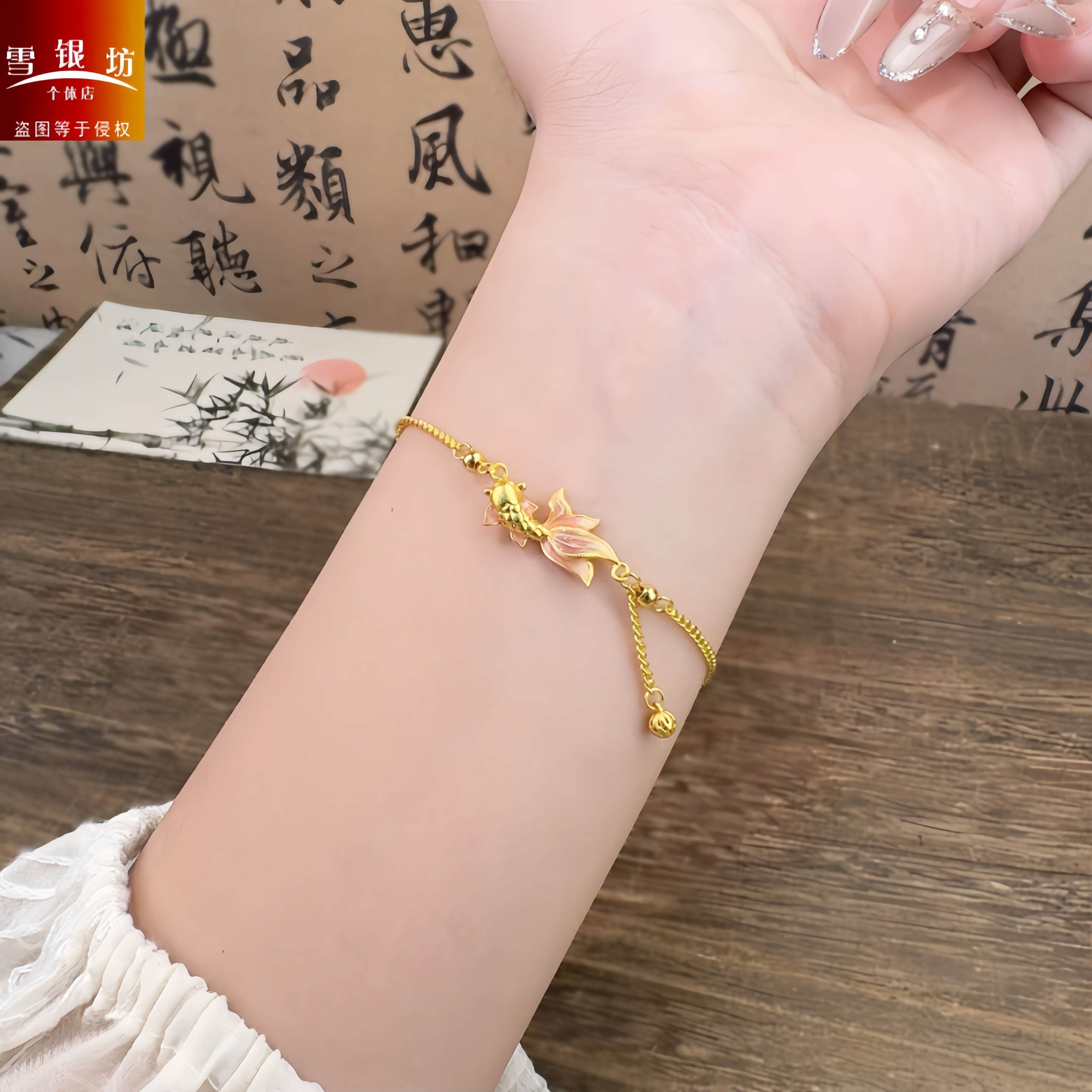 Xiao Jinli 9999 Pure Silver Enamel Colored Silver Bracelet for Women with Gold Detailing, New Chinese Style, Exquisite and Versatile, Qixi Festival Gift