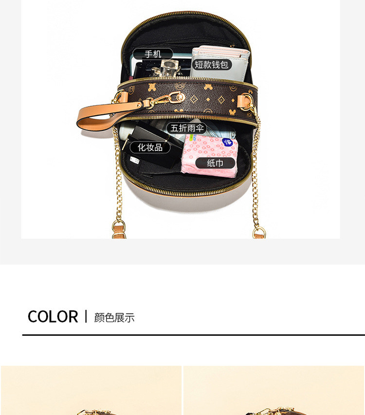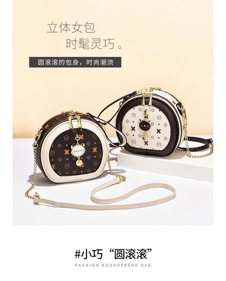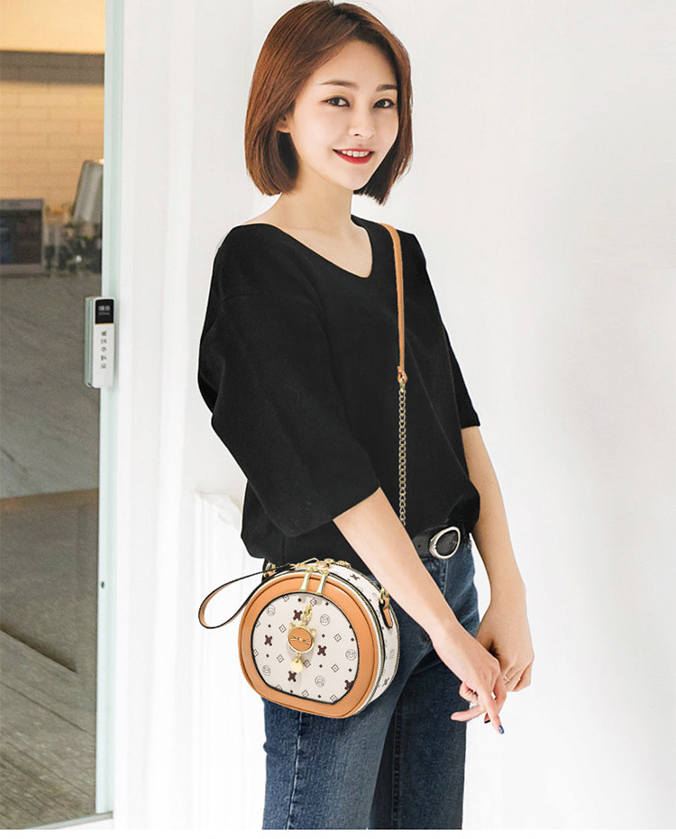 Bags for Women 2026 New Style All-Season Versatile Fashion Printed Crossbody Bag Girls Chain Small Round Bag Cartoon Shoulder Bag