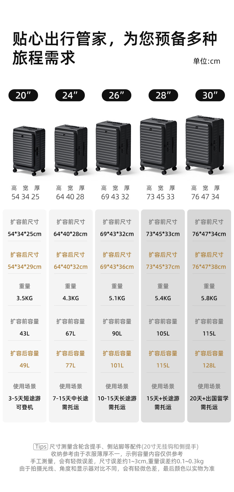 Front-Opening Suitcase for Women, Large-Capacity Carry-On Luggage, Multi-Functional Expandable Travel Password Suitcase, Trolley Case for Men