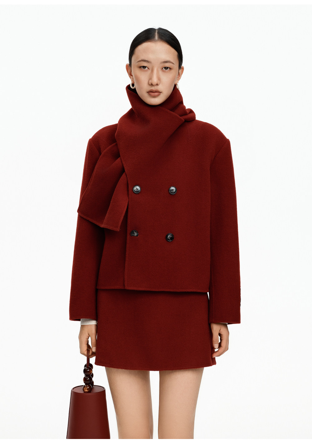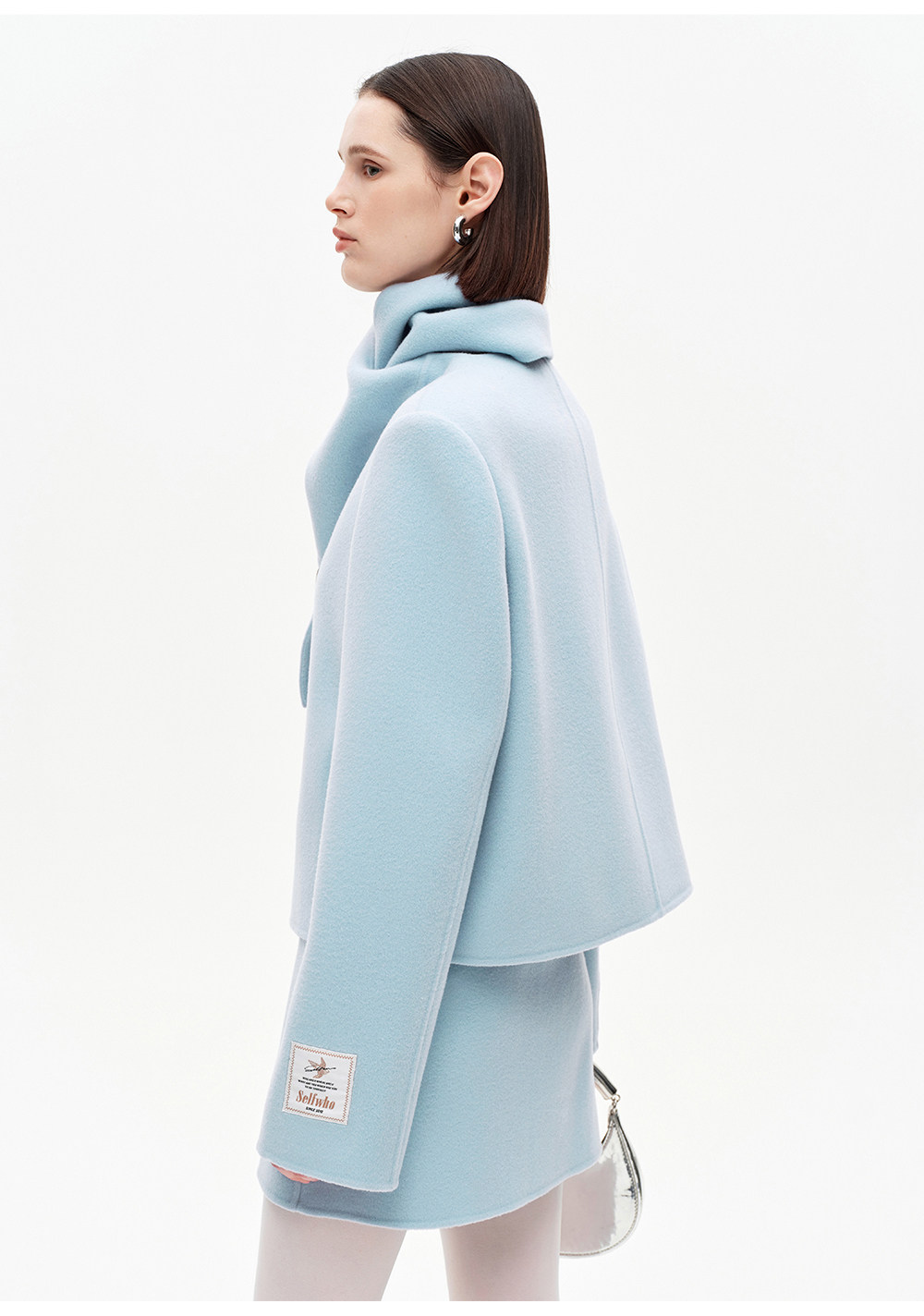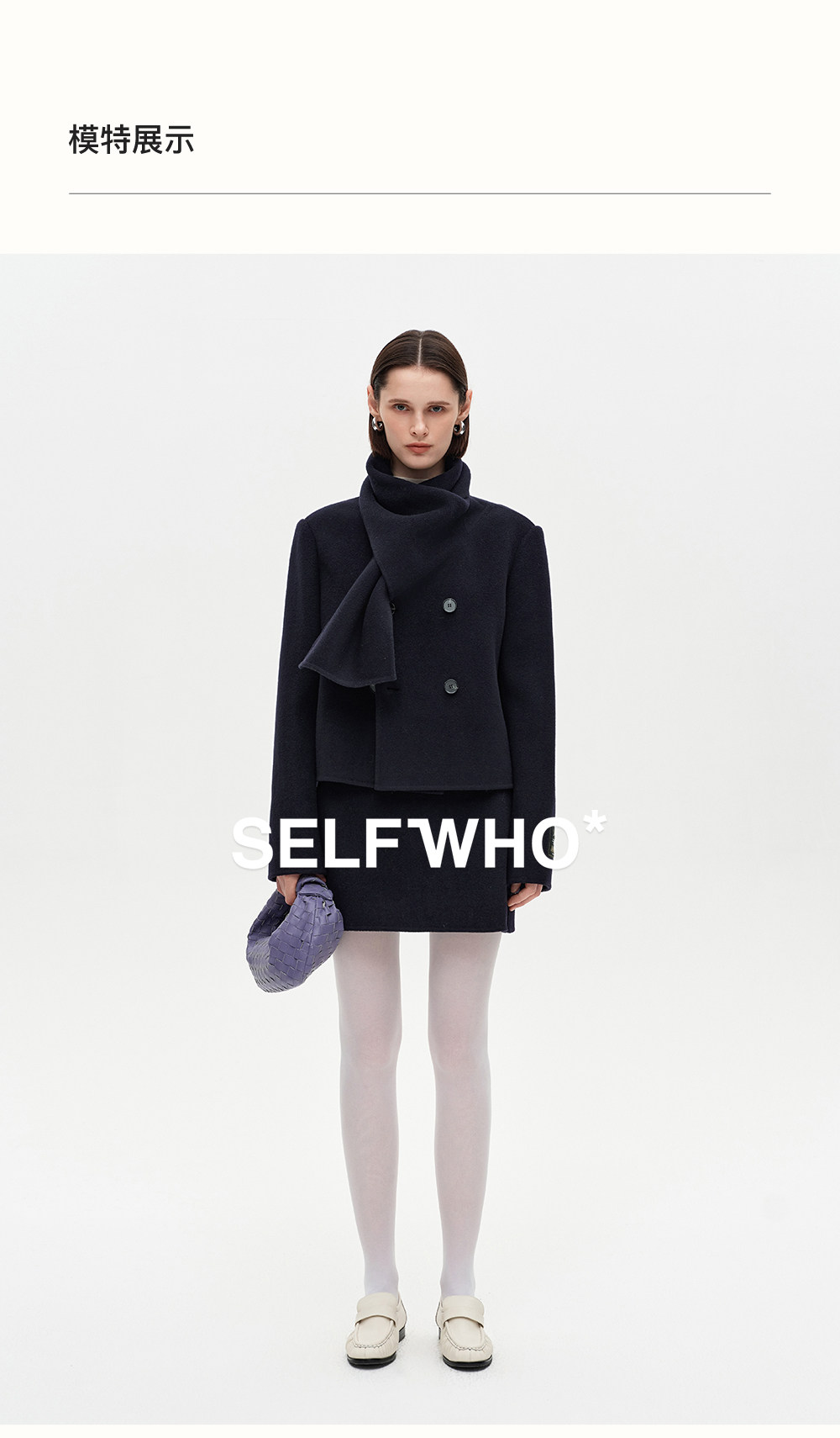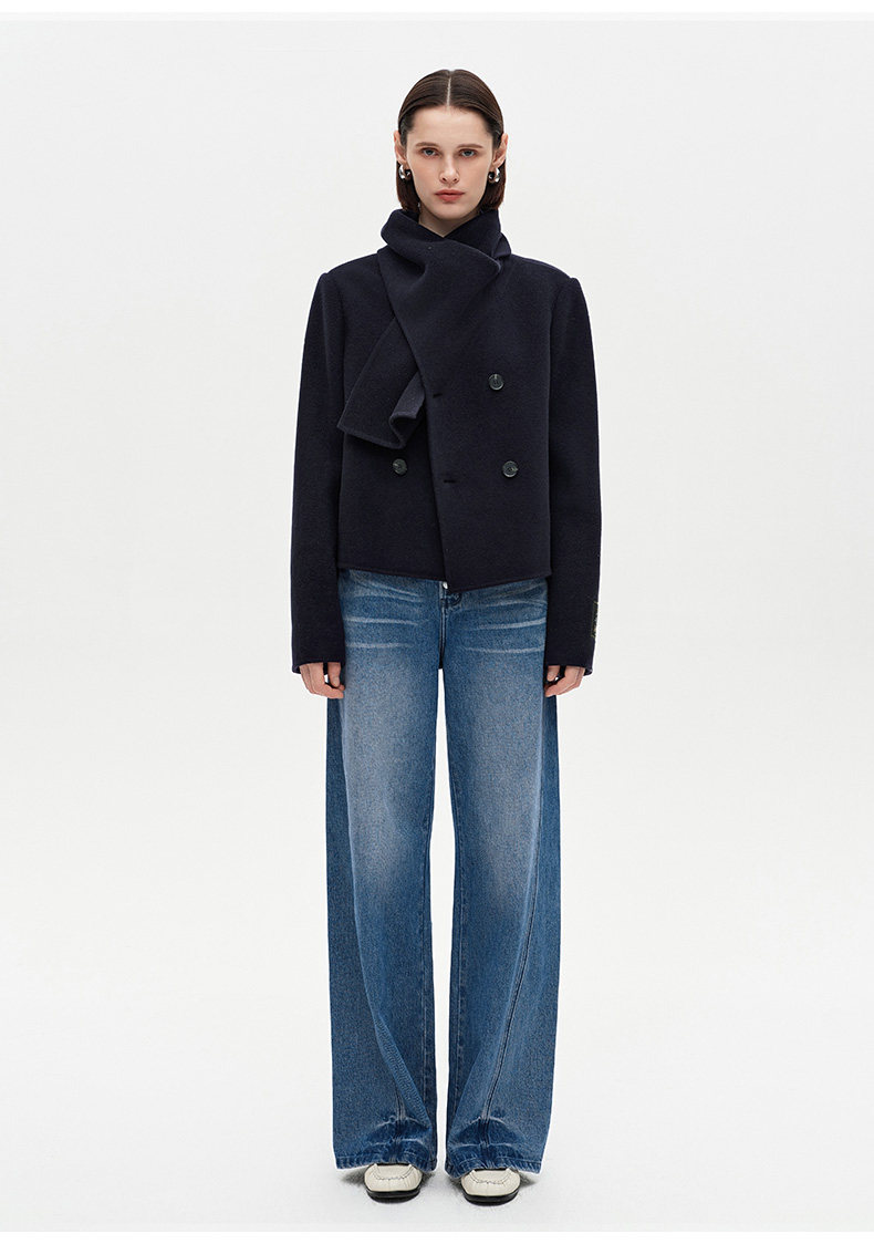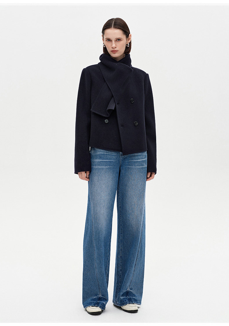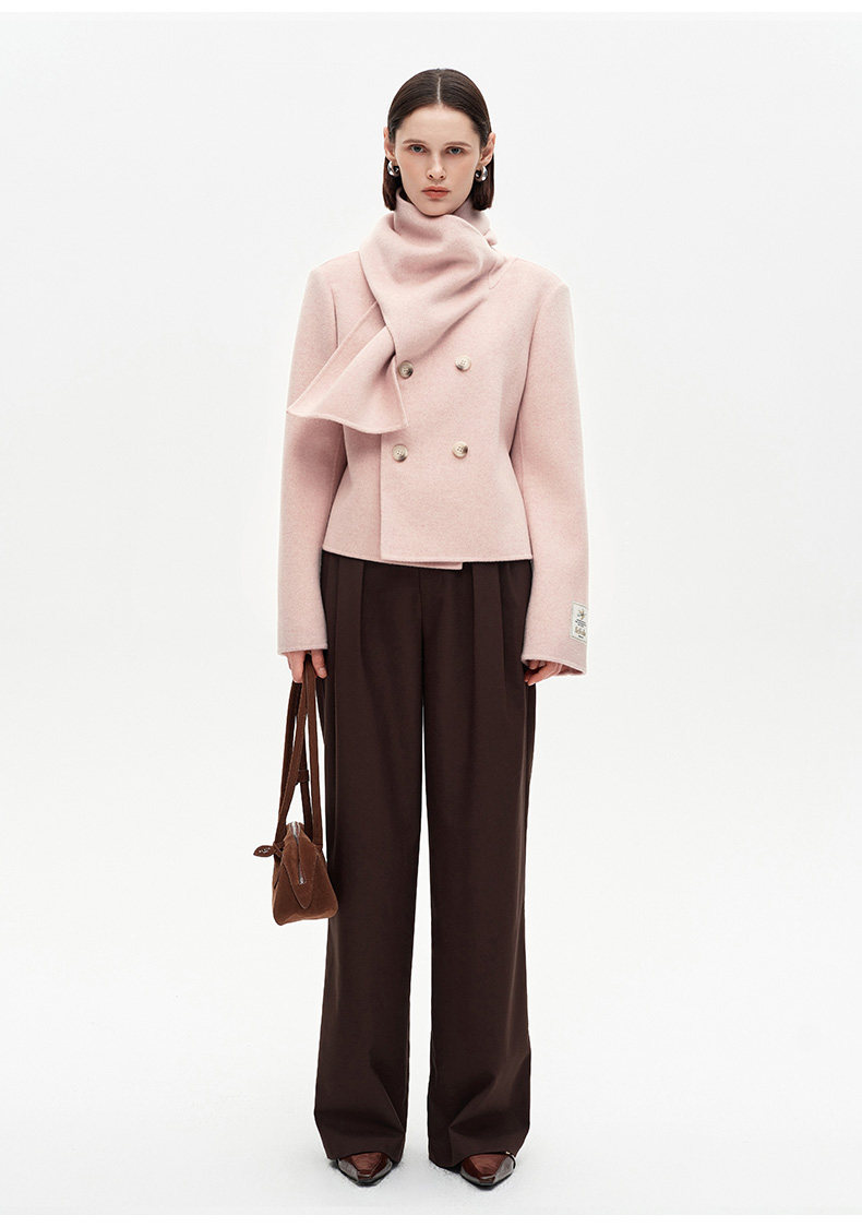 [Same Style as Xiao Tao] Selfwho Alpaca Wool Blend Scarf Collar Woolen Coat for Women, New Short Winter Coat