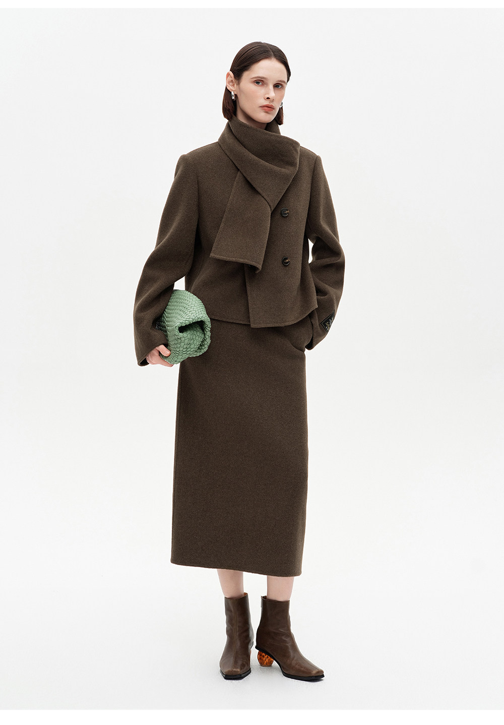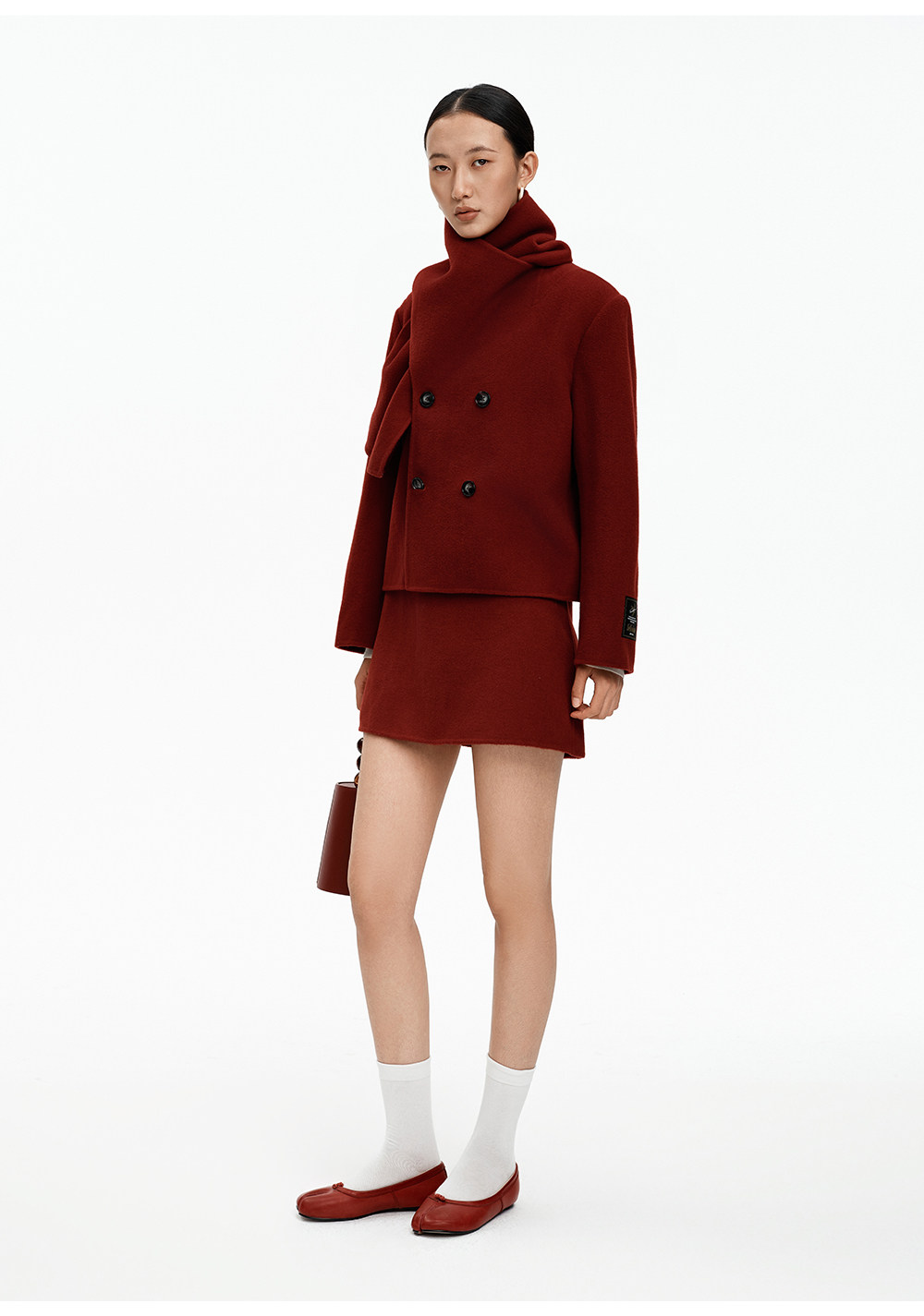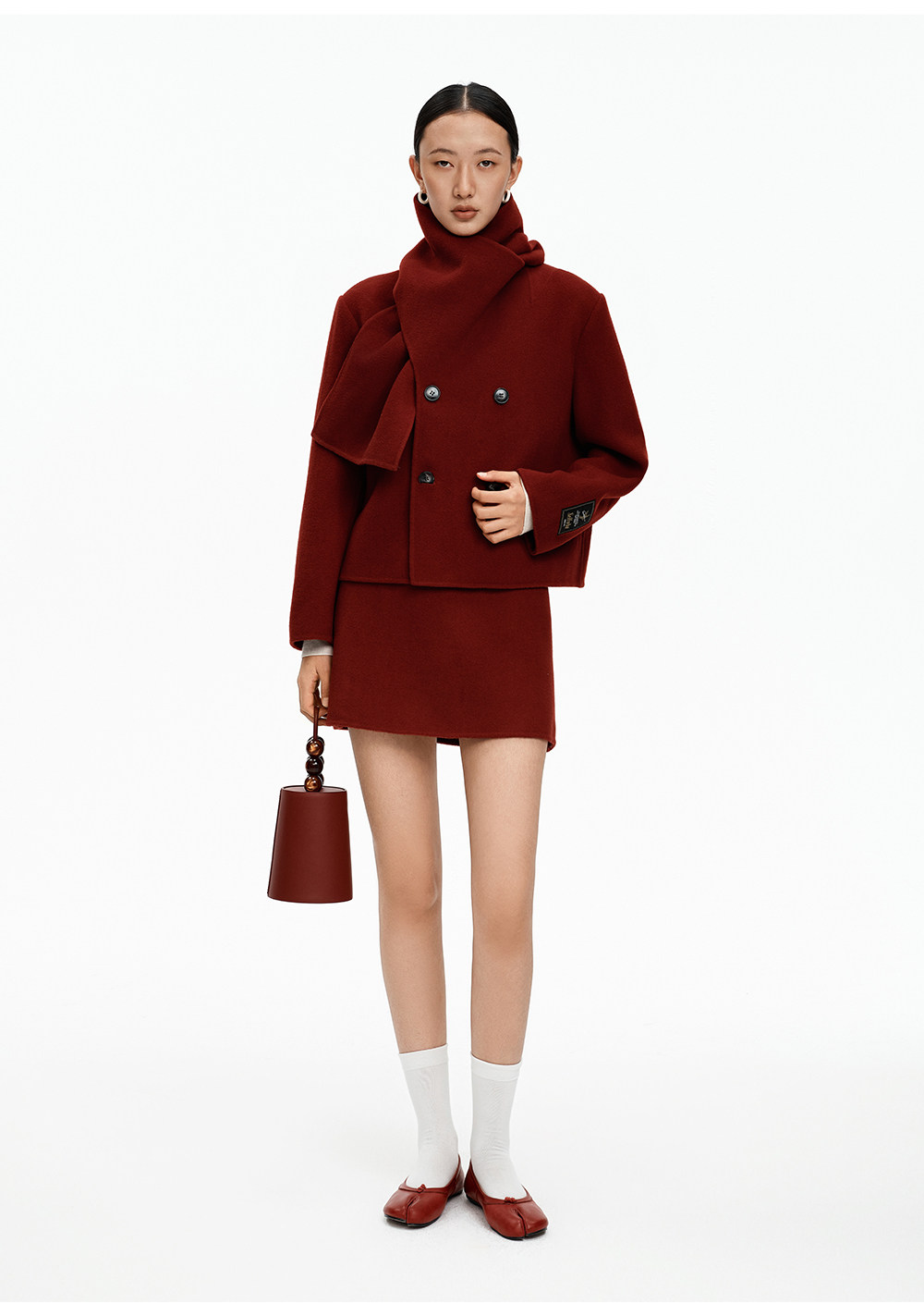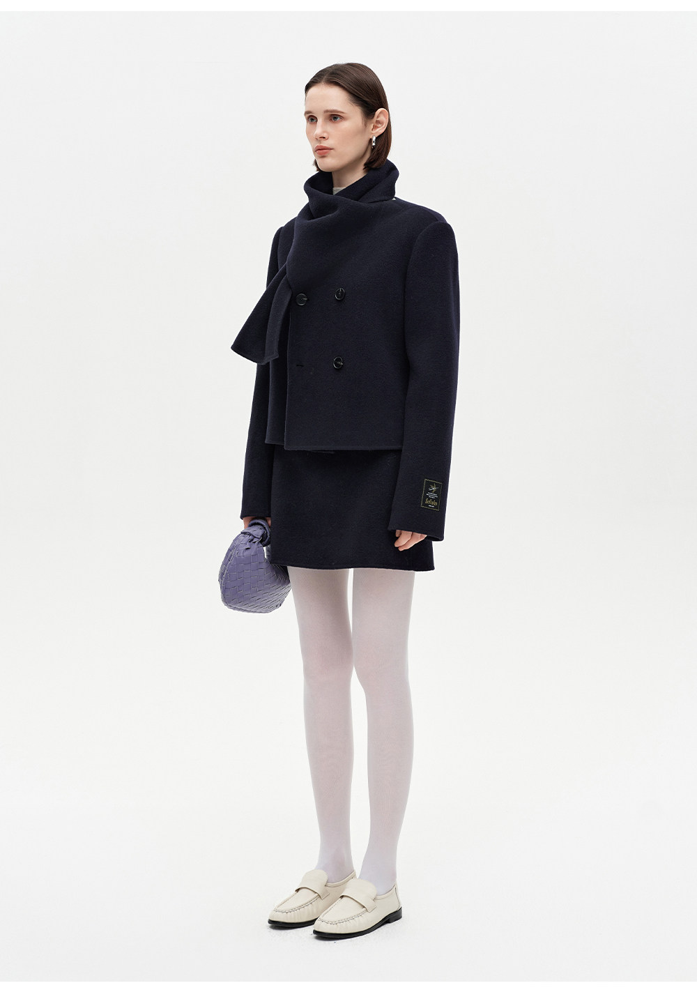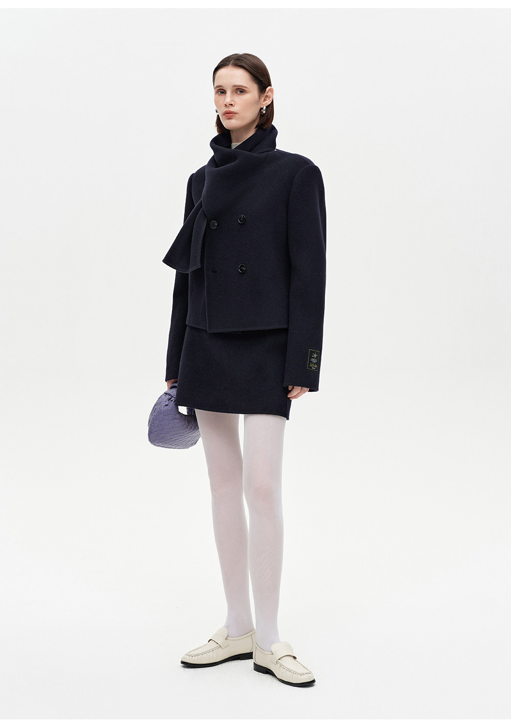 [Same Style as Xiao Tao] Selfwho Alpaca Wool Blend Scarf Collar Woolen Coat for Women, New Short Winter Coat