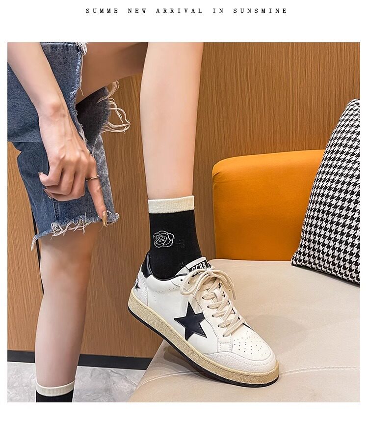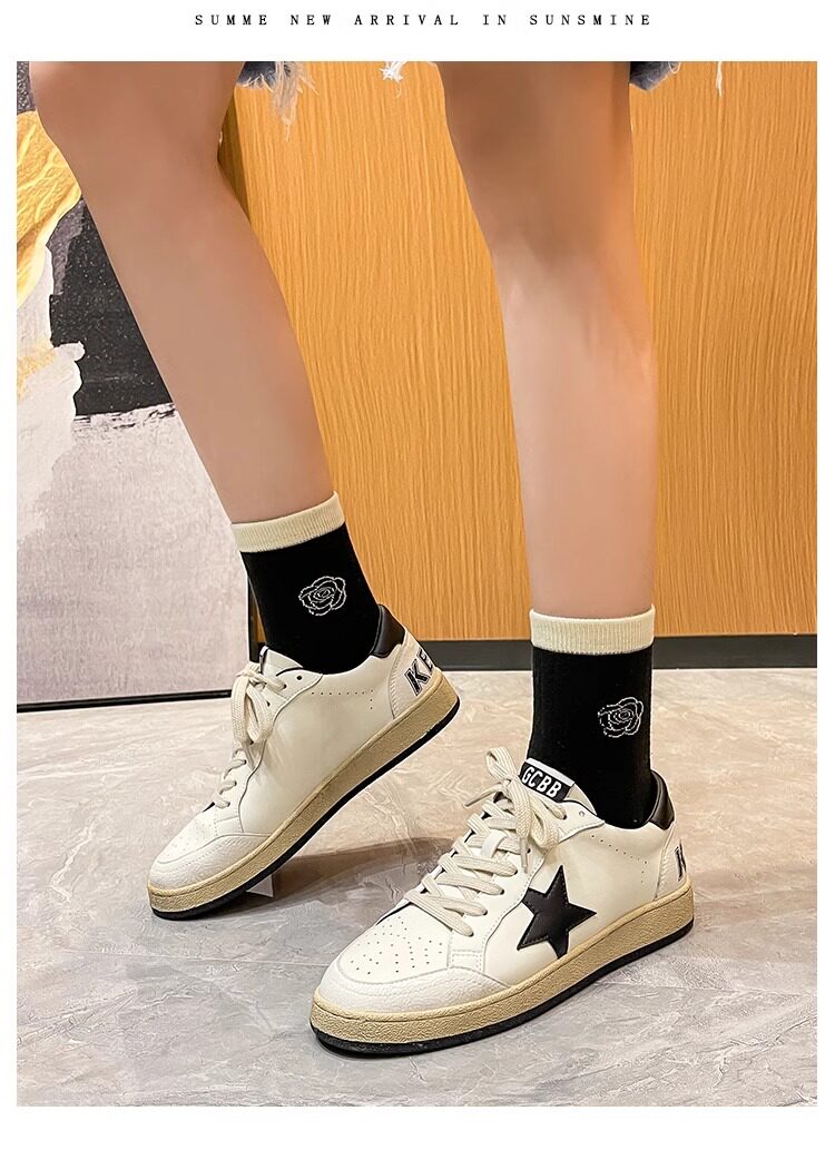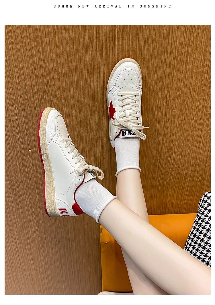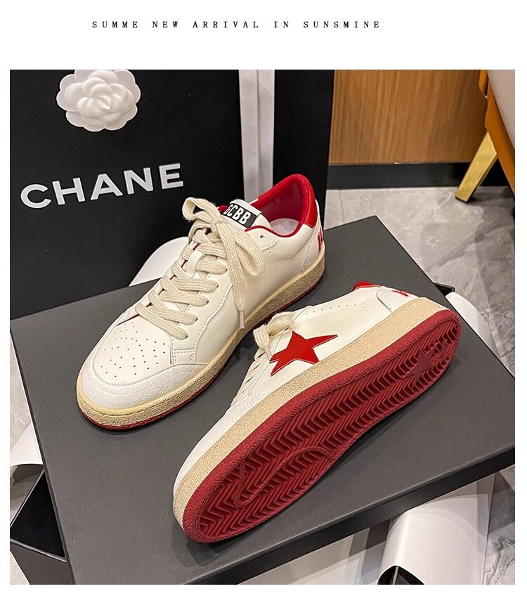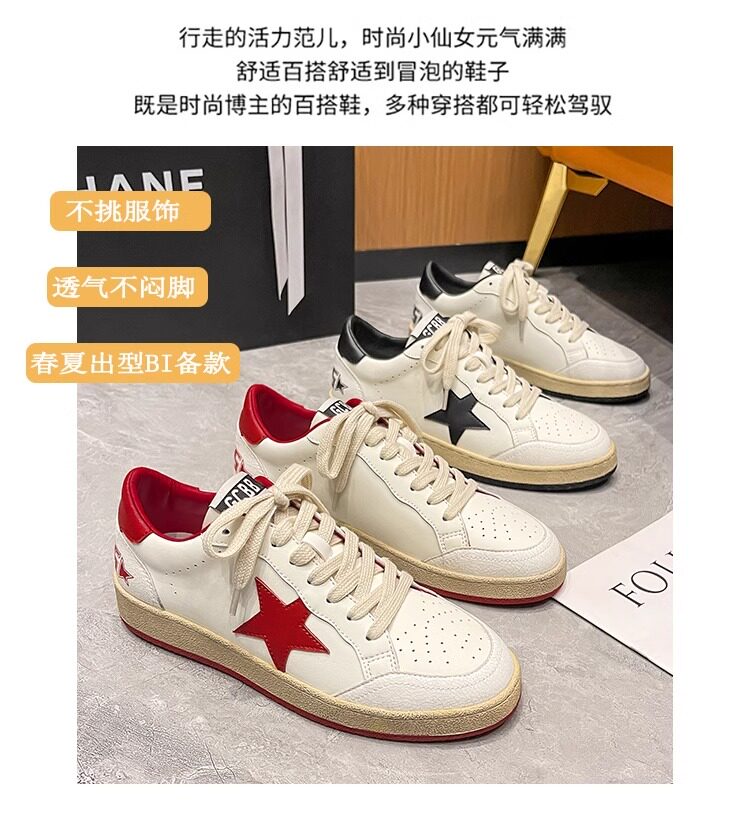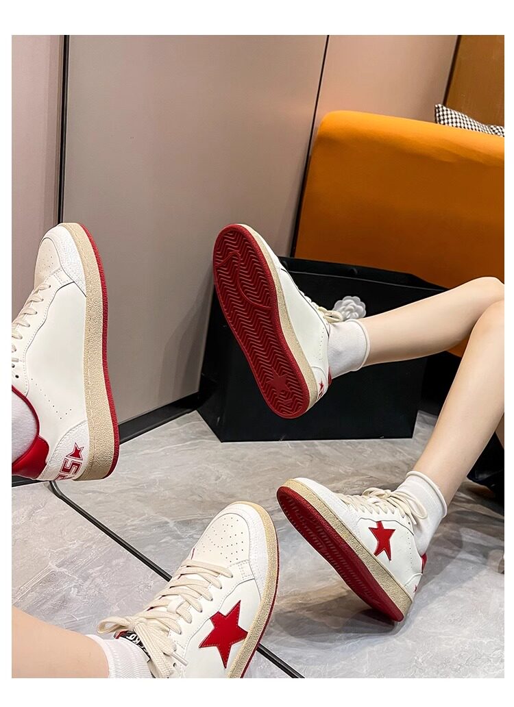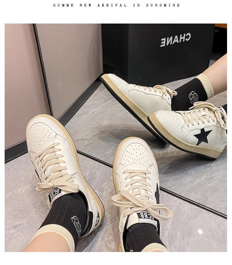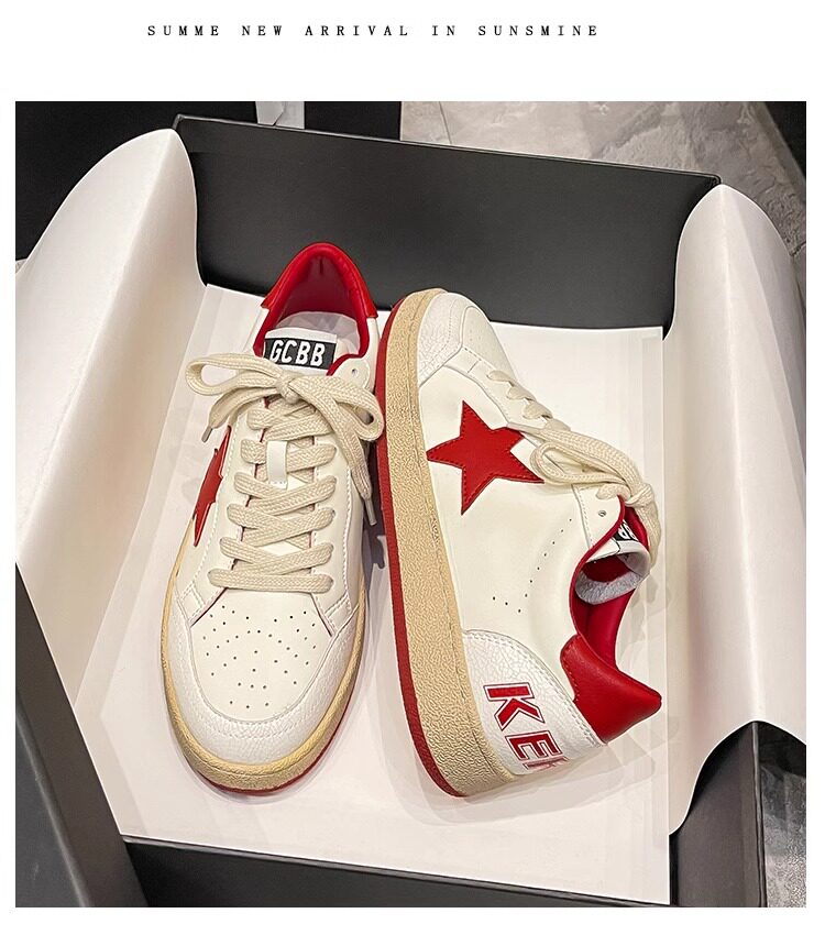 Hong Kong Genuine Leather Thick-Soled White Sneakers for Women 2026 Vintage Distressed Casual Sports Color-Block Star Sneakers