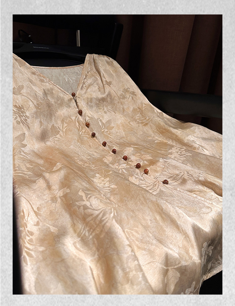 Sanji Heihua [Manjiangnan] Chinese-Style New Silk Tie-Dye Shirt for Women, High-End, Light Luxury, and Age-Reducing