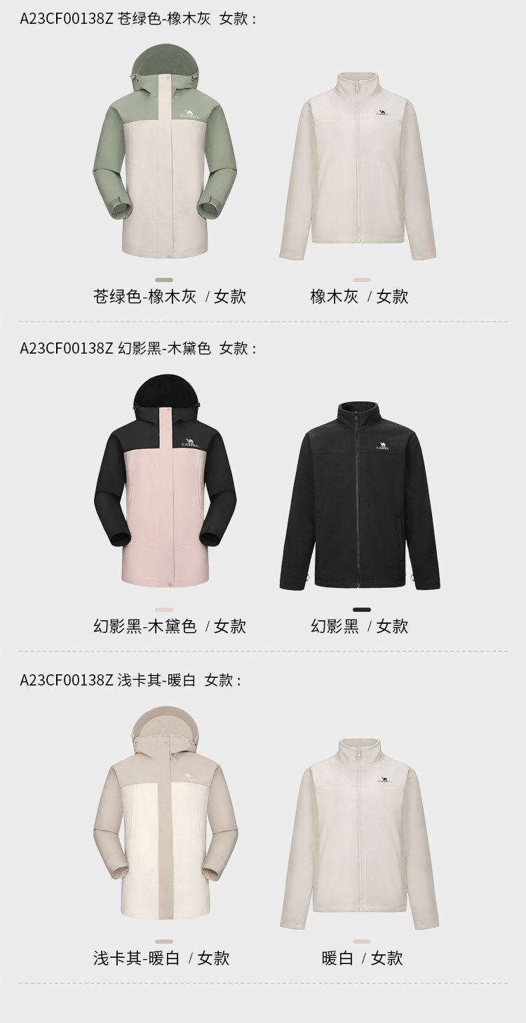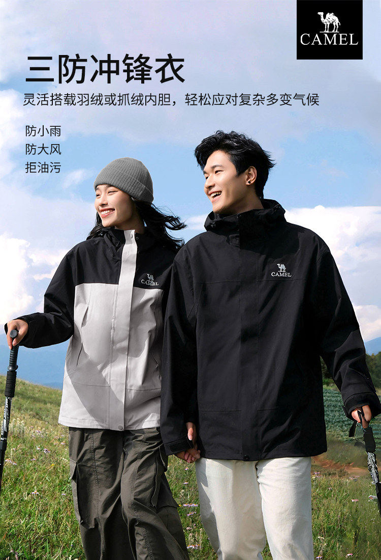 Camel Outdoor North Wind 3-in-1 Jacket for Men, Fleece/Down Inner Layer, Three-Proof Outerwear for Women, Waterproof Mountaineering Jacket