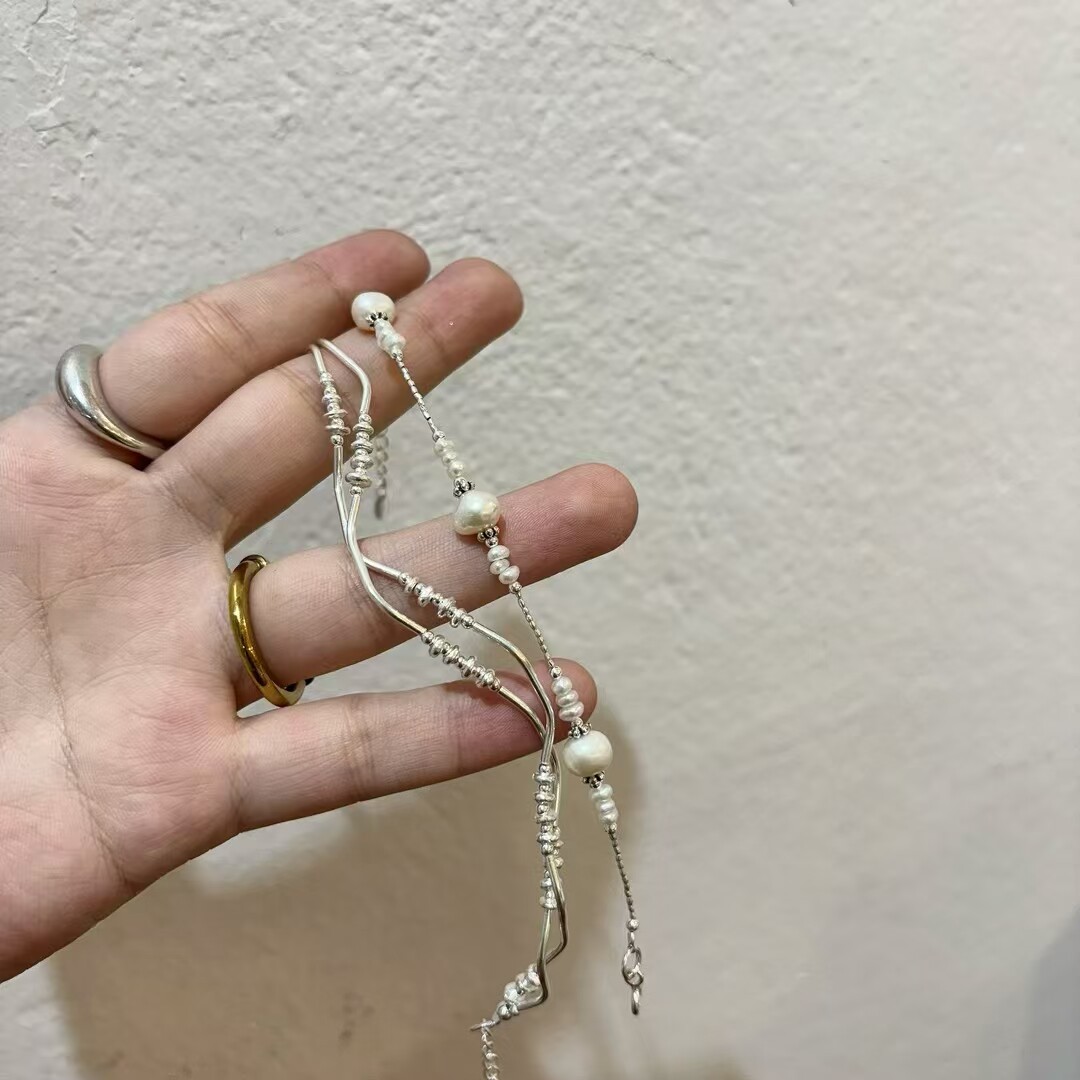 Lele Base Camp Thai Handmade 925 Silver Wave Tube Fragmented Silver Design Niche Artistic Bracelet