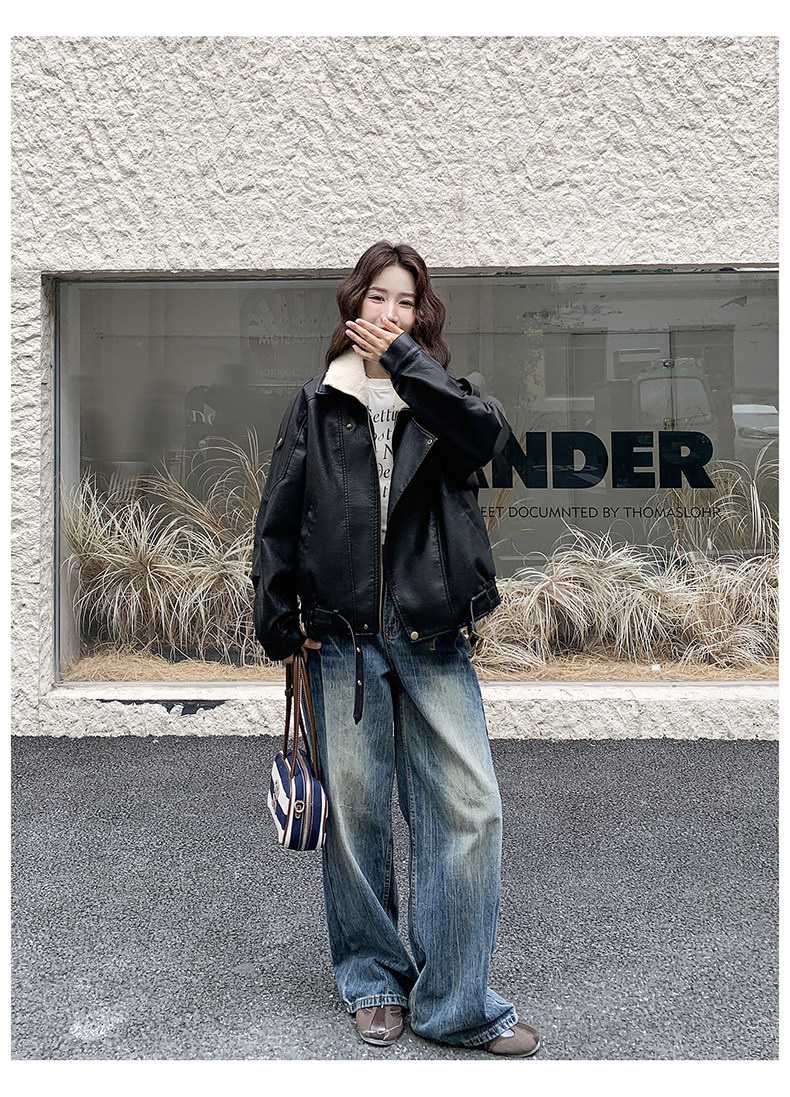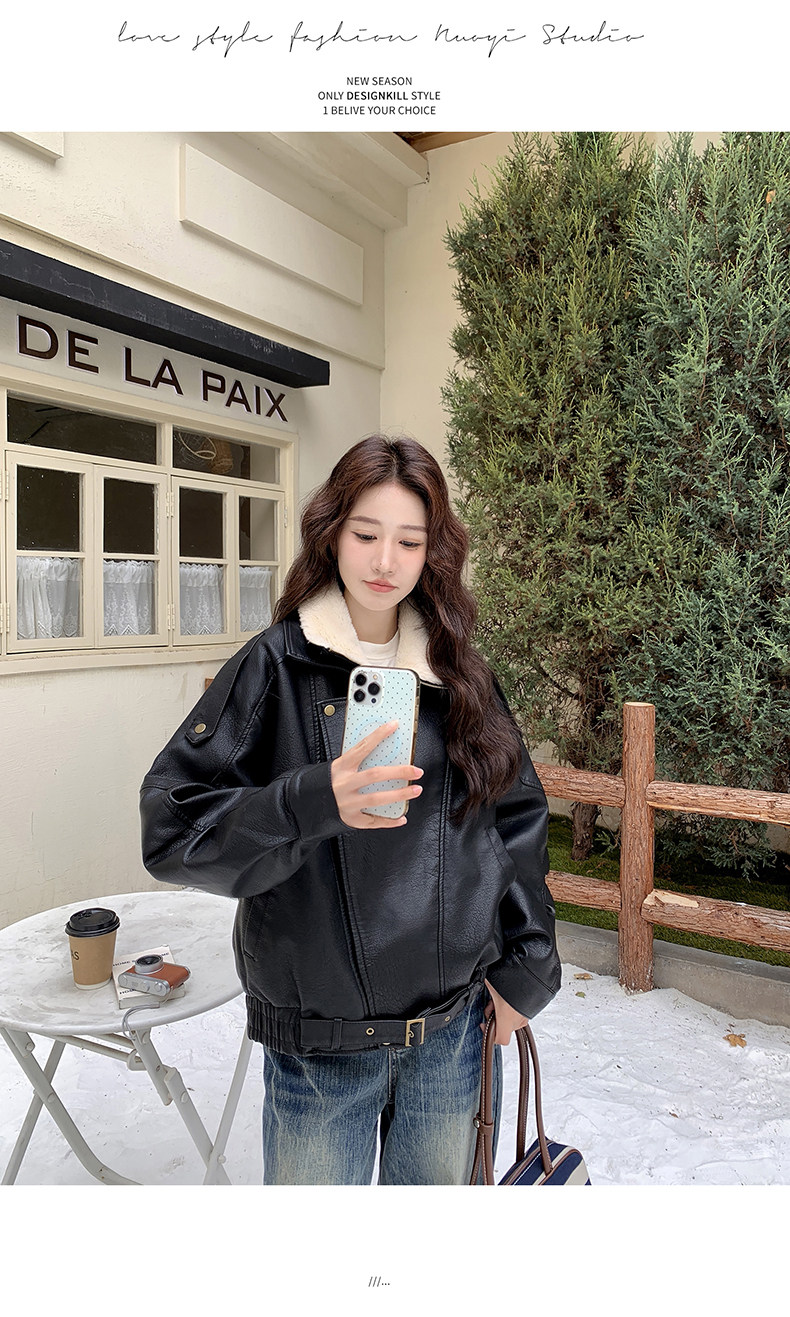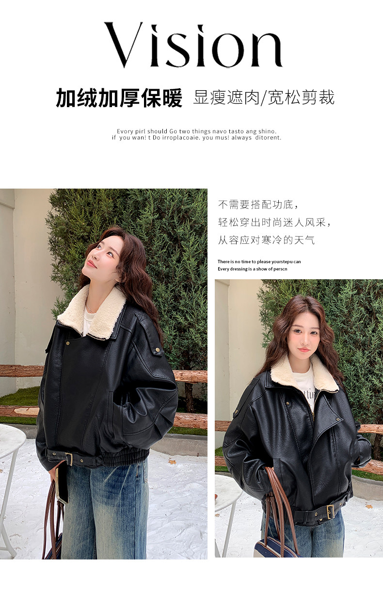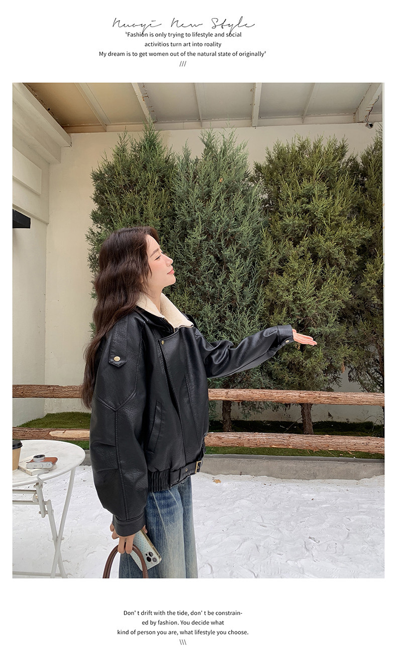 Hong Kong Style Retro Black Lamb Wool Leather Jacket for Women, Winter 2026 New Cool and Stylish Thickened Fleece Cotton Coat