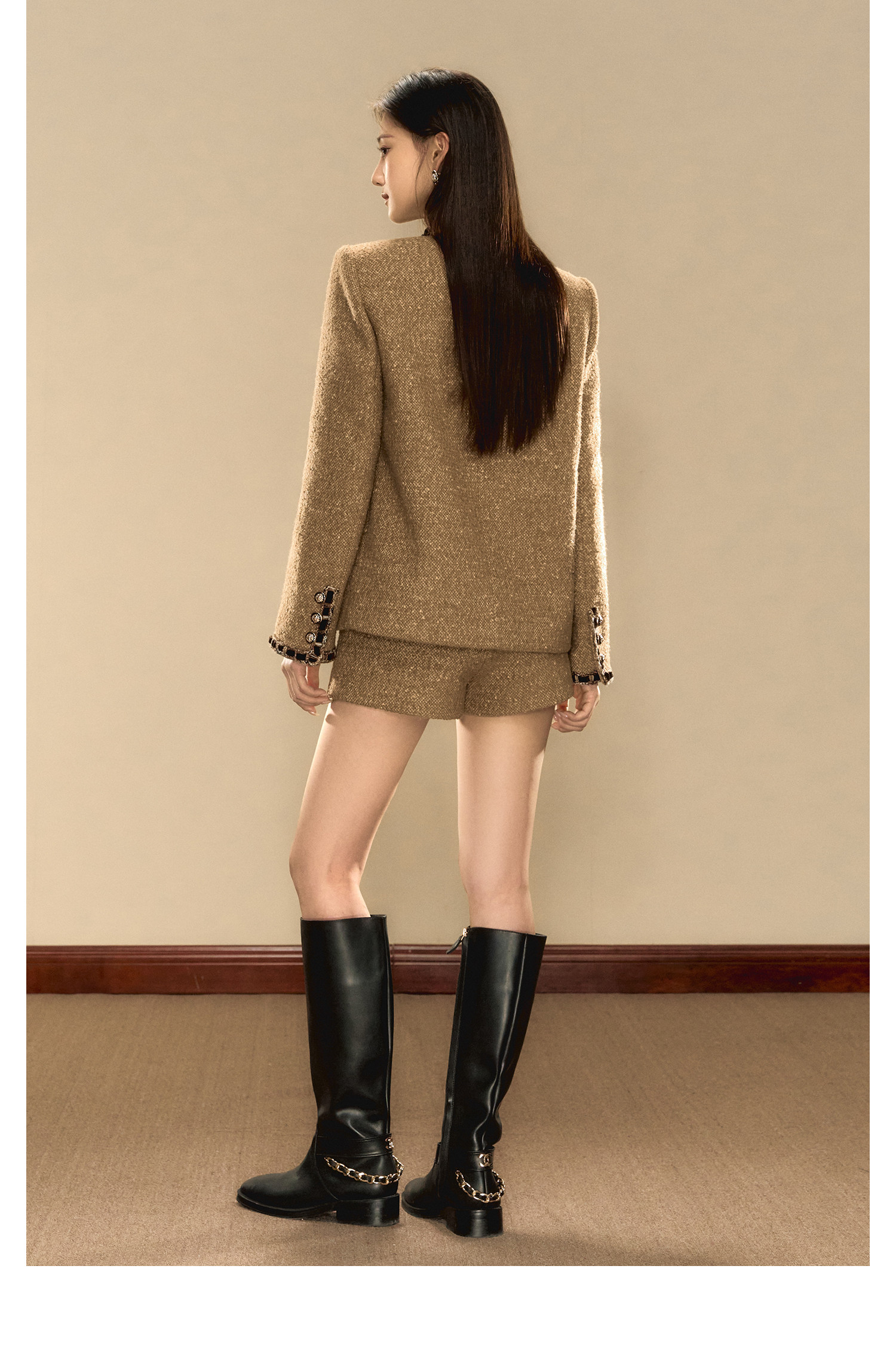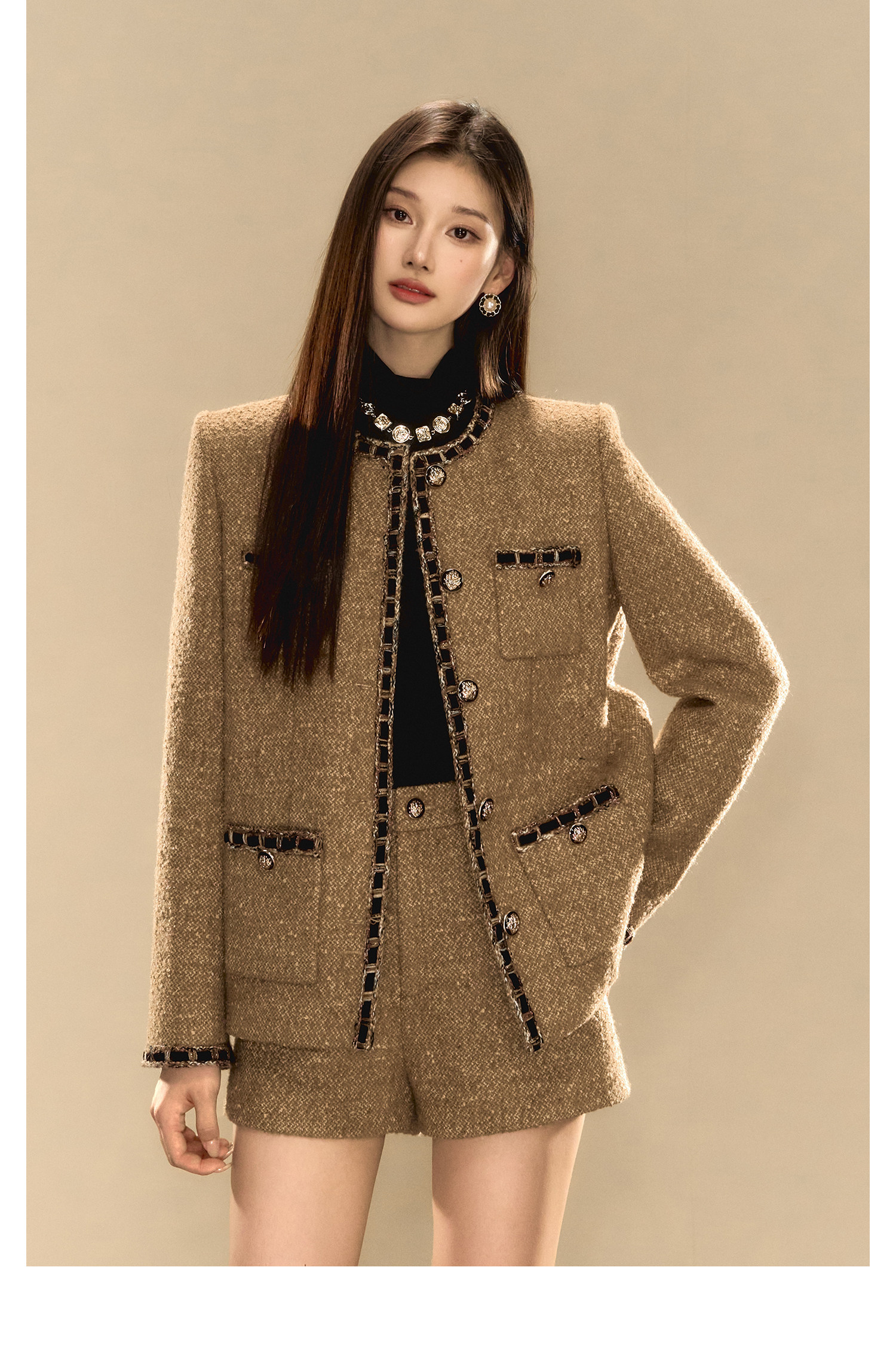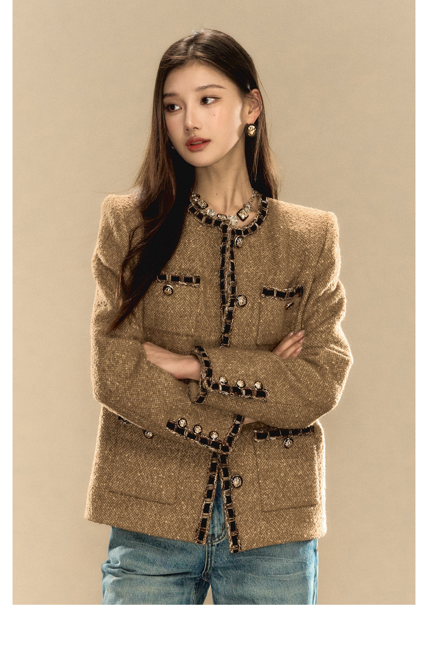 Oshea French Retro Style Jacket for Women 2026 New Spring Wool Blend Tweed Ribbon Top
