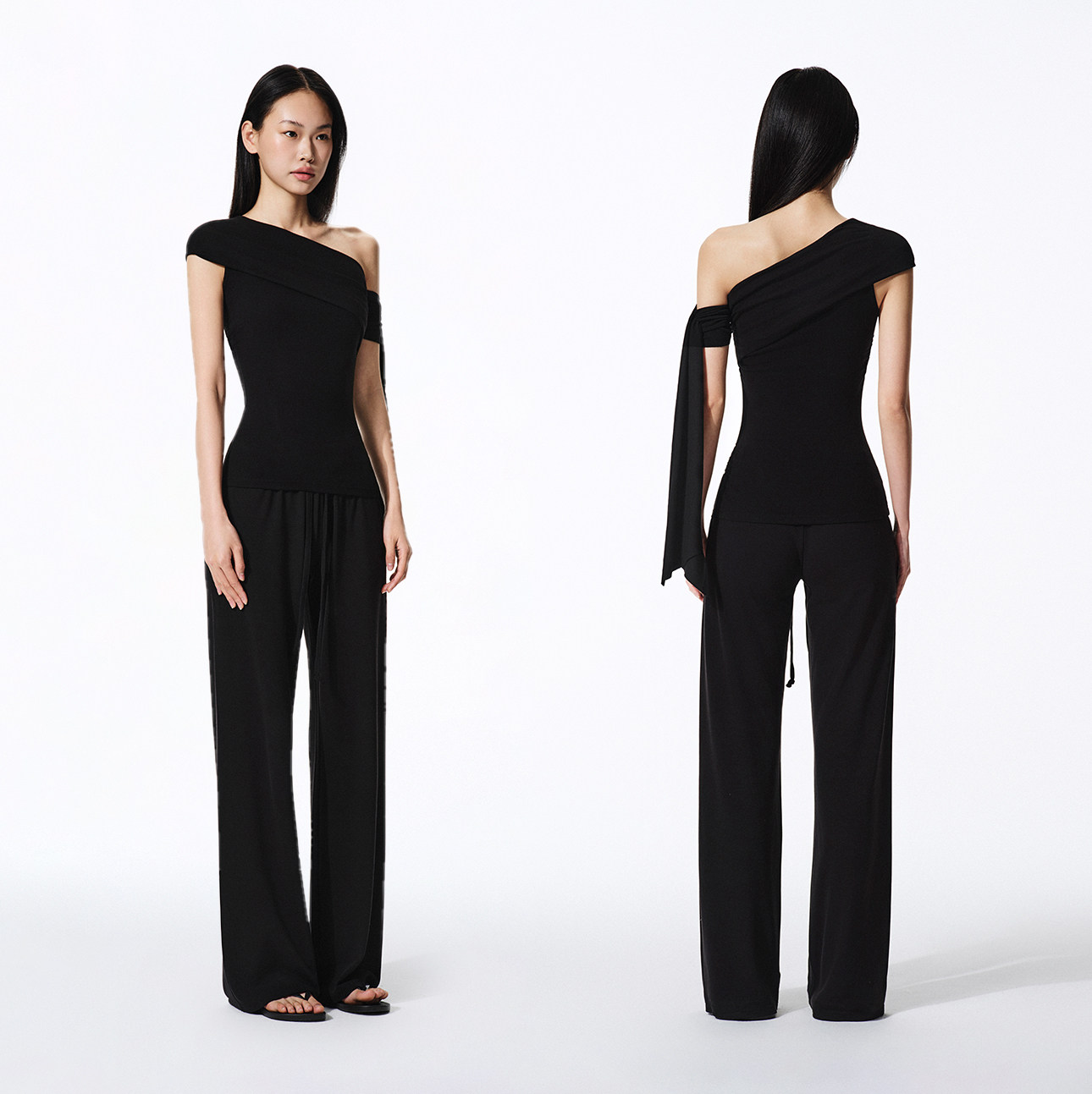 Asomesome Spicy Girl Off-Shoulder Ribbon Pleated Slim-Fit Short-Sleeve T-Shirt for Women, New Summer Design with Straps and Exposed Shoulders