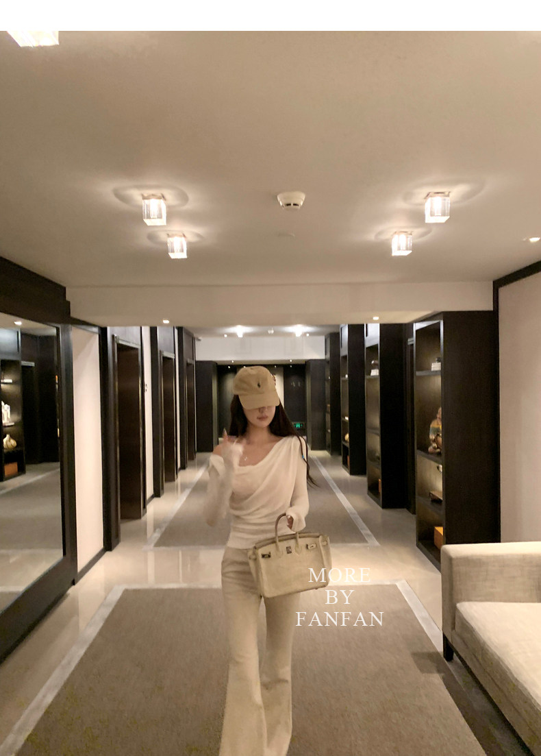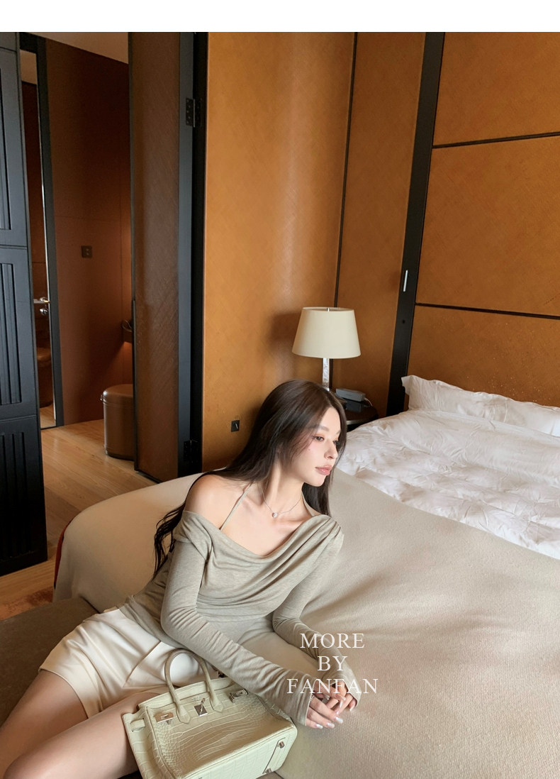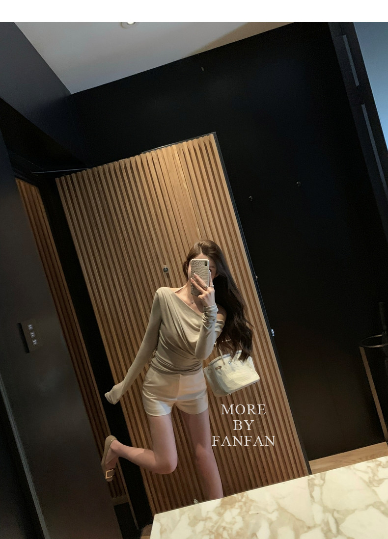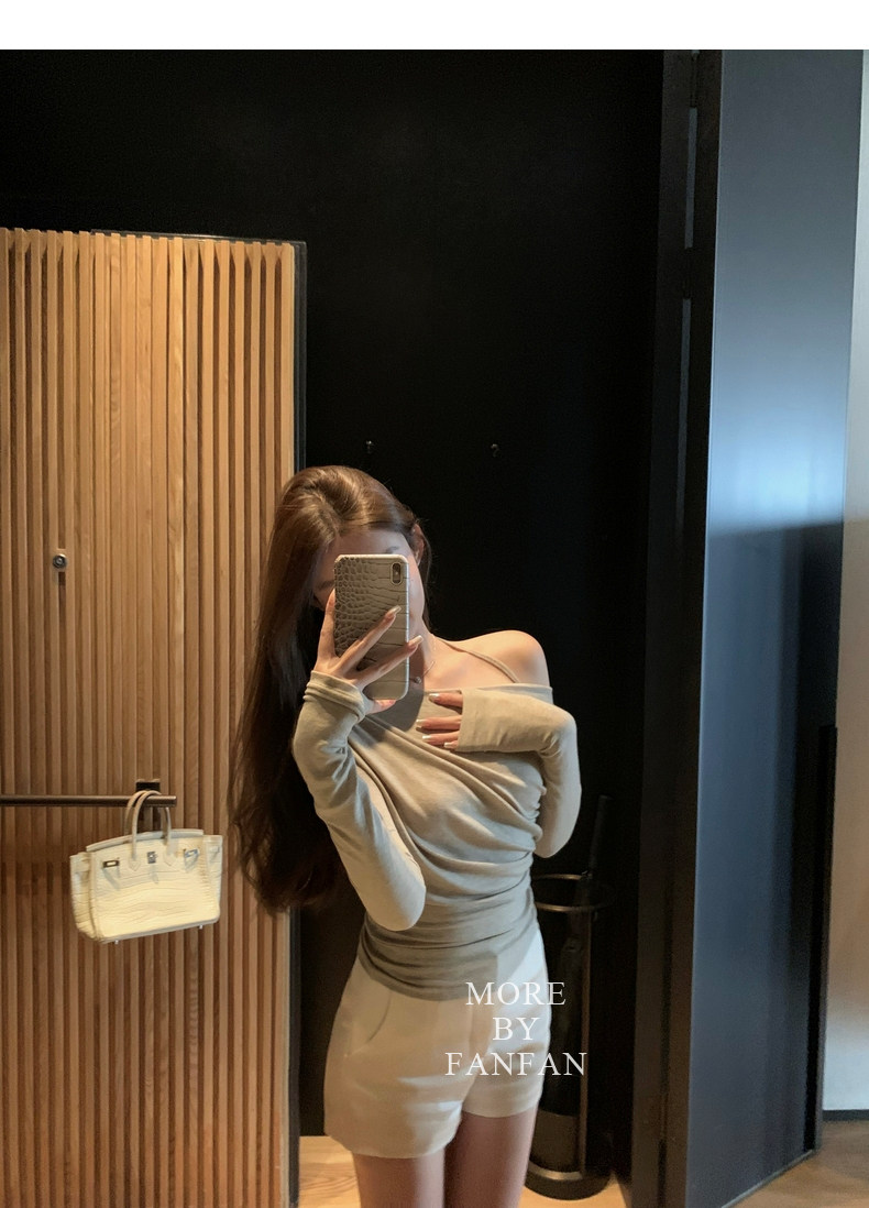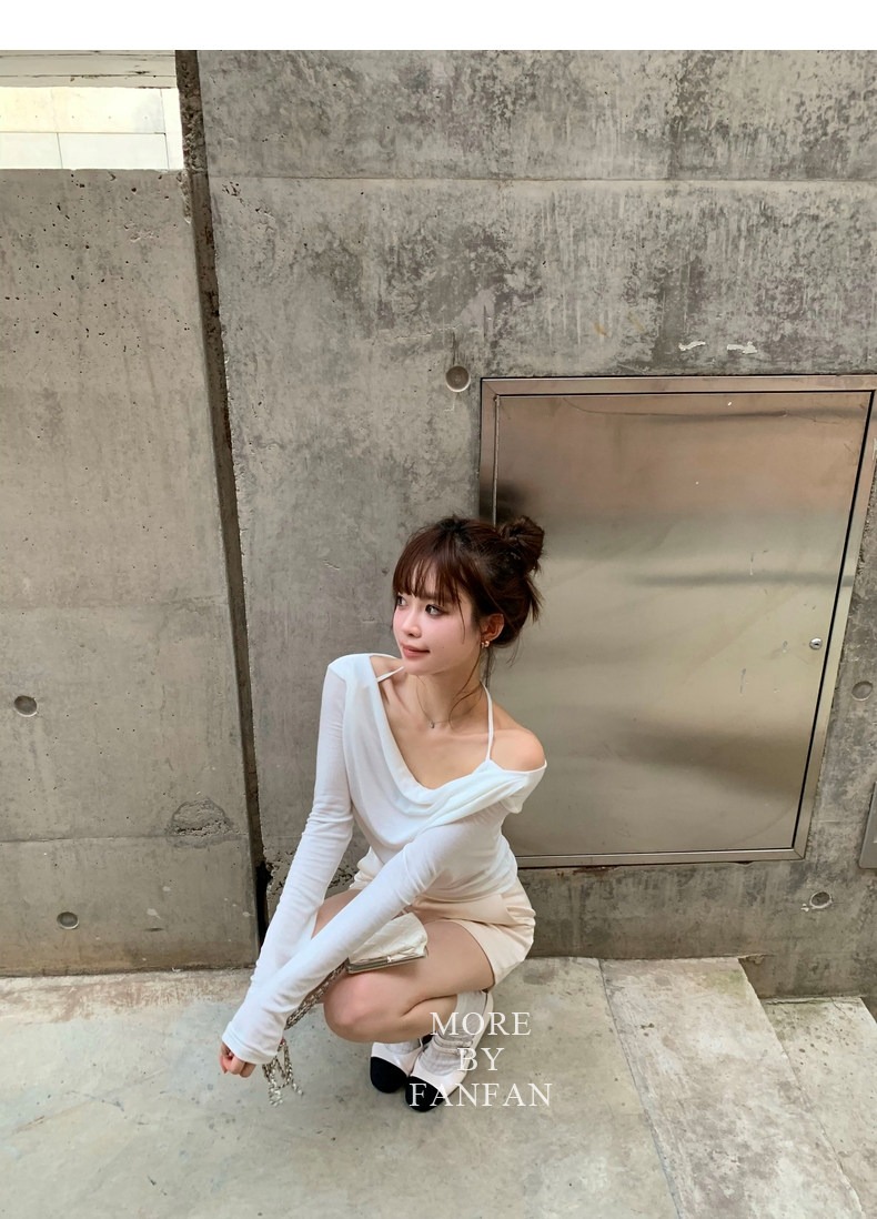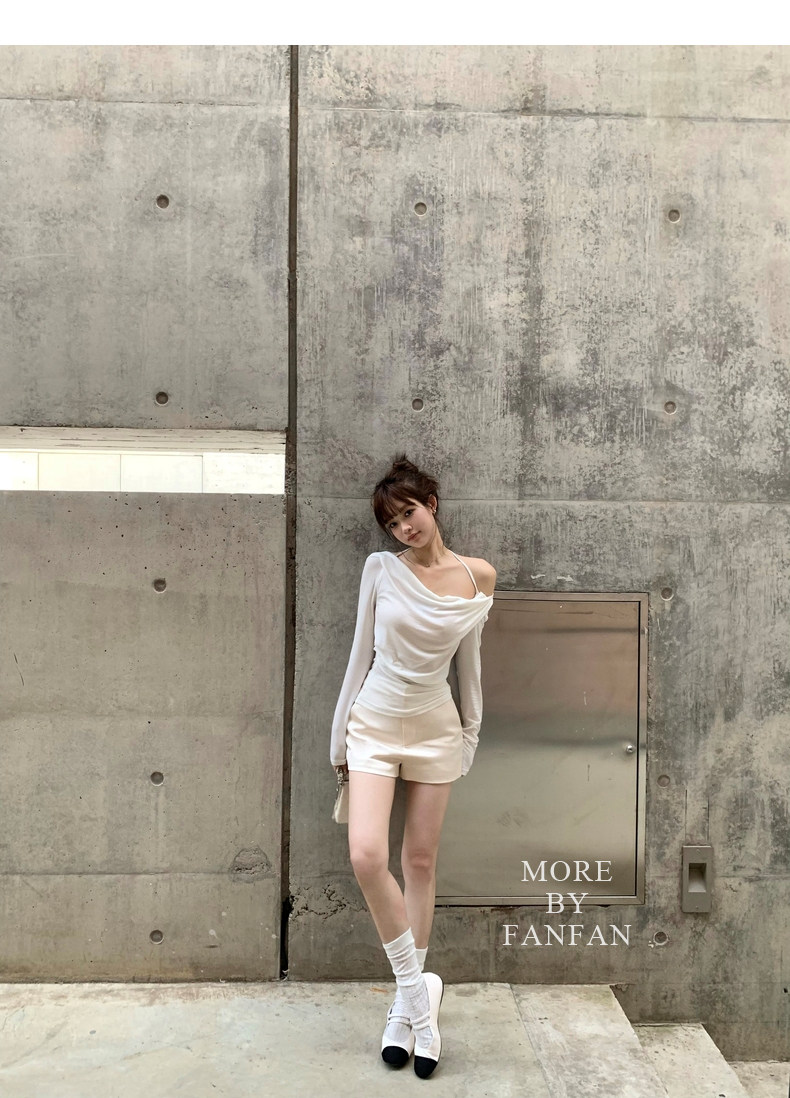 斜肩穿大方的露出一侧锁骨和肩部大大增加了露肤度