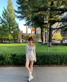 搭配灰色短裤裙这一身韩女氛围感真的很绝