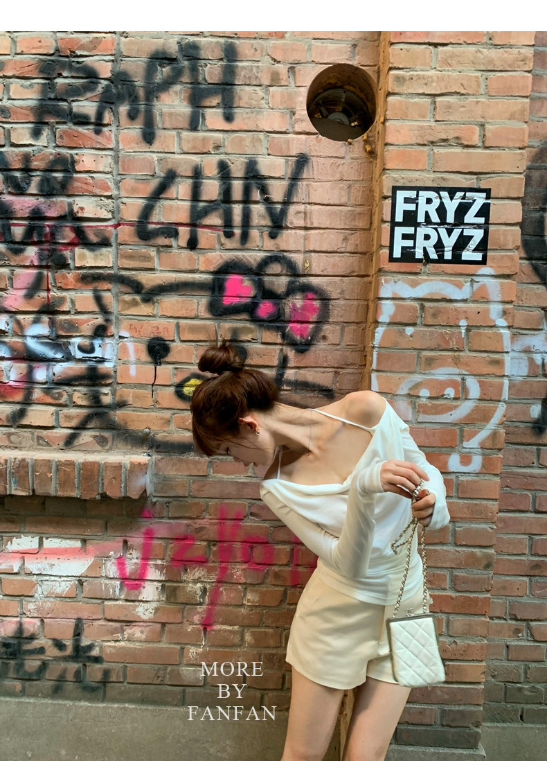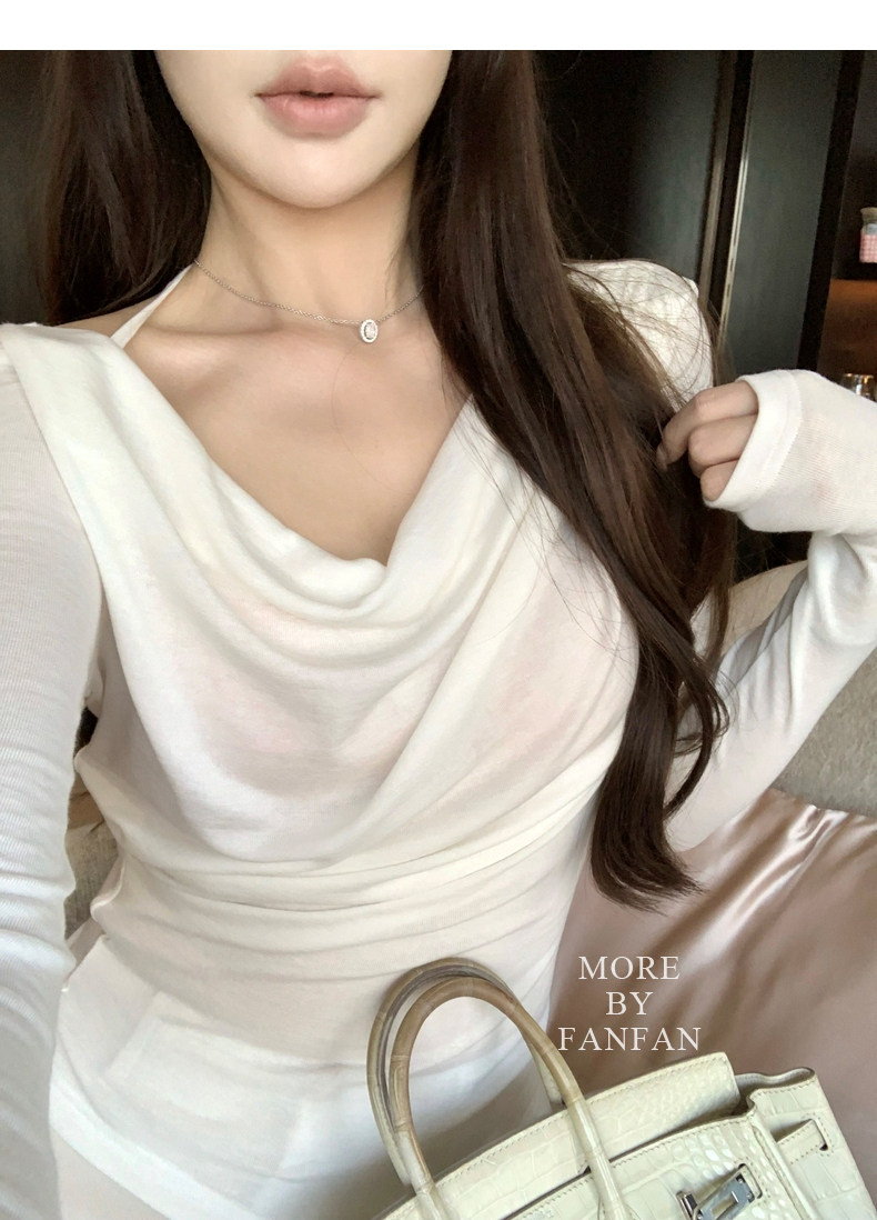 斜荡领搭配系带好纯欲哇