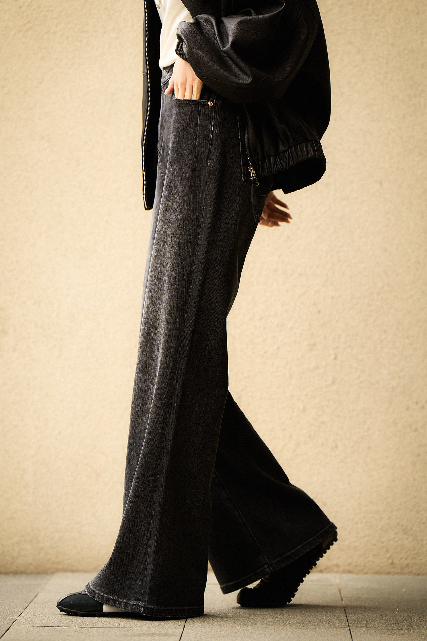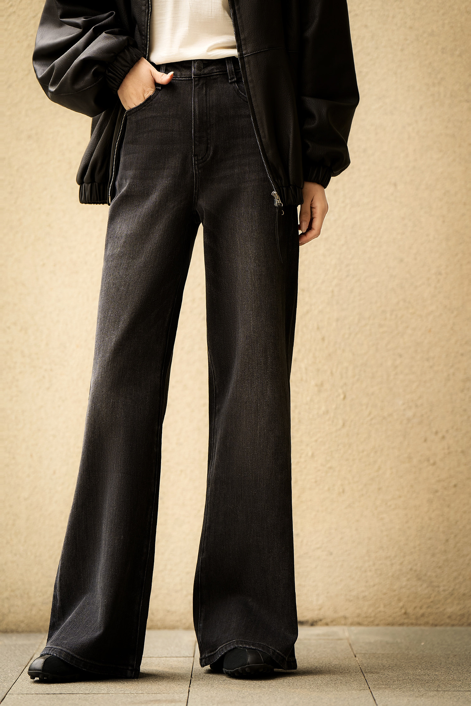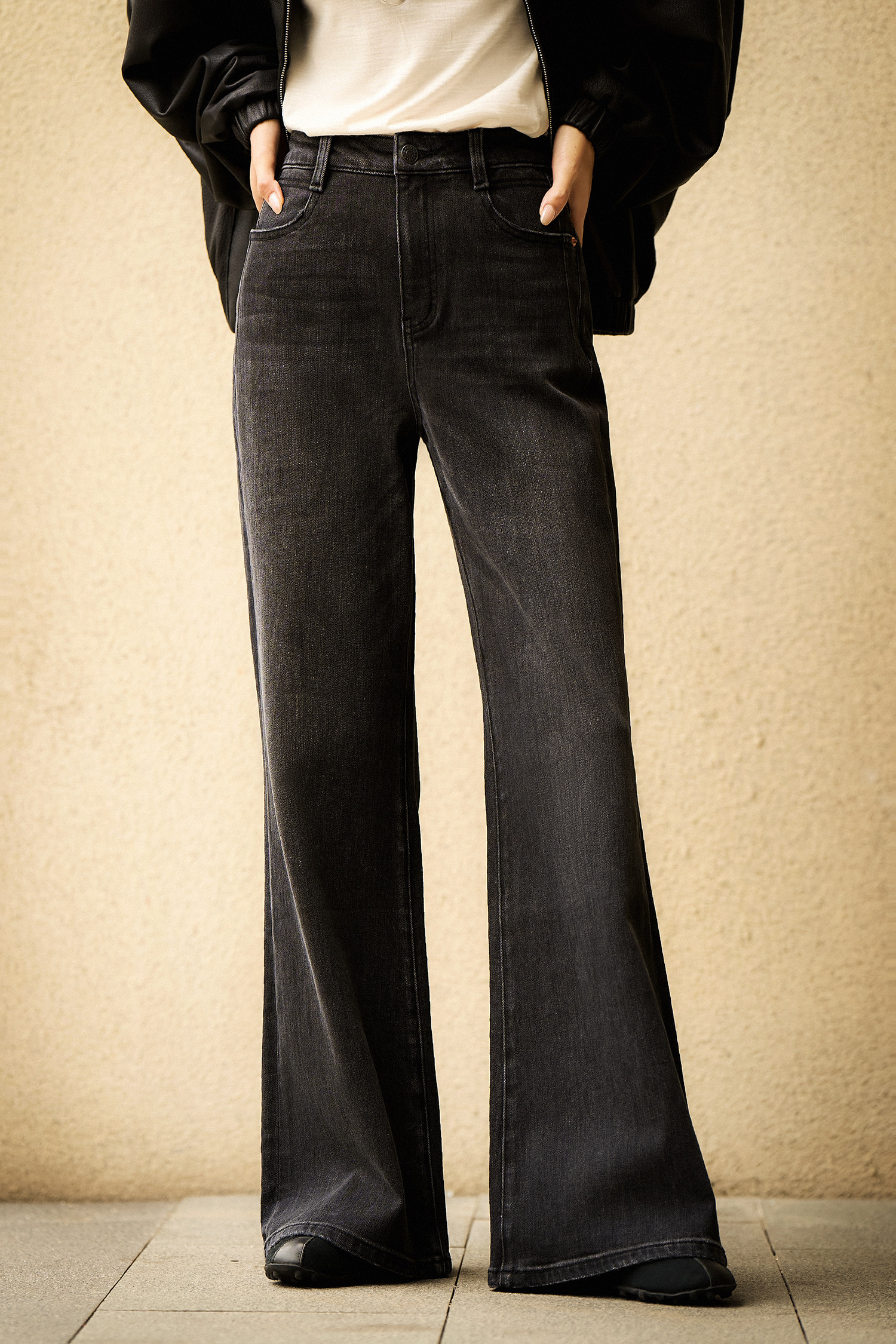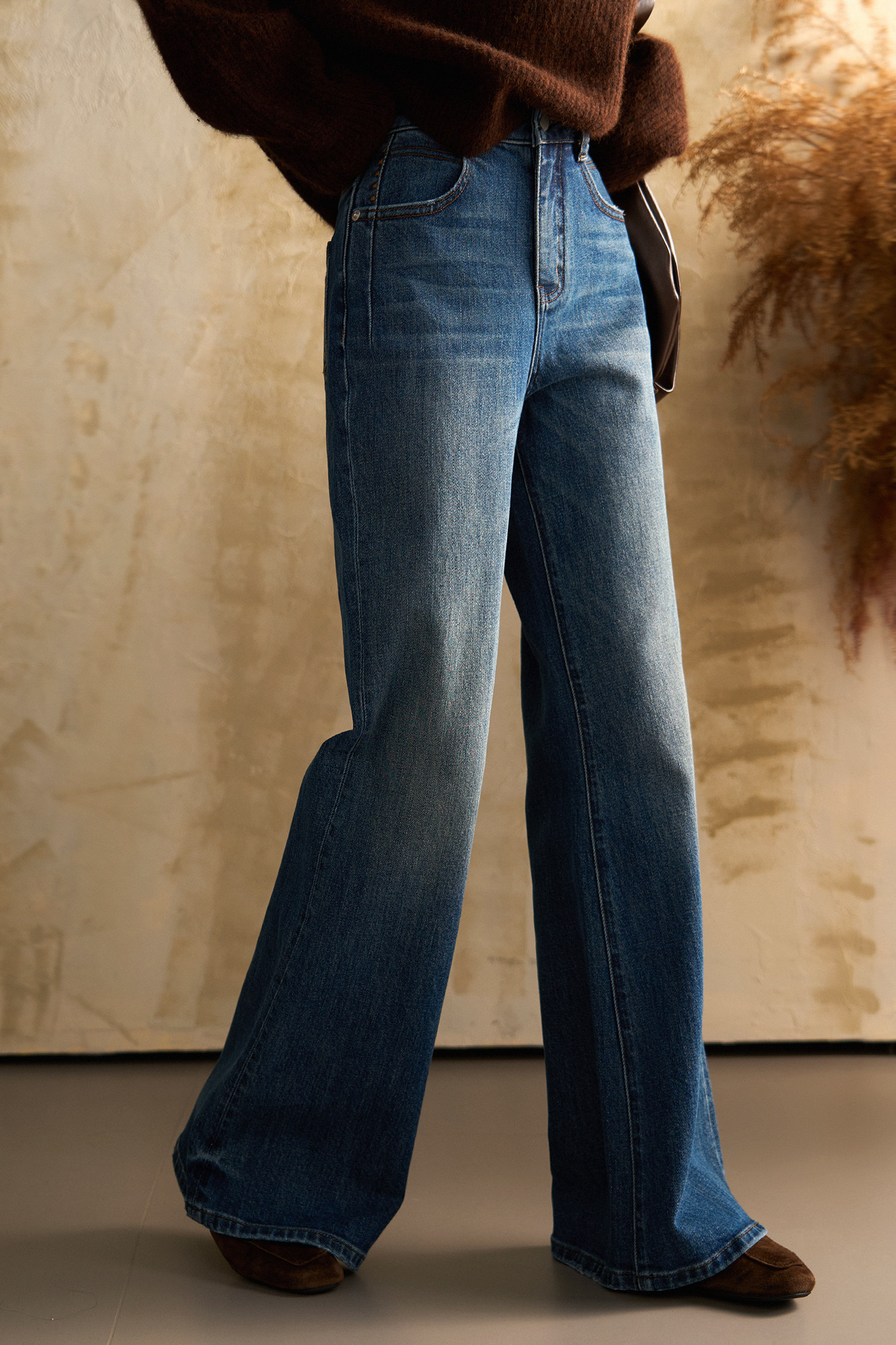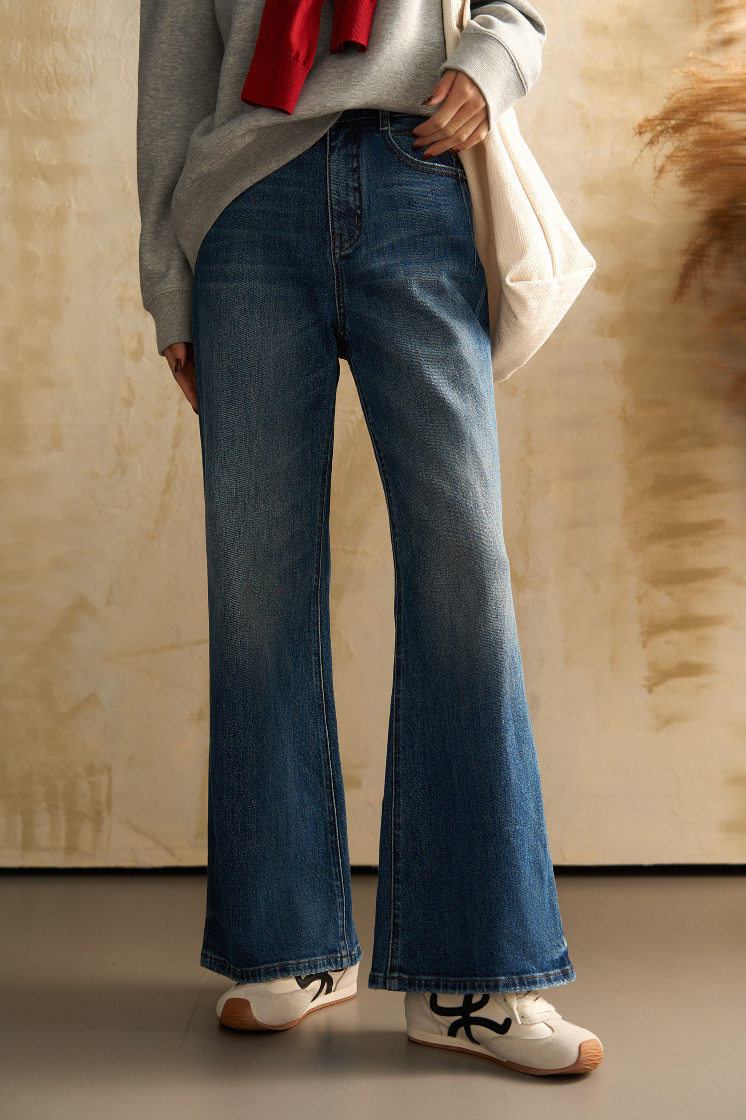 从膝盖以下自然散开的微喇裤型