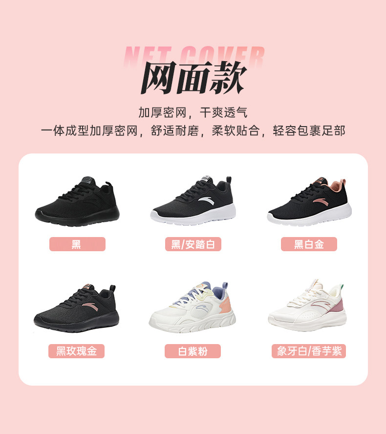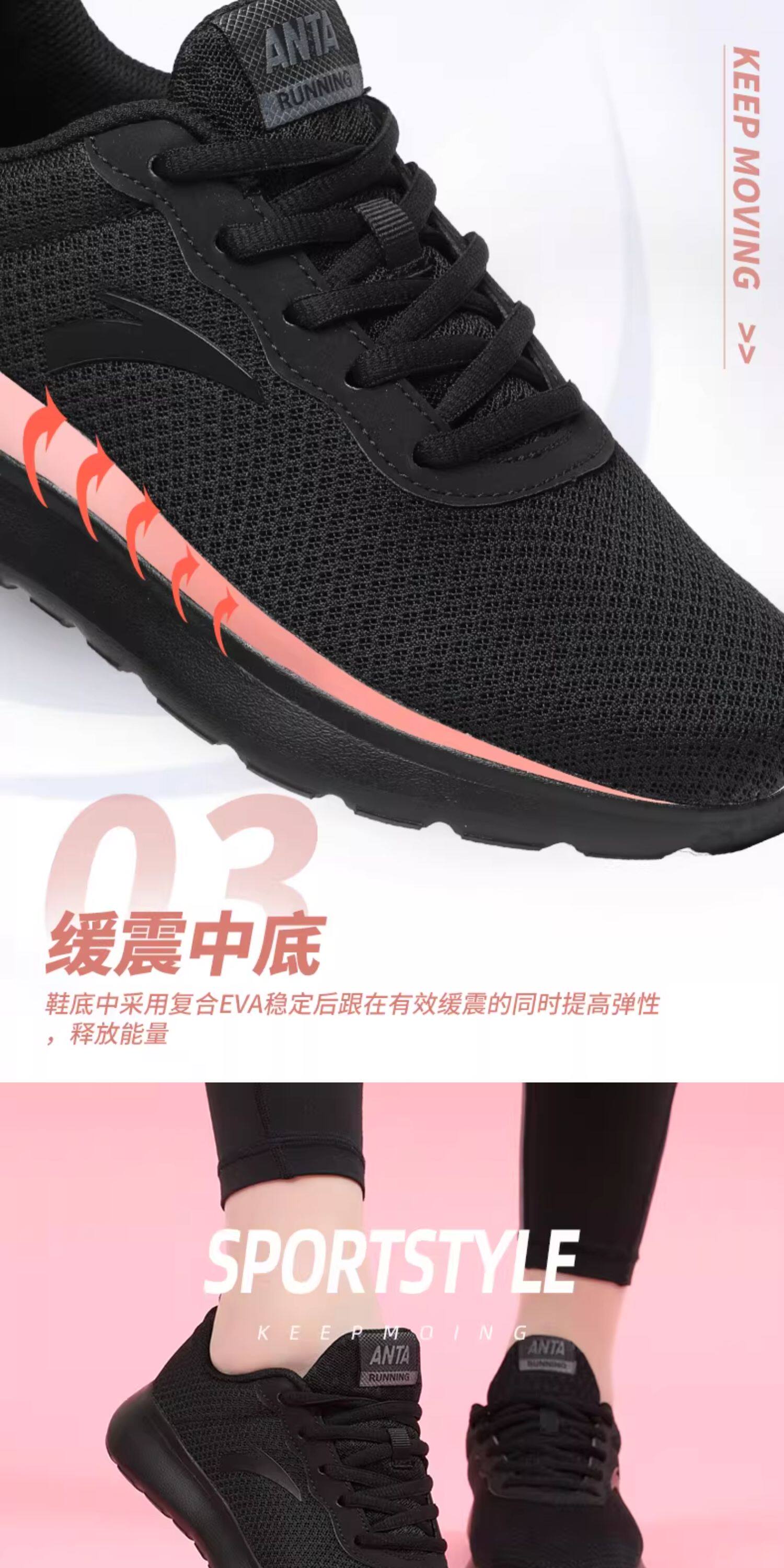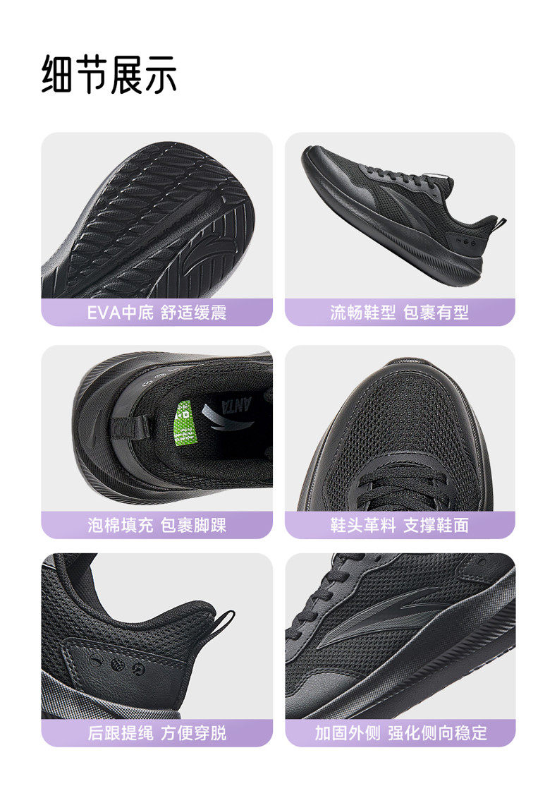 Anta Sports Shoes for Women, Black Women's Shoes, 2026 New Model, Comfortable for Work, All-Black Running Shoes for Moms