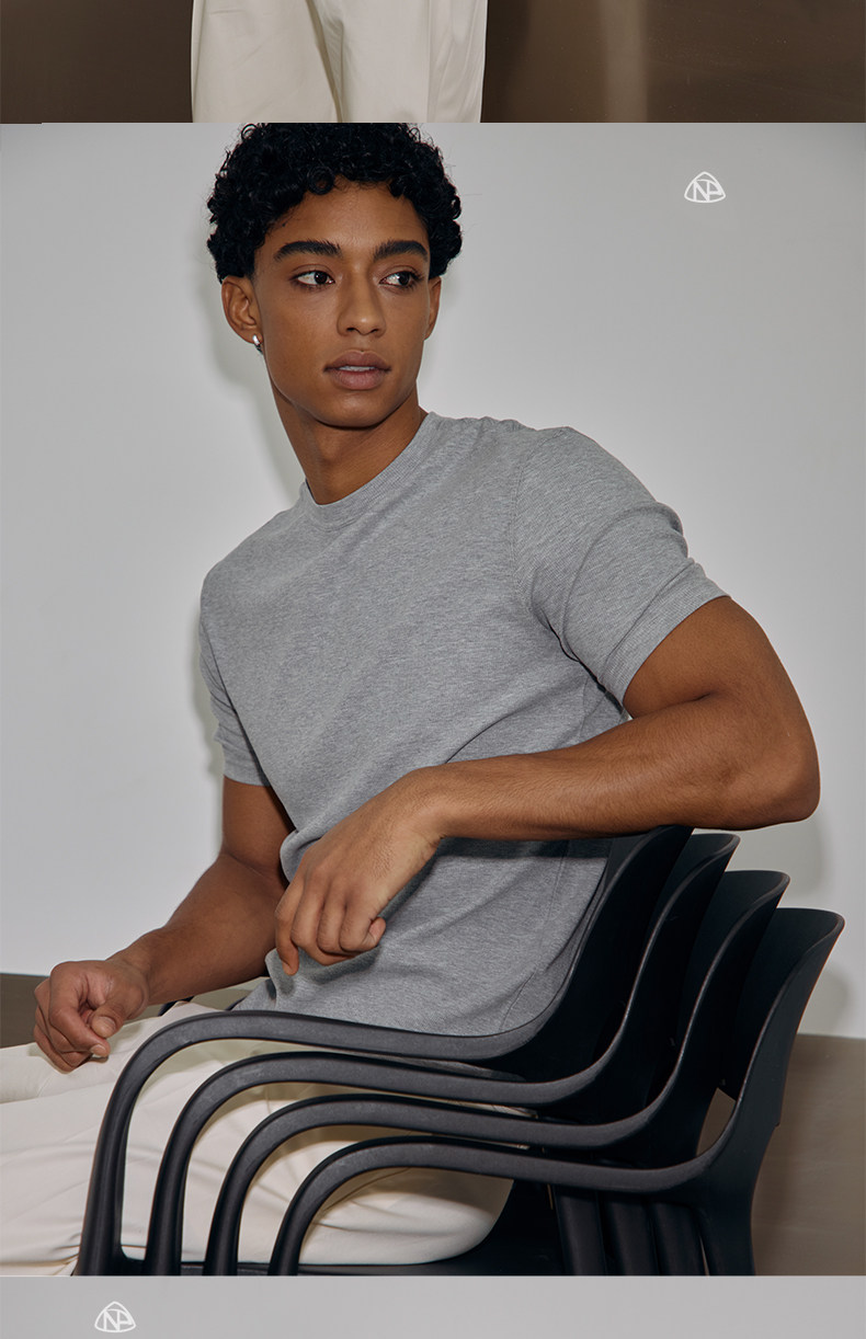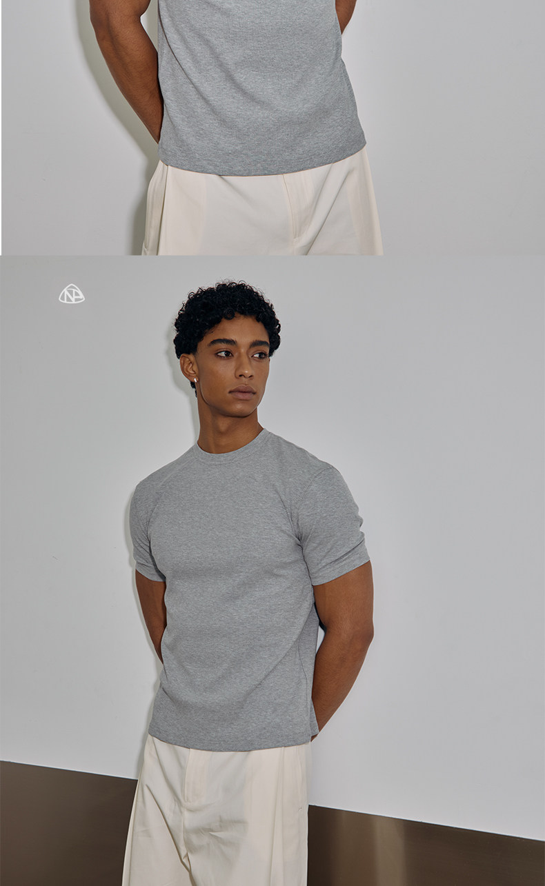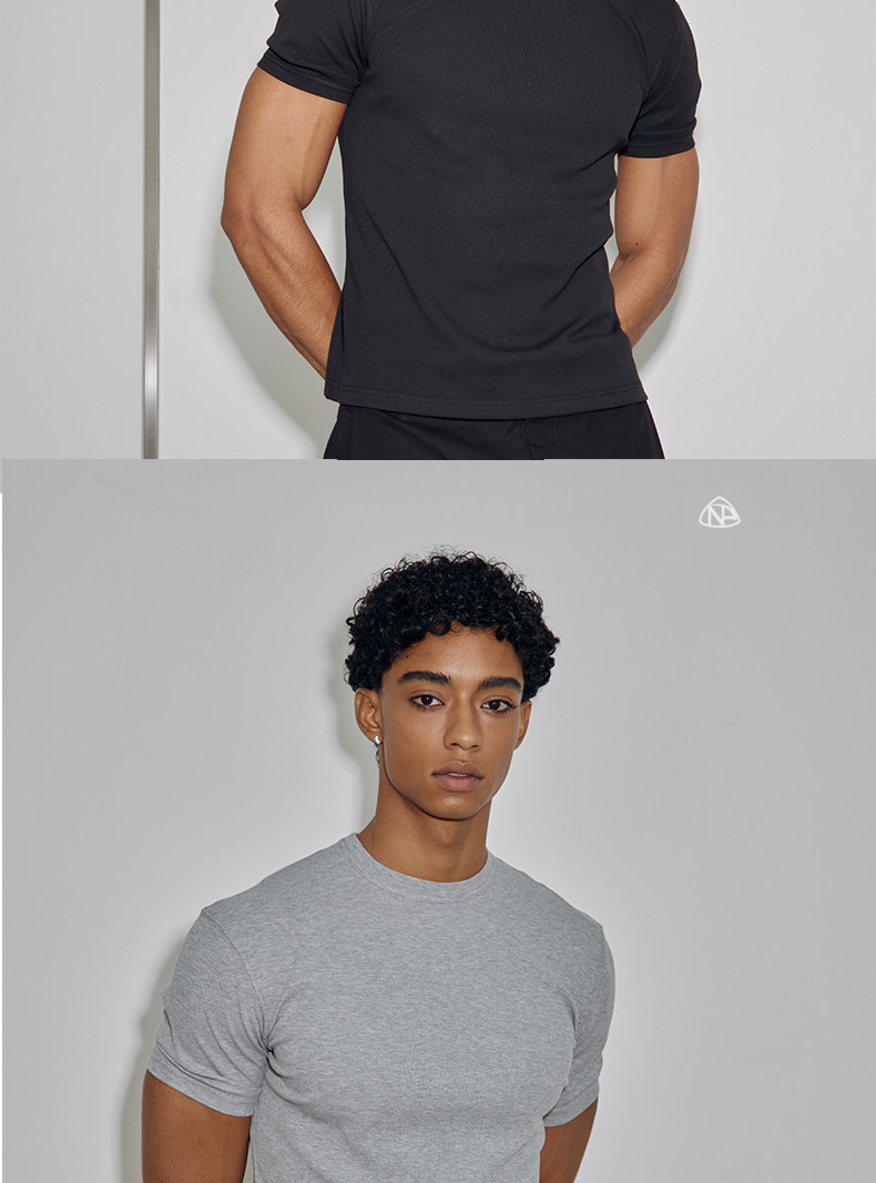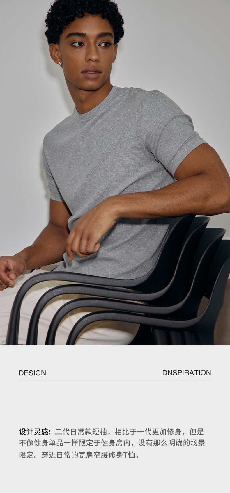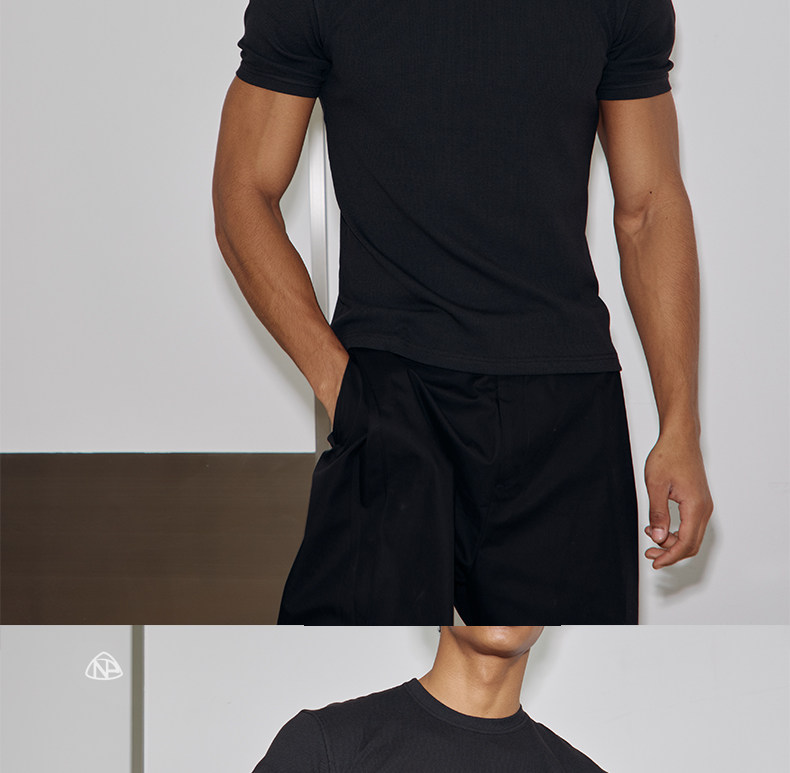 Second-Generation Everyday Style Slim-Fit Ribbed Wide-Shoulder Narrow-Waist Soft Elastic Texture T-Shirt Short-Sleeve Casual Fitness