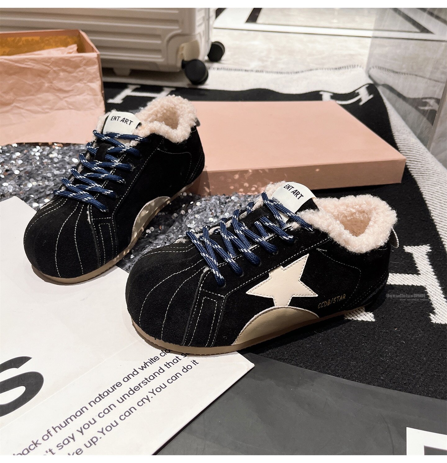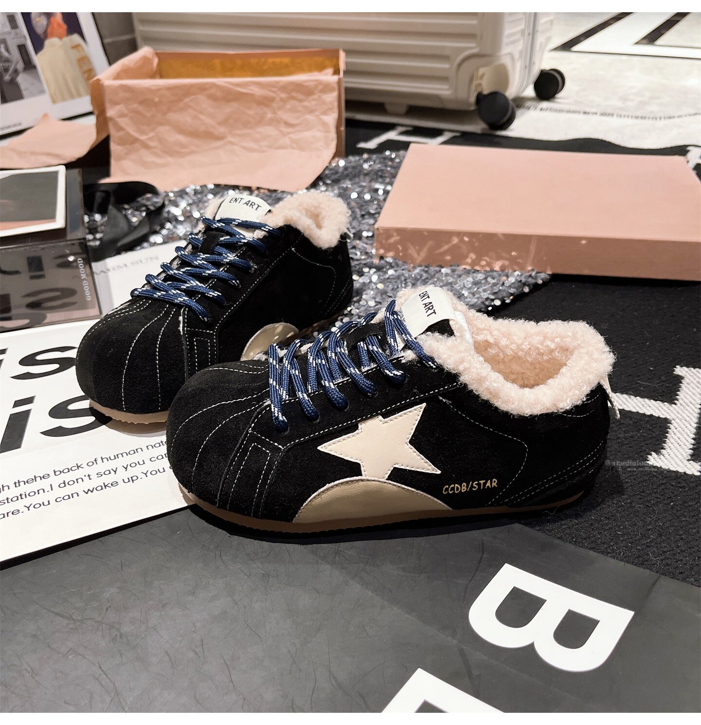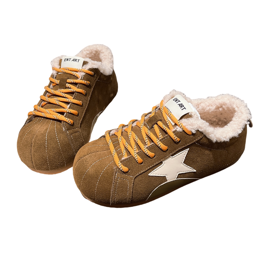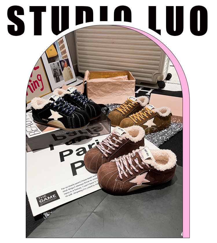 Hong Kong Genuine Leather Fur Shoes for Women 2026 Autumn and Winter New Style Large Toe Lace-Up Casual Shoes Sneakers German Training Shoes Star Women's Shoes