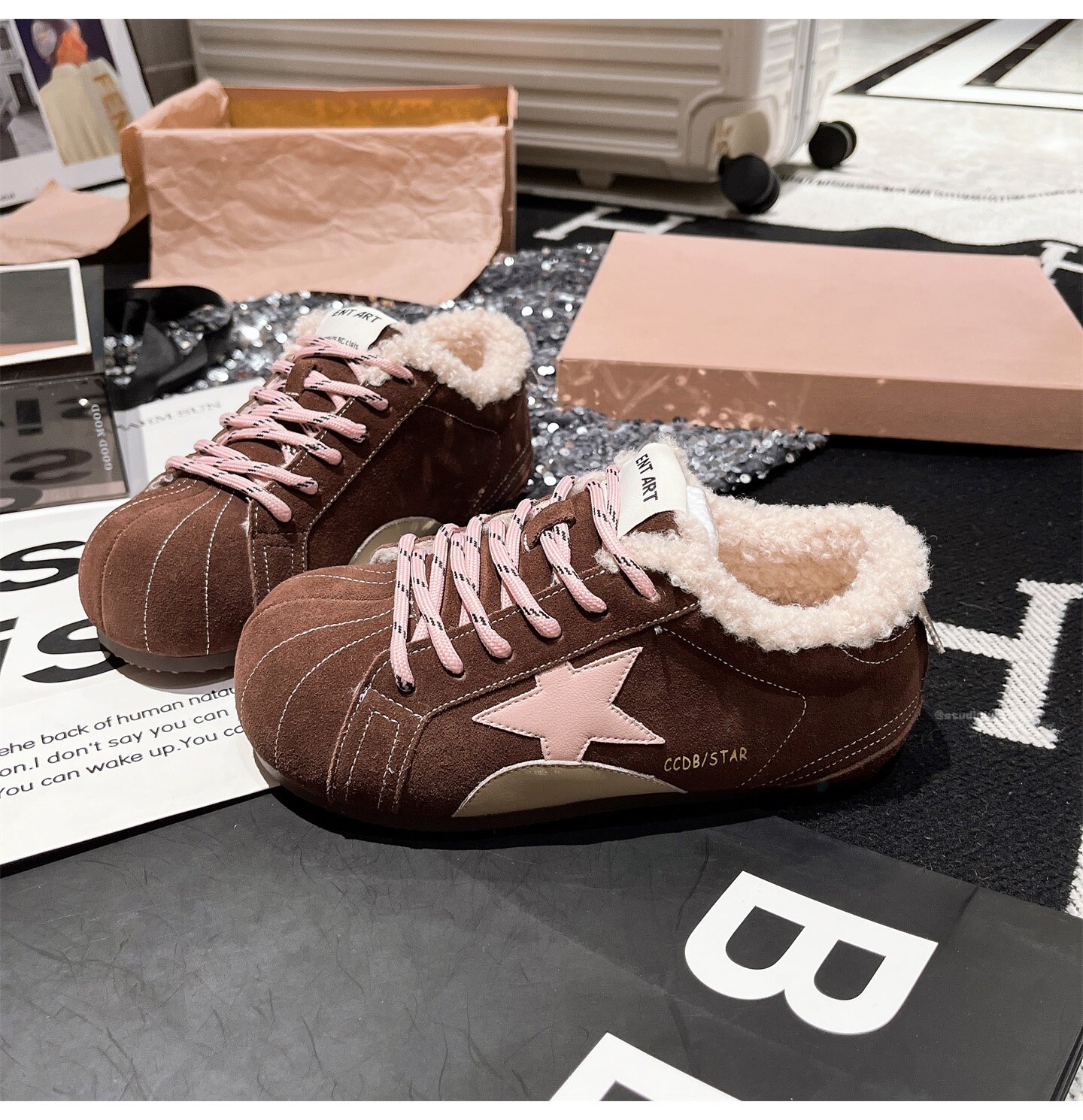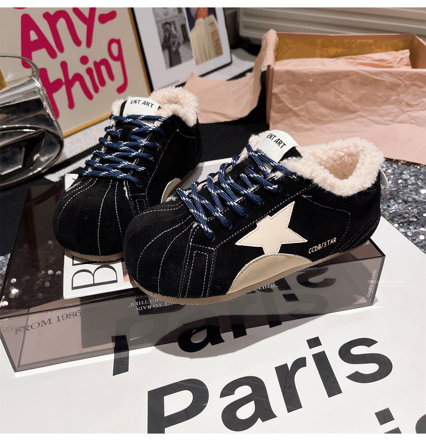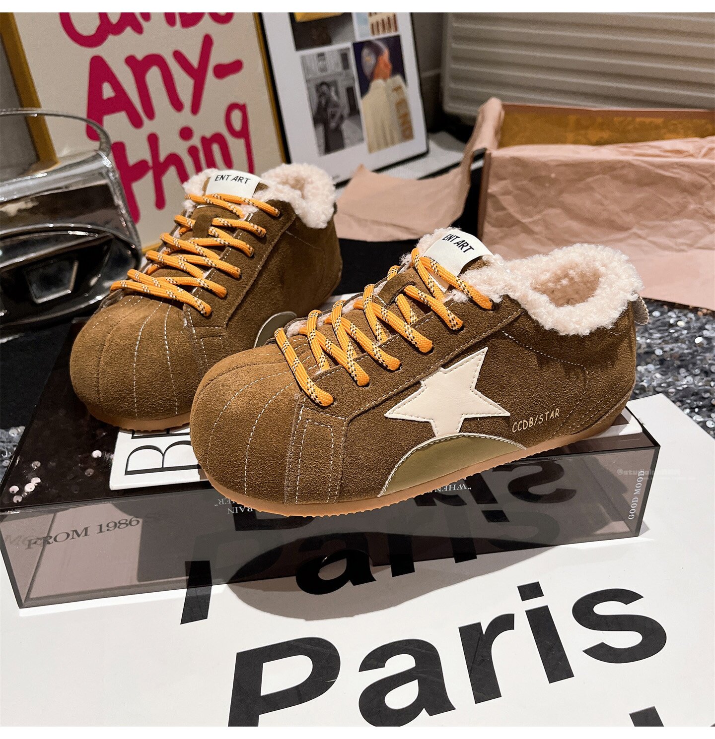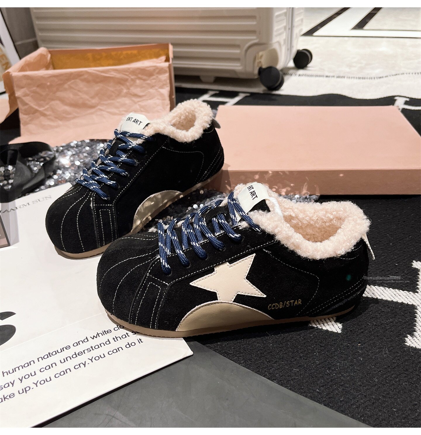 Hong Kong Genuine Leather Fur Shoes for Women 2026 Autumn and Winter New Style Large Toe Lace-Up Casual Shoes Sneakers German Training Shoes Star Women's Shoes