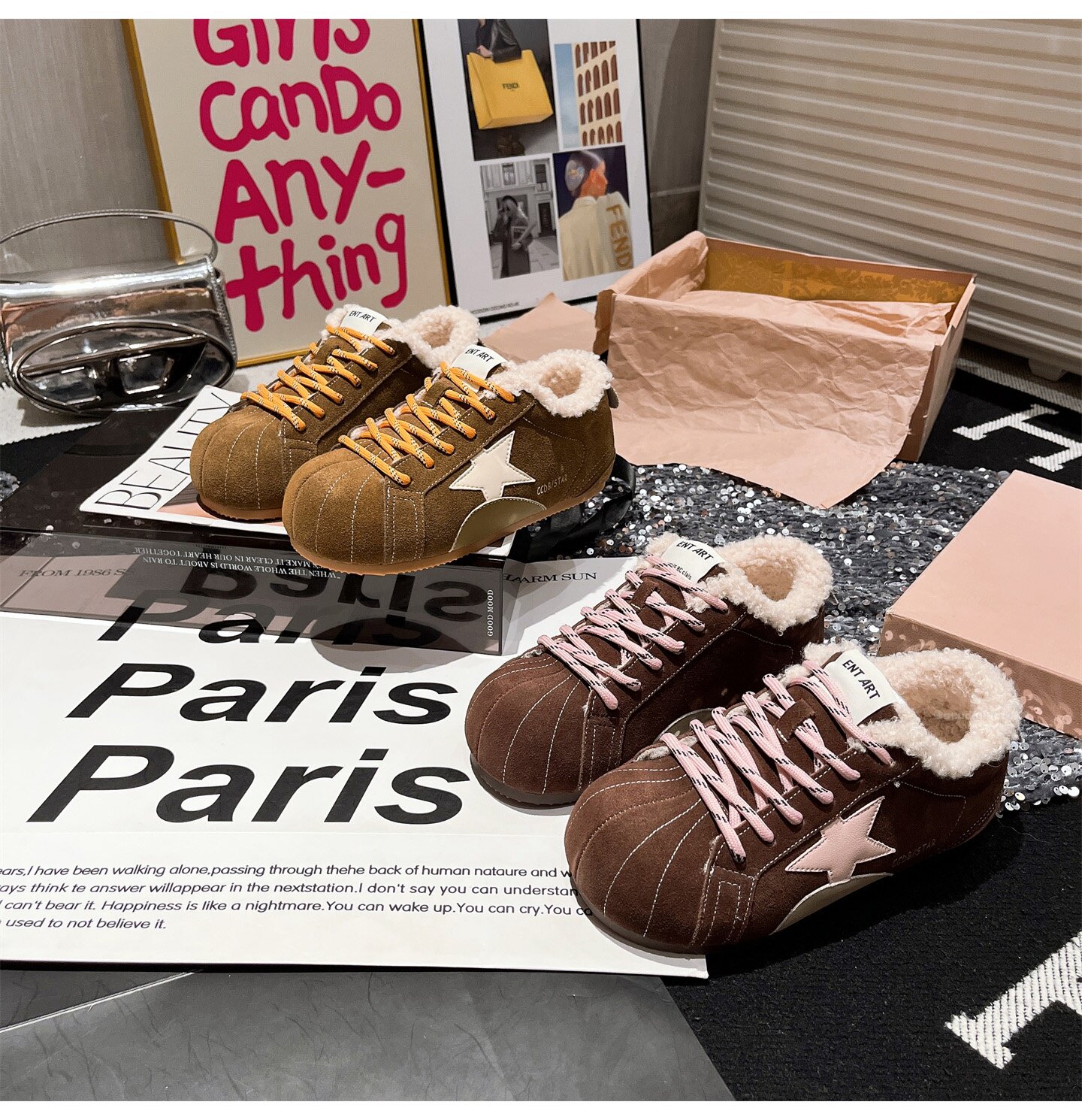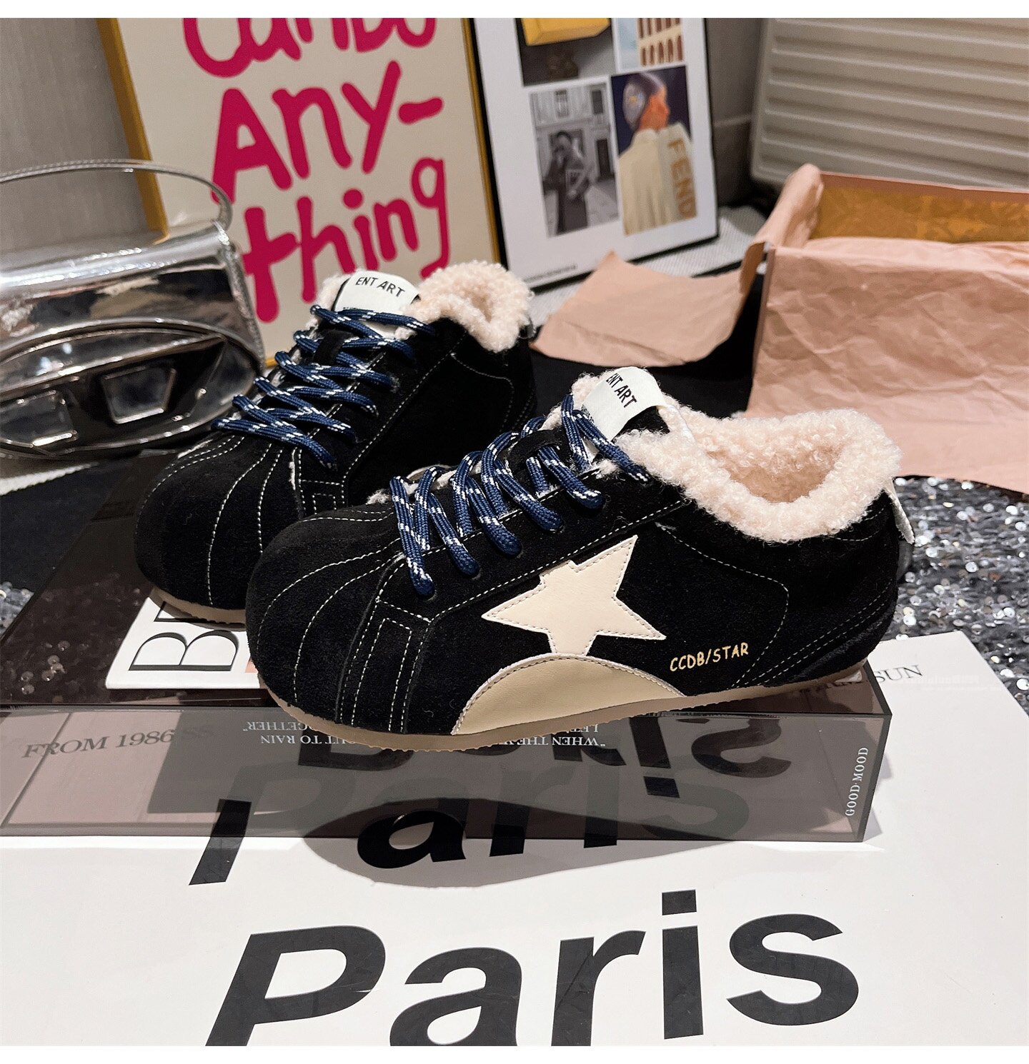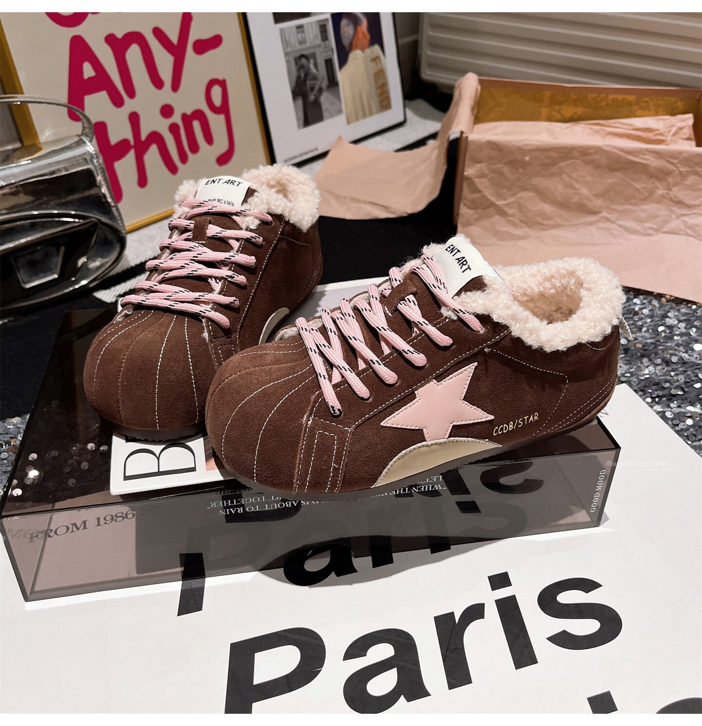 Hong Kong Genuine Leather Fur Shoes for Women 2026 Autumn and Winter New Style Large Toe Lace-Up Casual Shoes Sneakers German Training Shoes Star Women's Shoes