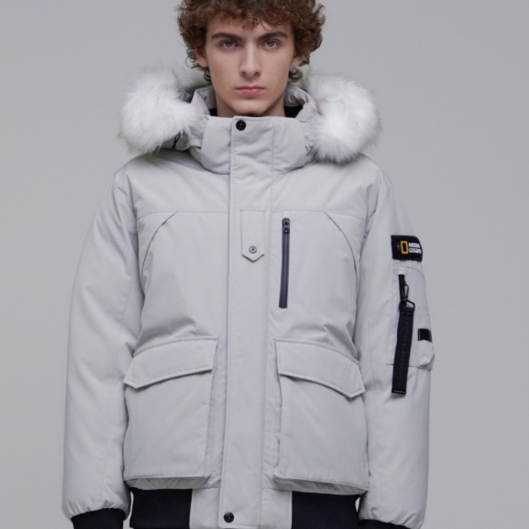 National Geographic Warm Workwear Large Pocket Versatile Winter Hooded Short Fur Collar down Jacket for Men and Women