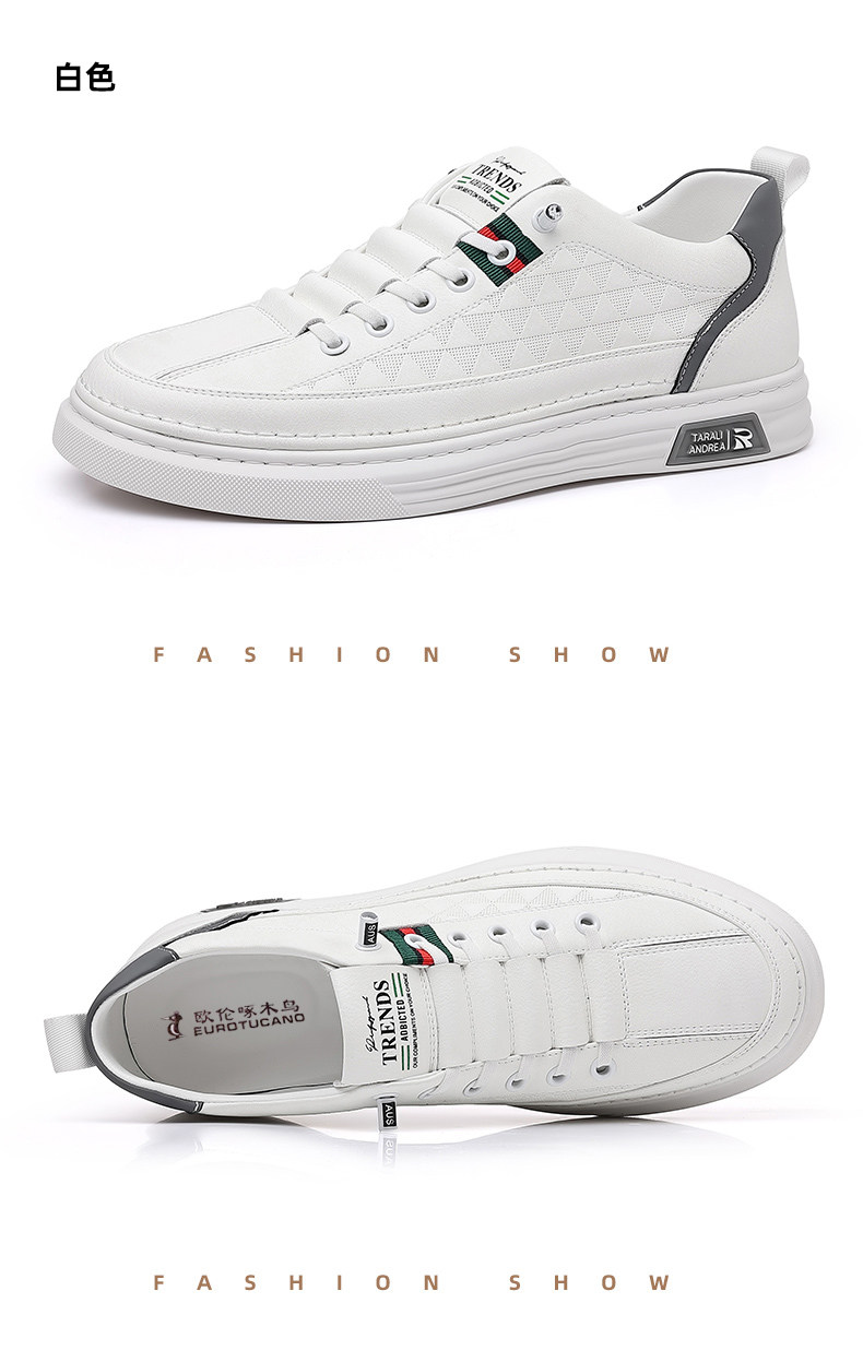 Ouren Woodpecker Men's Shoes 2026 New Model Men's Business Casual Shoes with Hidden Height Increase Soft Sole Genuine Leather Sneakers White Shoes