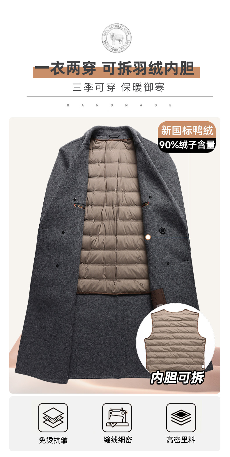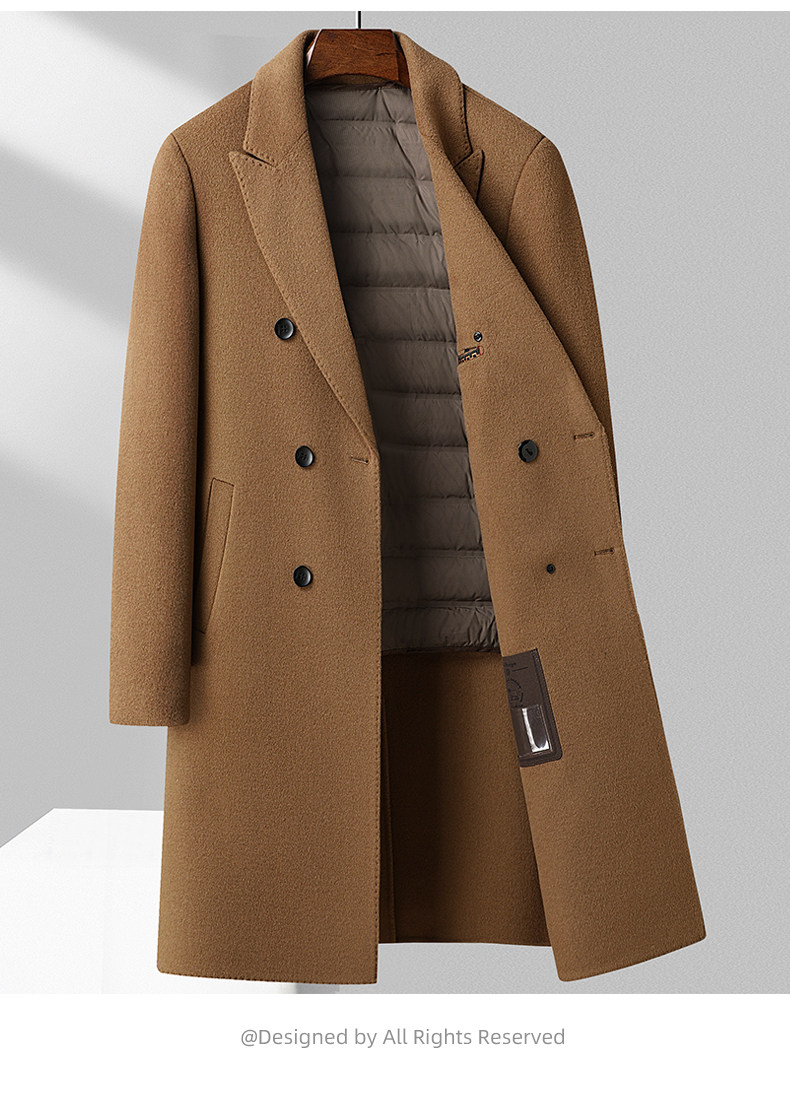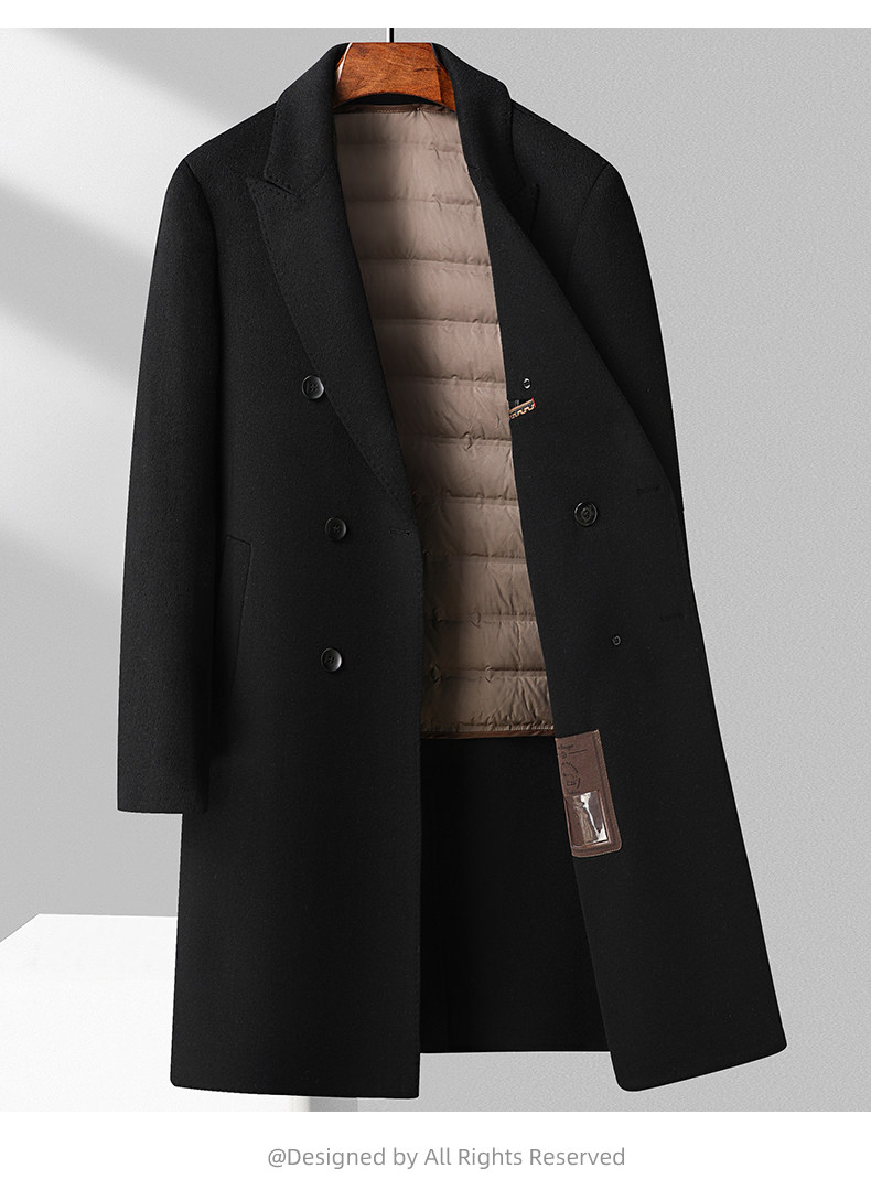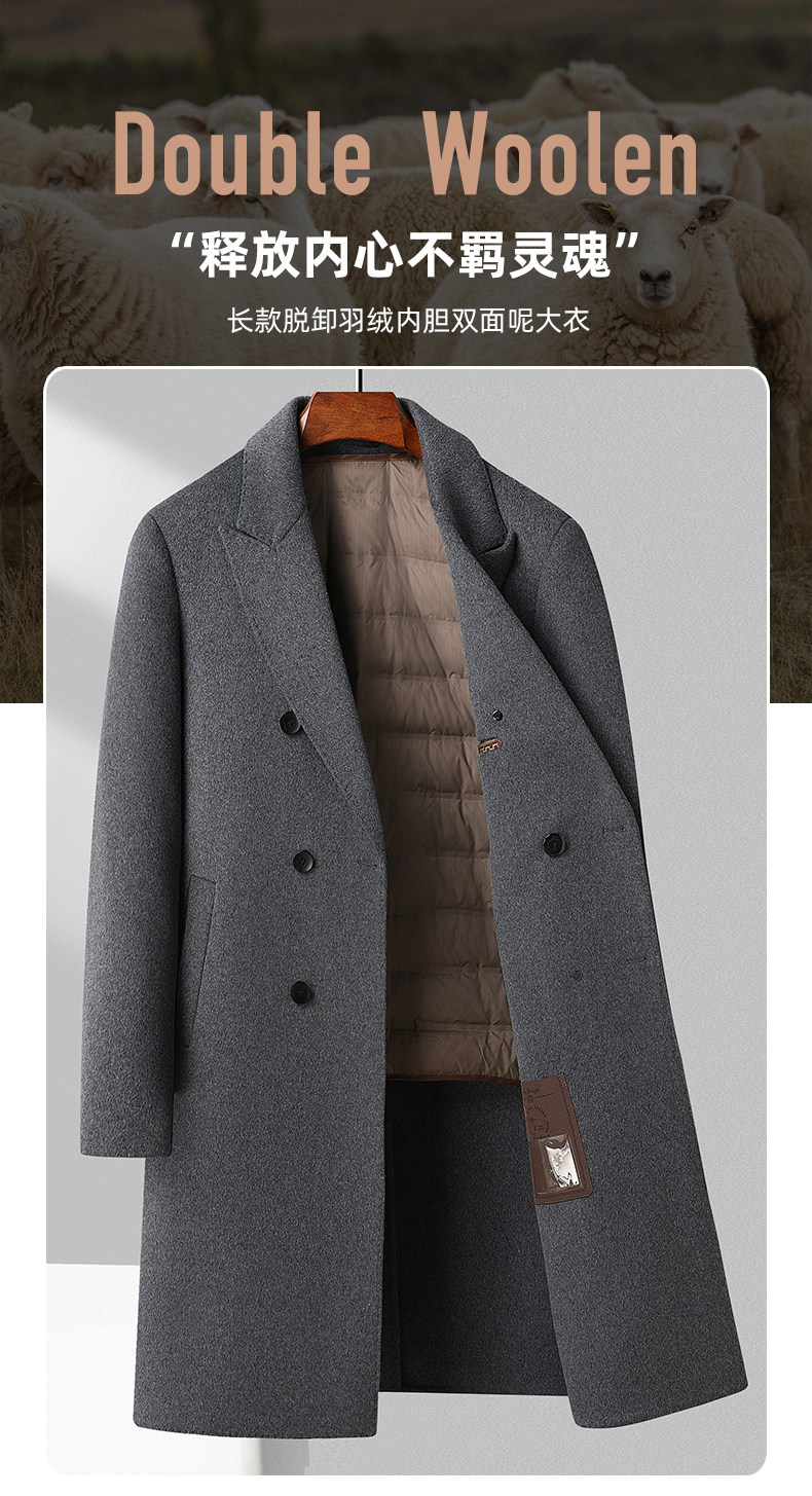 Romon 100% Wool Coat for Men, Knee-Length, Double-Breasted, Double-Sided Woolen Coat with Warm Lining, Winter Wear