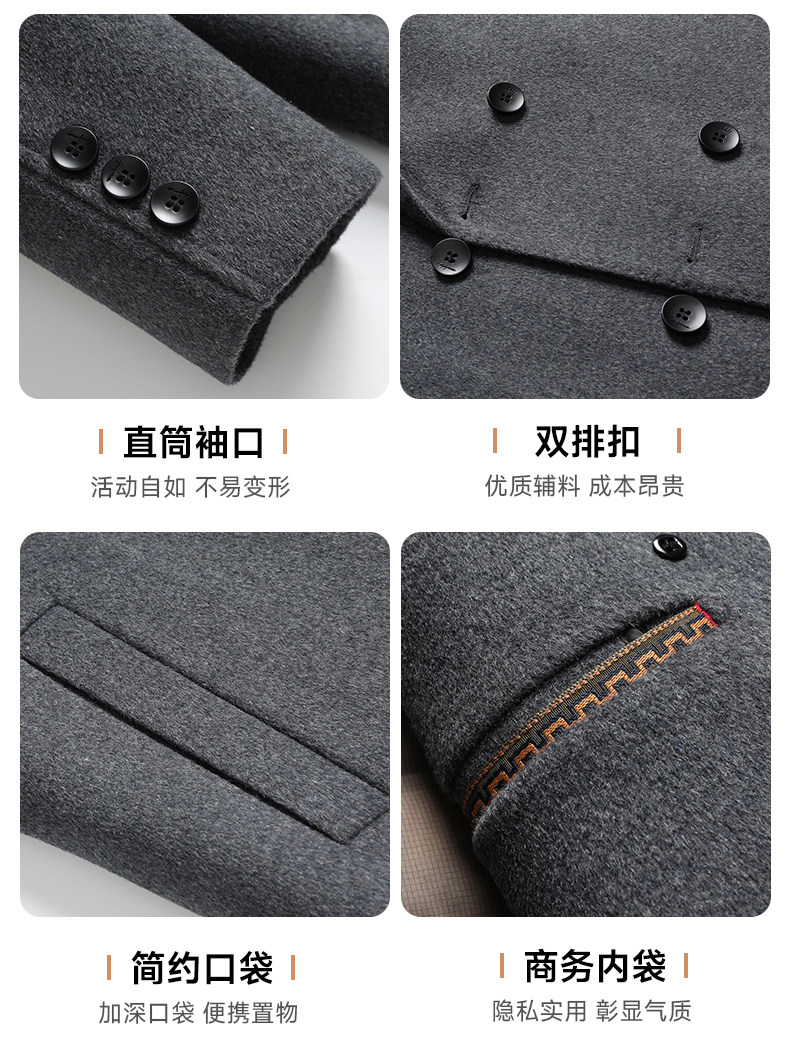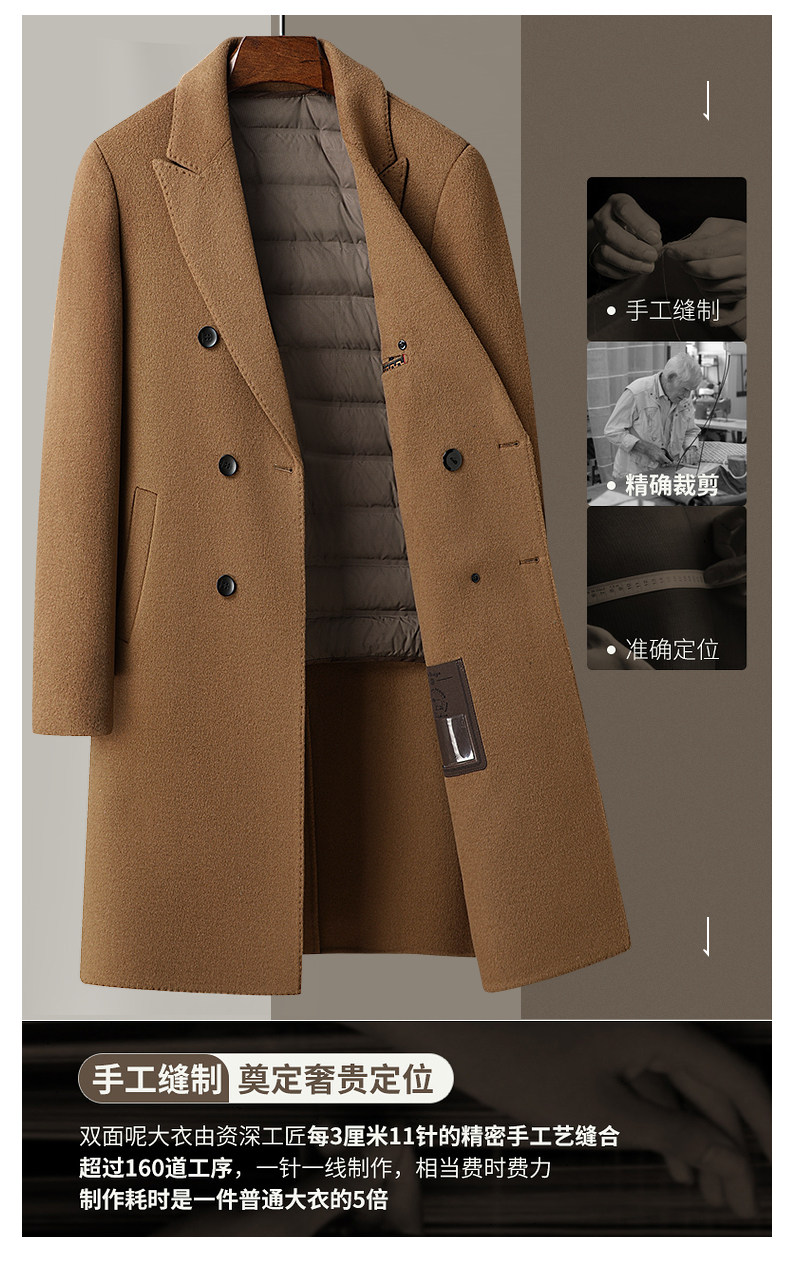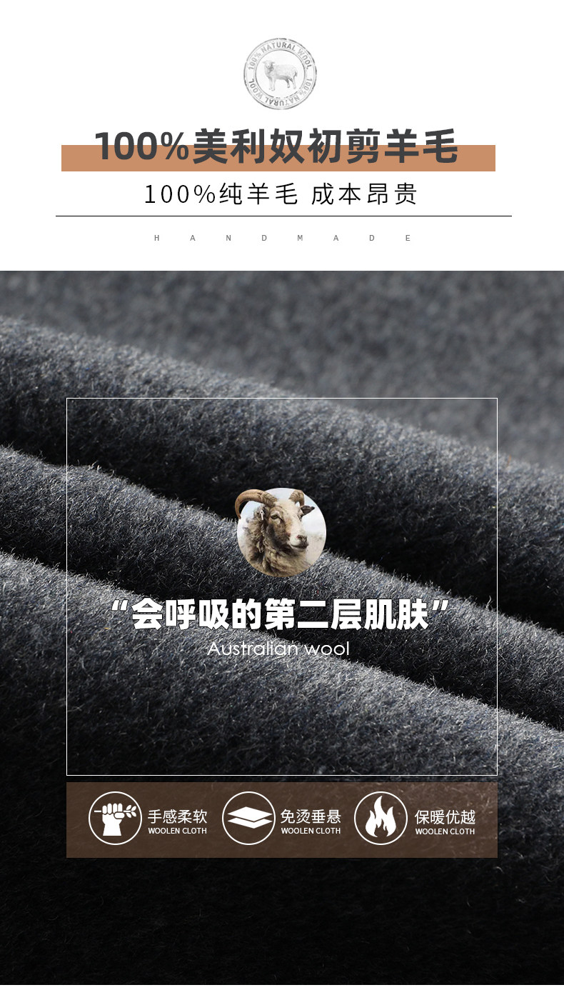Romon 100% Wool Coat for Men, Knee-Length, Double-Breasted, Double-Sided Woolen Coat with Warm Lining, Winter Wear