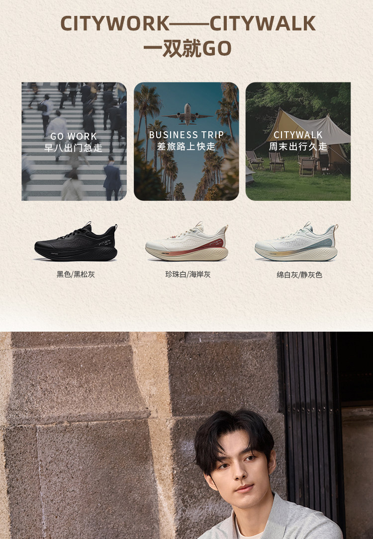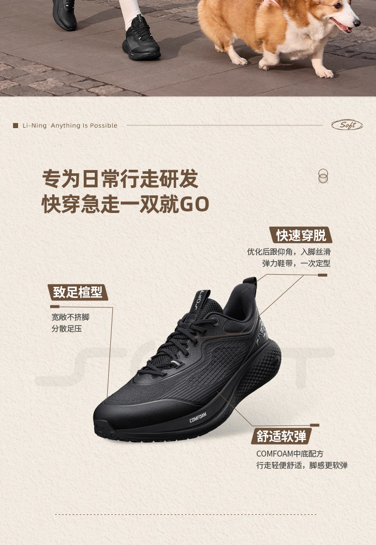 Li-Ning Soft Go 3丨Spring New Men's Water-Repellent, Soft, Comfortable, Trendy Casual Shoes Aglw001