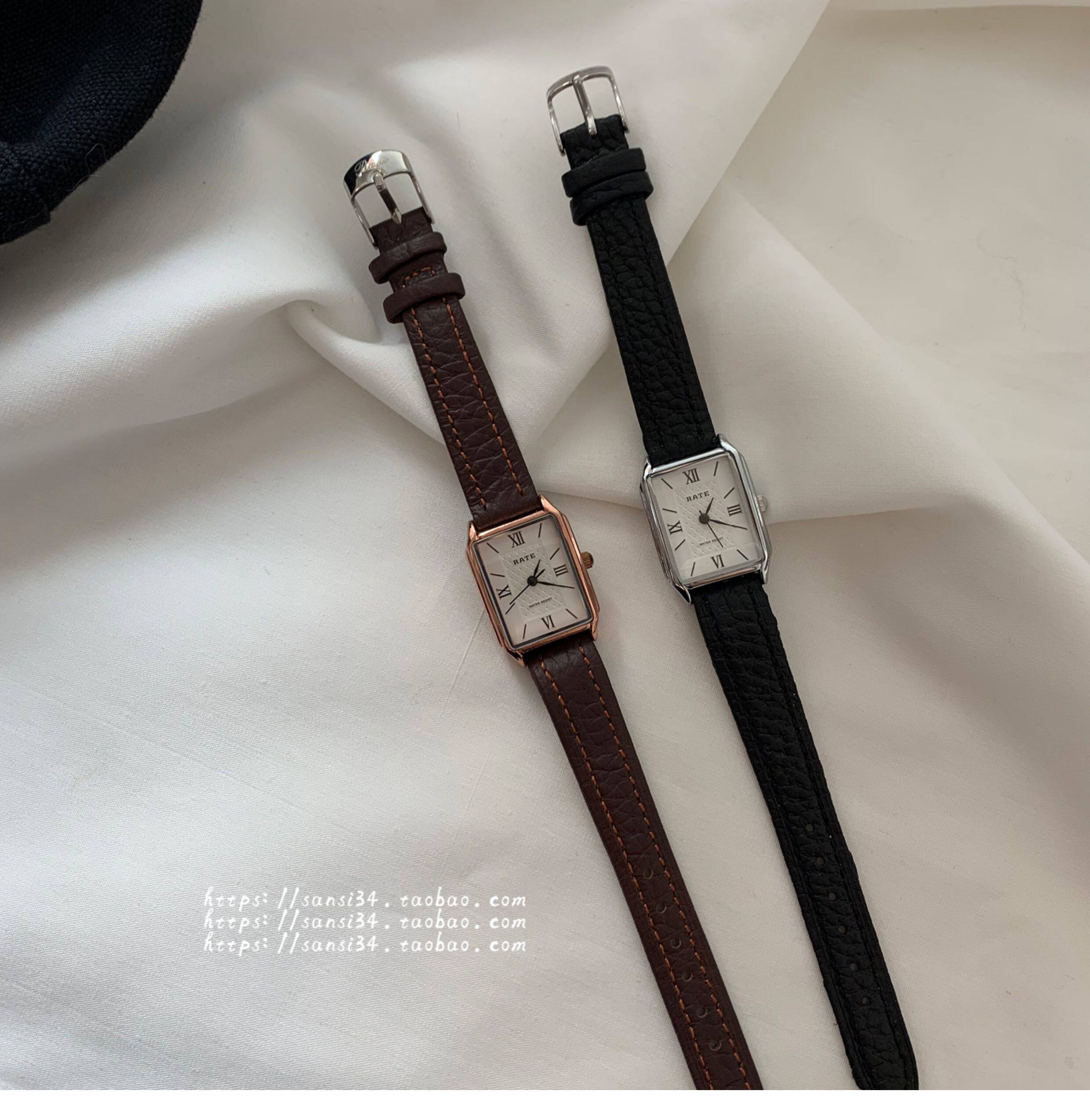 Sansi Market Store ins Retro Fashion Square Dial Internet Celebrity Artistic Unisex Student Leather Strap Watch