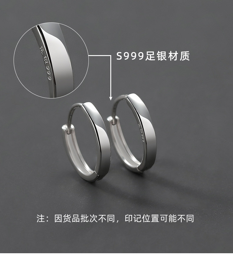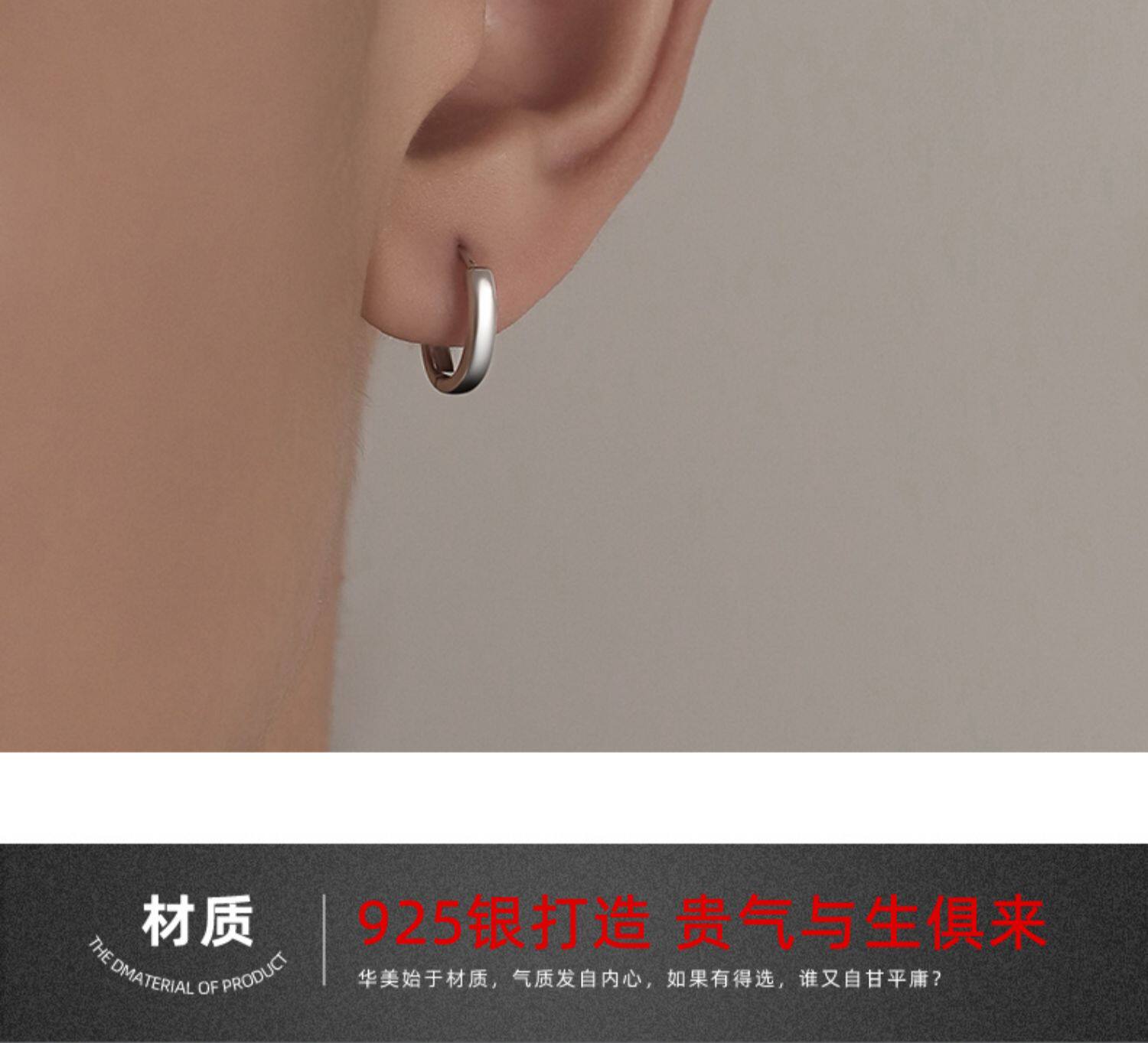 S999 Pure Silver Earrings for Men, Trendy Single Plain Hoop Ear Clip, Ear Hoop, Ear Jewelry, Ear Bone Stud, Niche Minimalist Men's Ear Stud