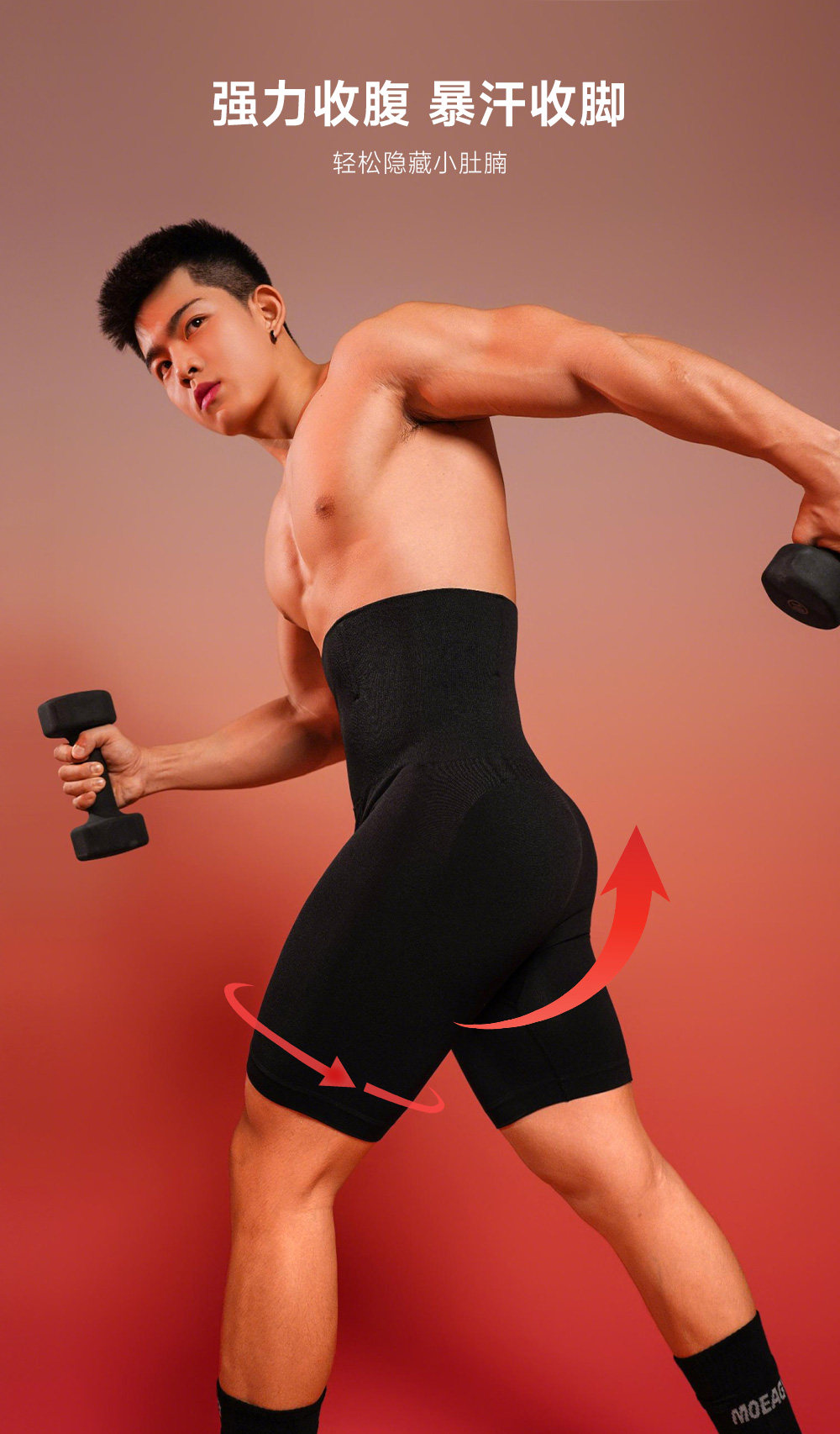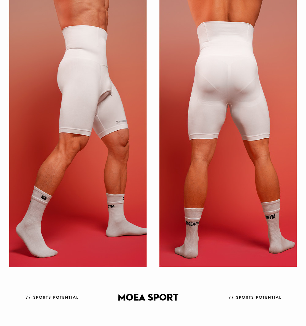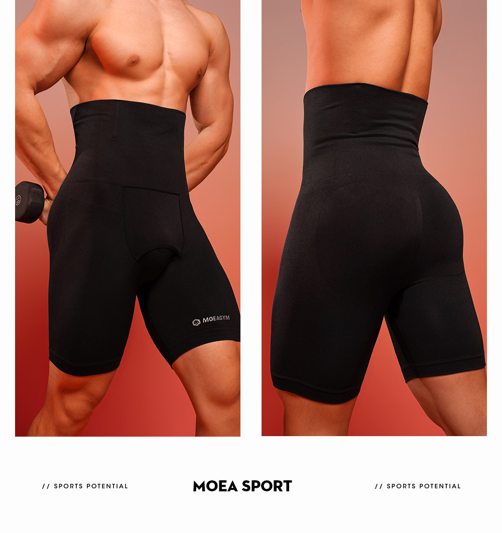 Elastic Body-Shaping Tight-Fitting Three-Quarter Pants for Men, Waist-Cinching, Tummy-Tucking, High-Waisted Compression Base Layer Fitness Wear Sports Shorts