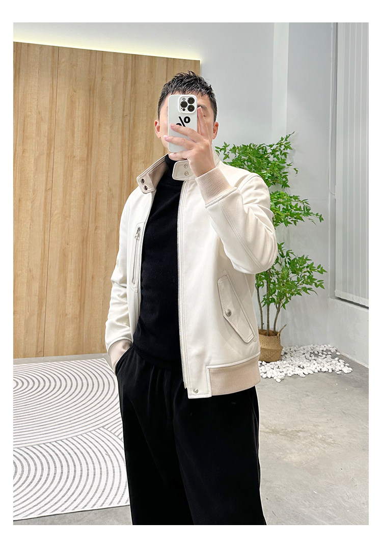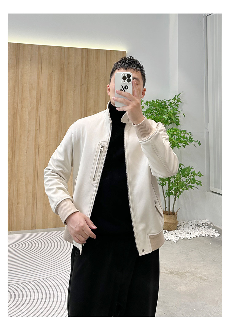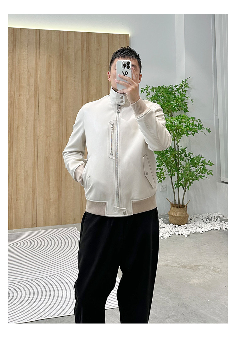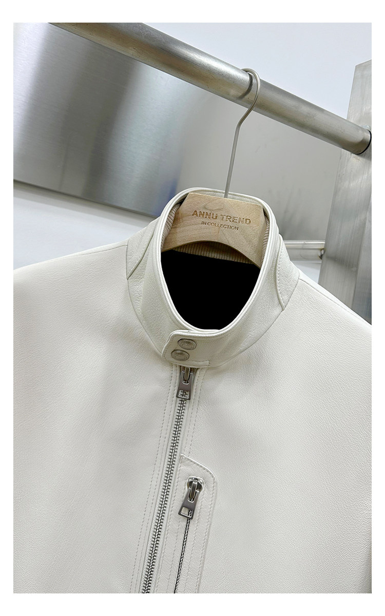 Annu President Edition Tf Version Ivory White Lambskin Jacket Genuine Leather Men's Light Luxury Fashion Motorcycle Jacket