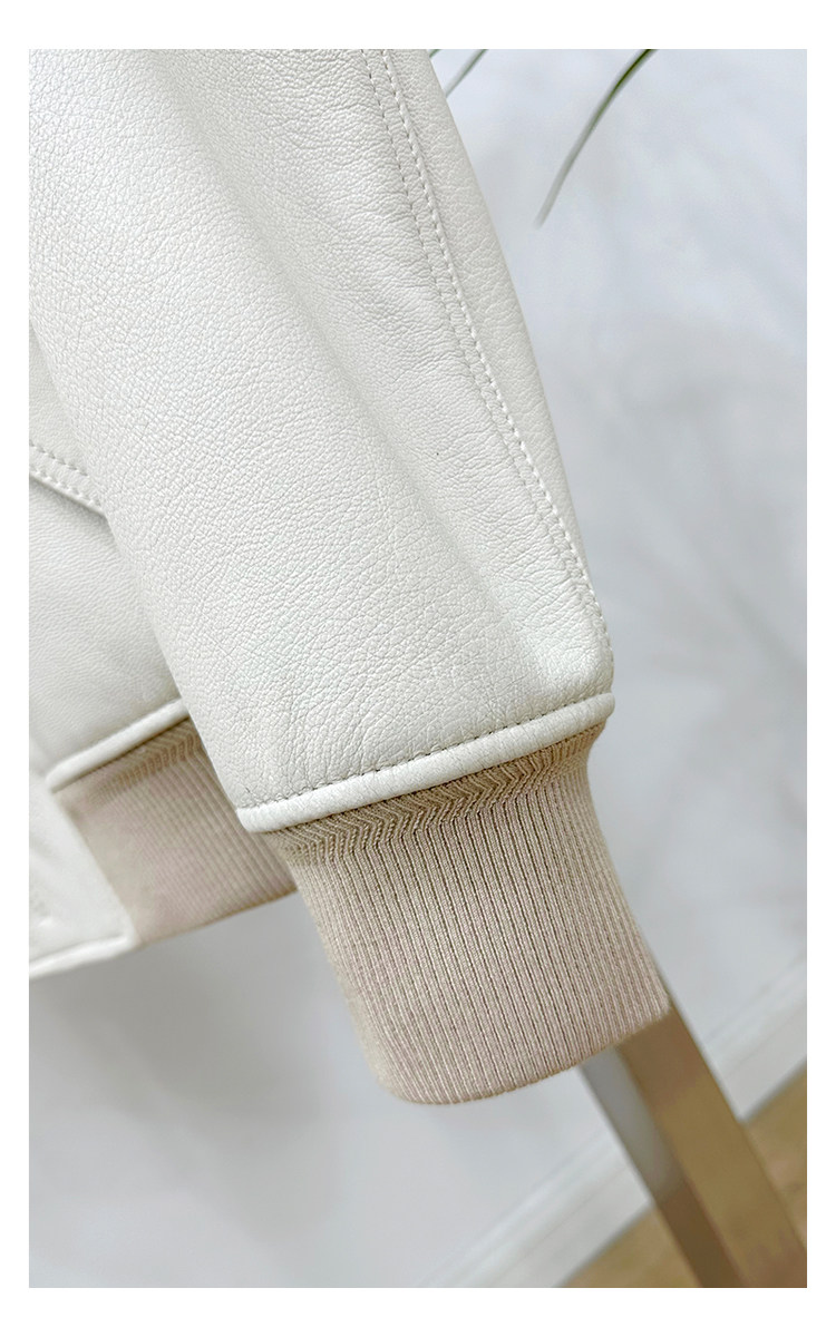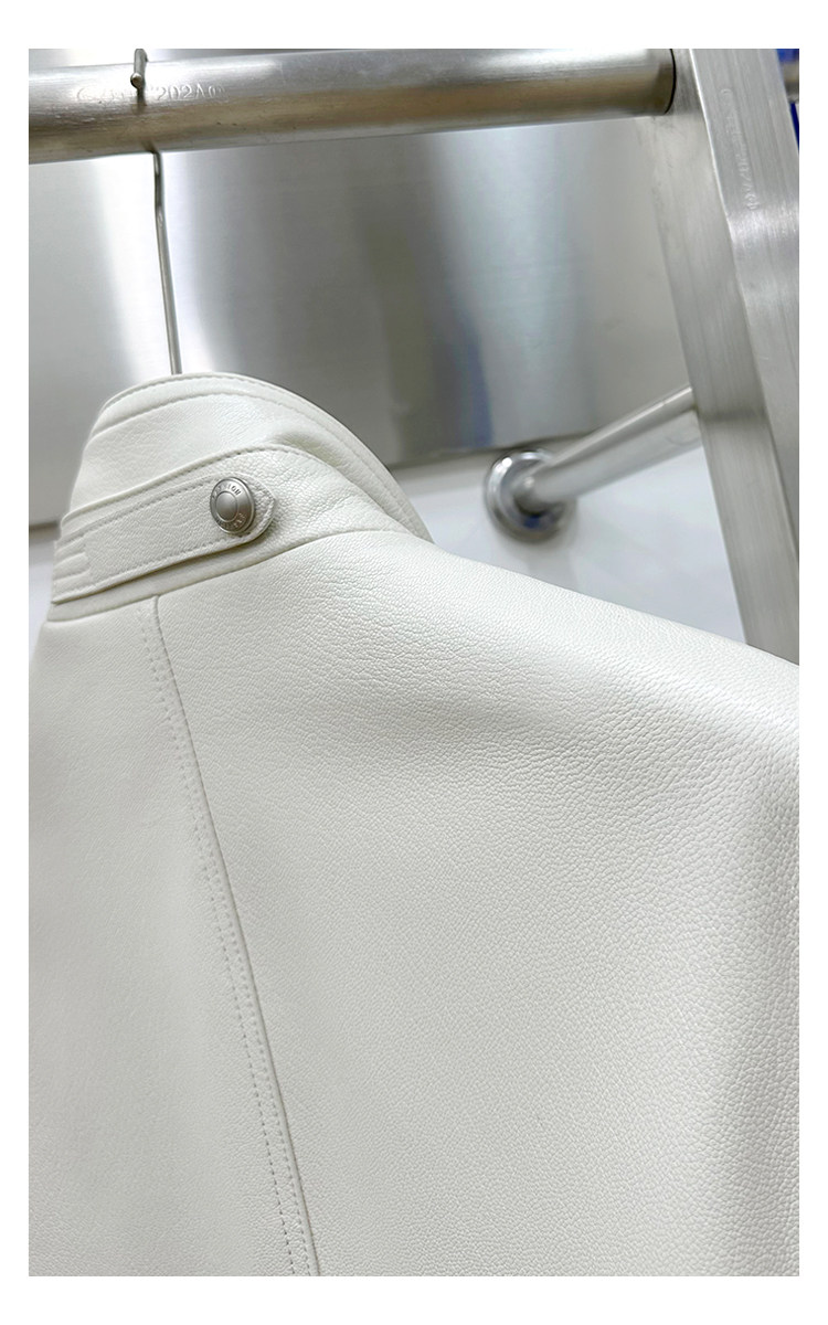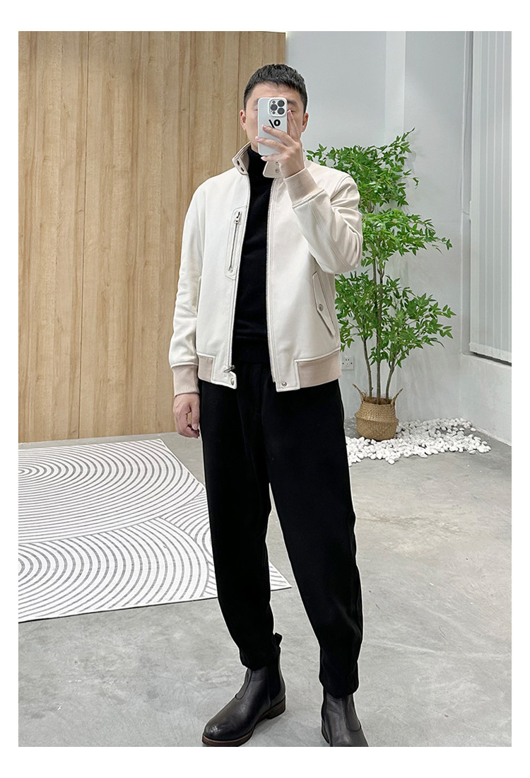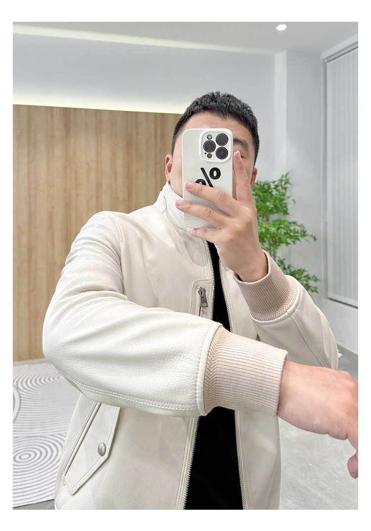 Annu President Edition Tf Version Ivory White Lambskin Jacket Genuine Leather Men's Light Luxury Fashion Motorcycle Jacket