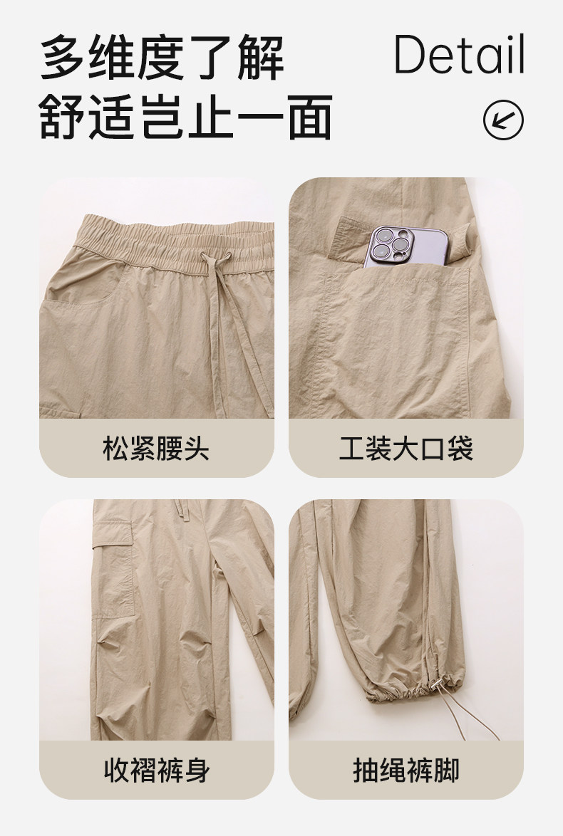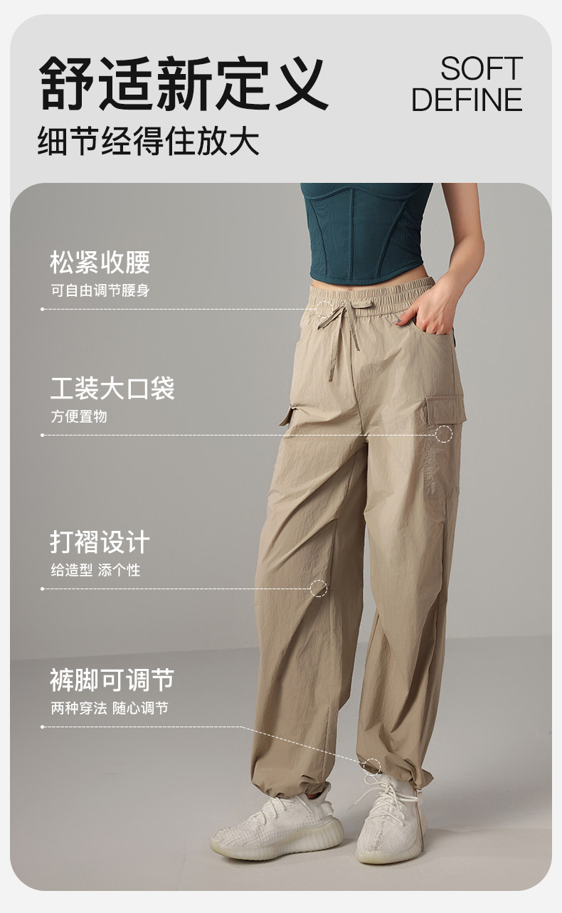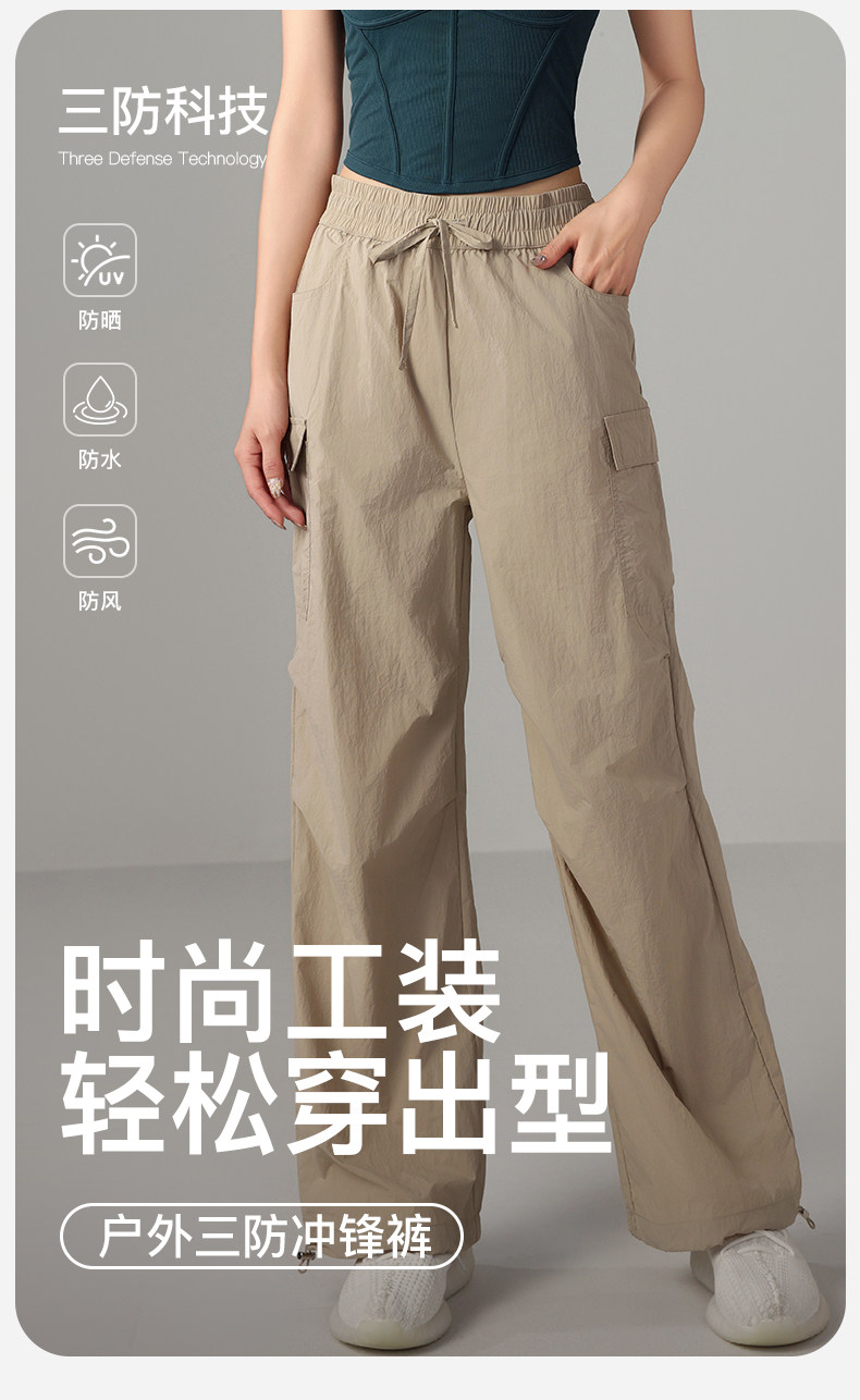 Waterproof Sports Pants for Women, Loose American-Style Wide-Leg Cargo Casual Pants, Jogger Hiking Pants, Sun-Protective Lightweight Softshell Pants