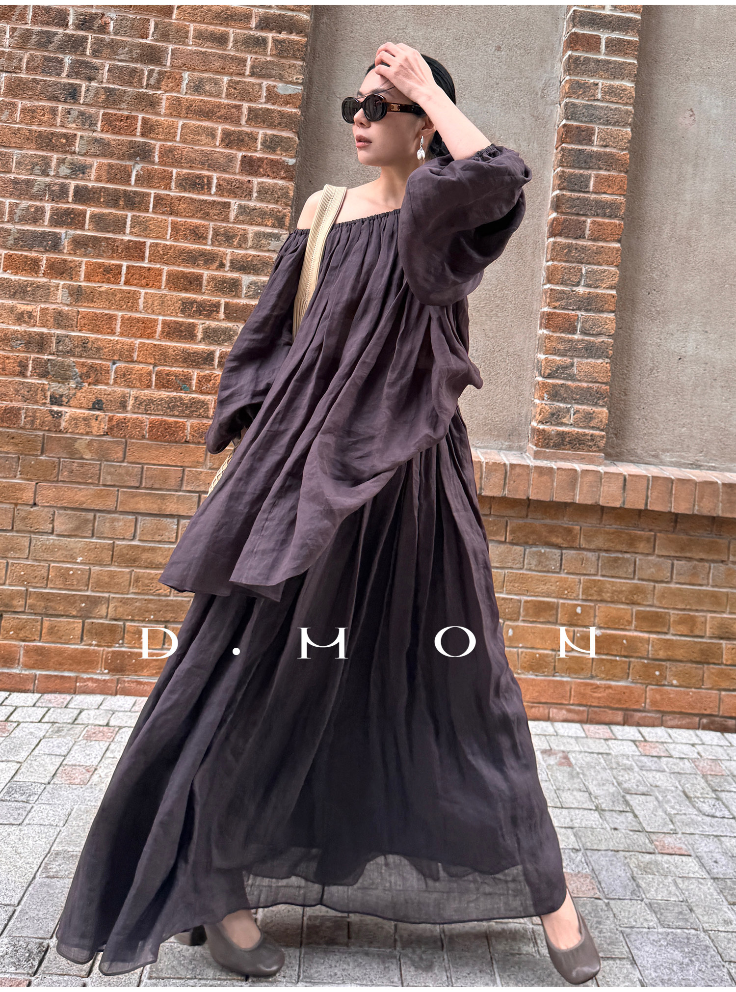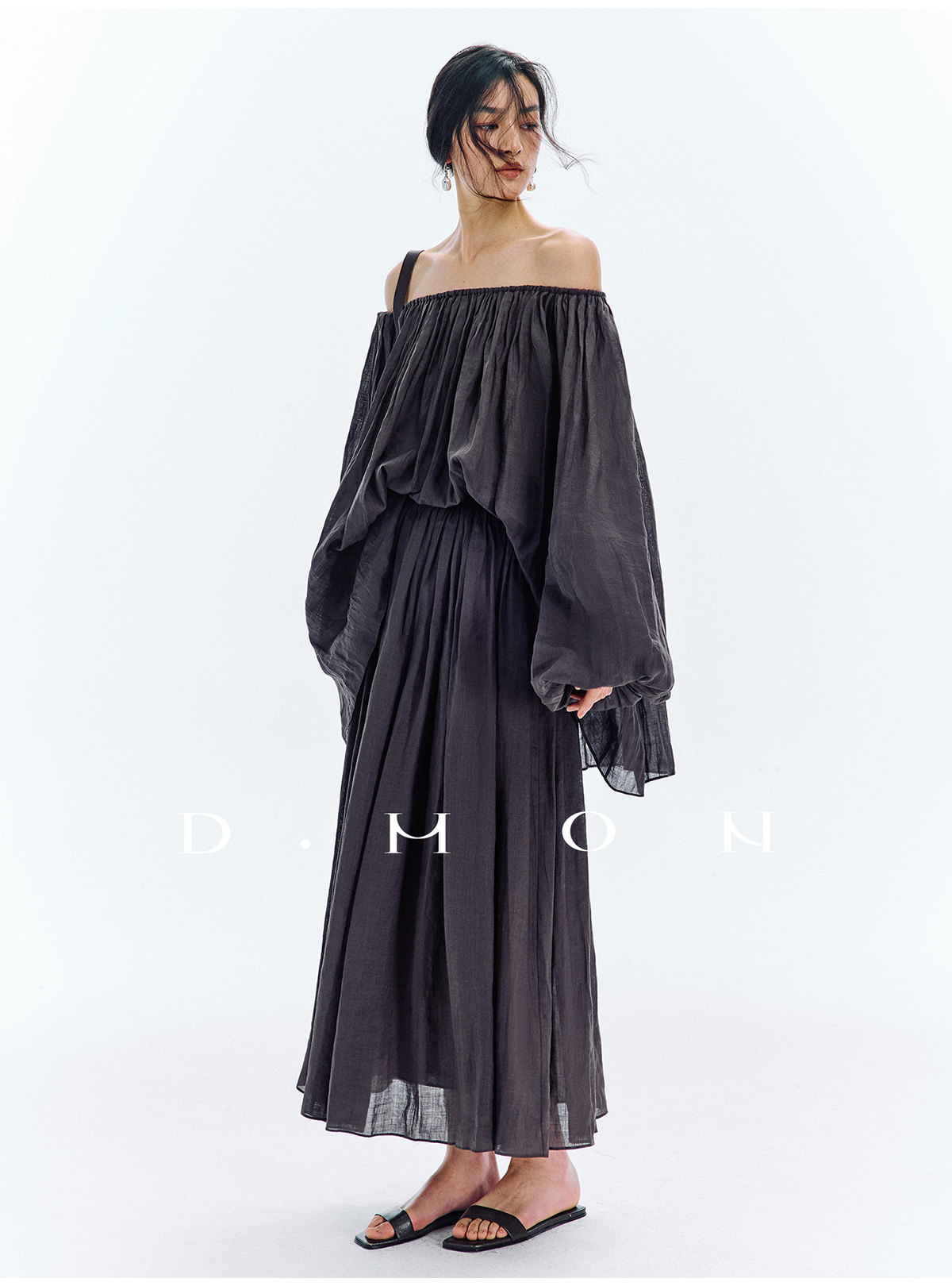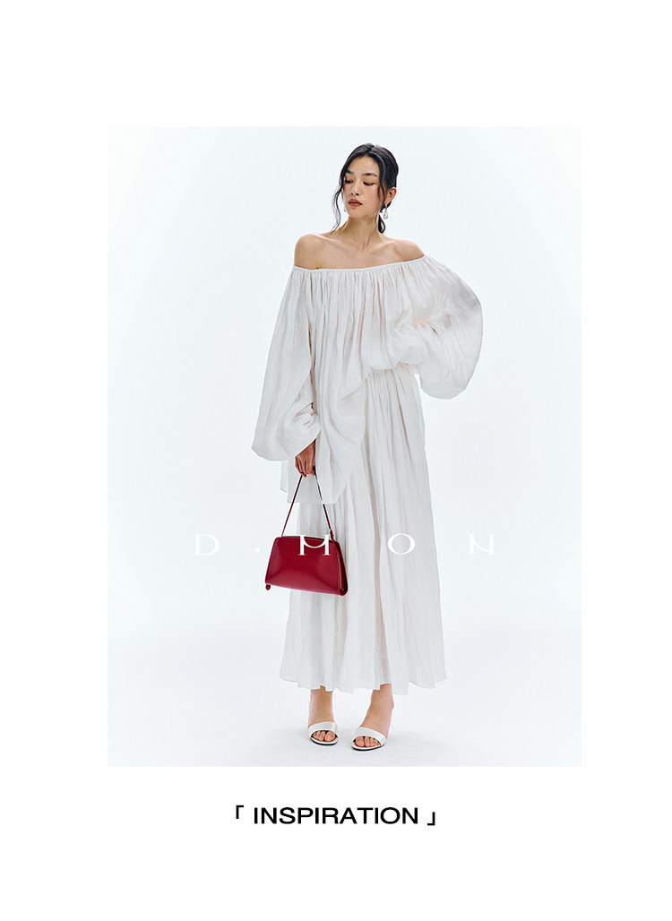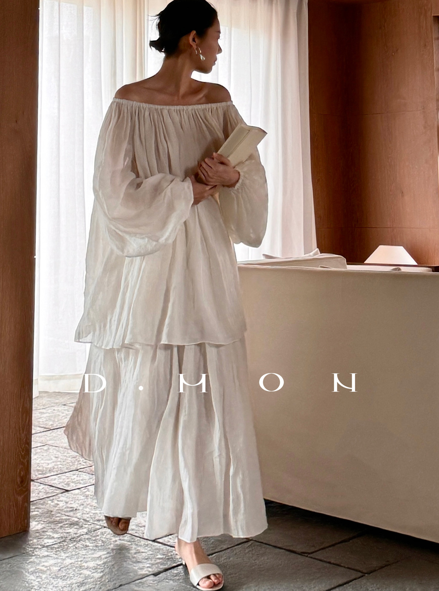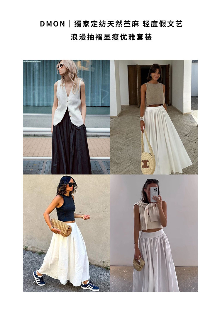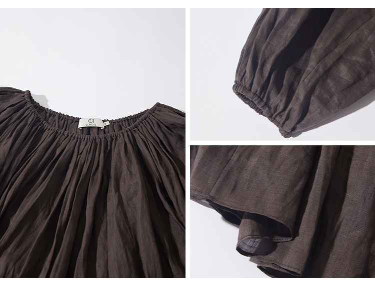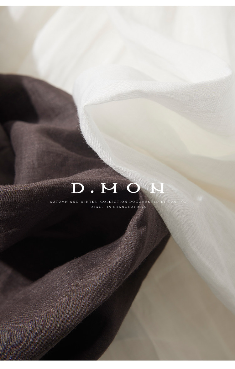Dmon|Exclusive Custom-Spun Natural Ramie Light Holiday-Style Romantic Ruched Slimming Elegant Set