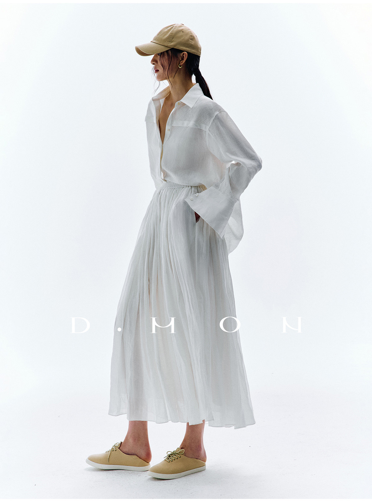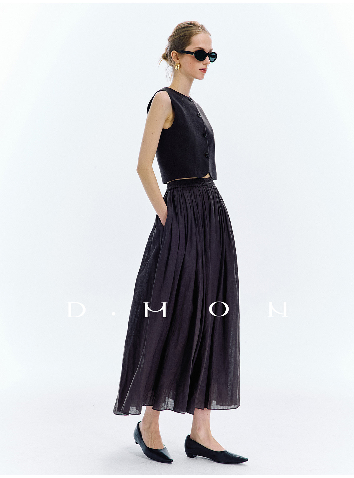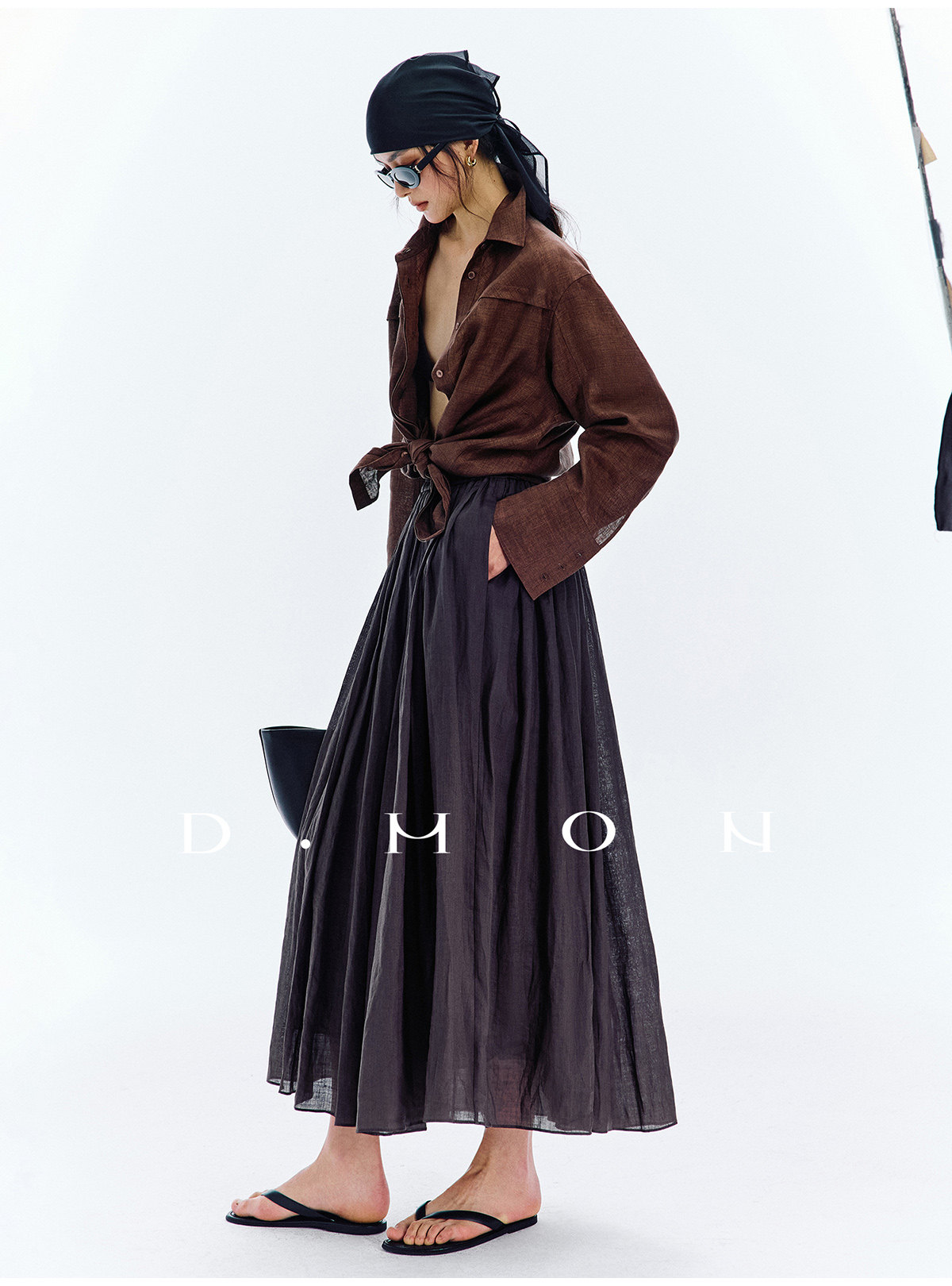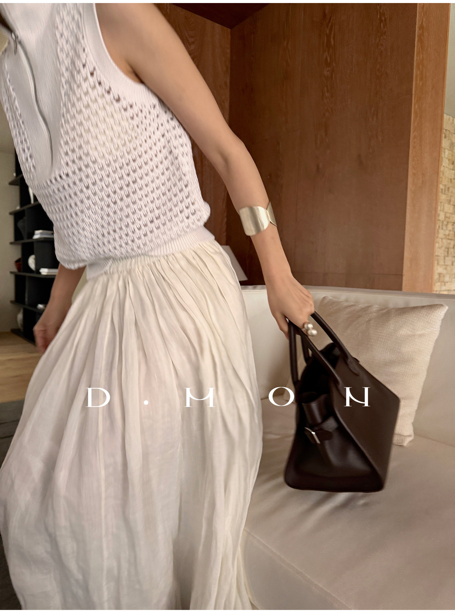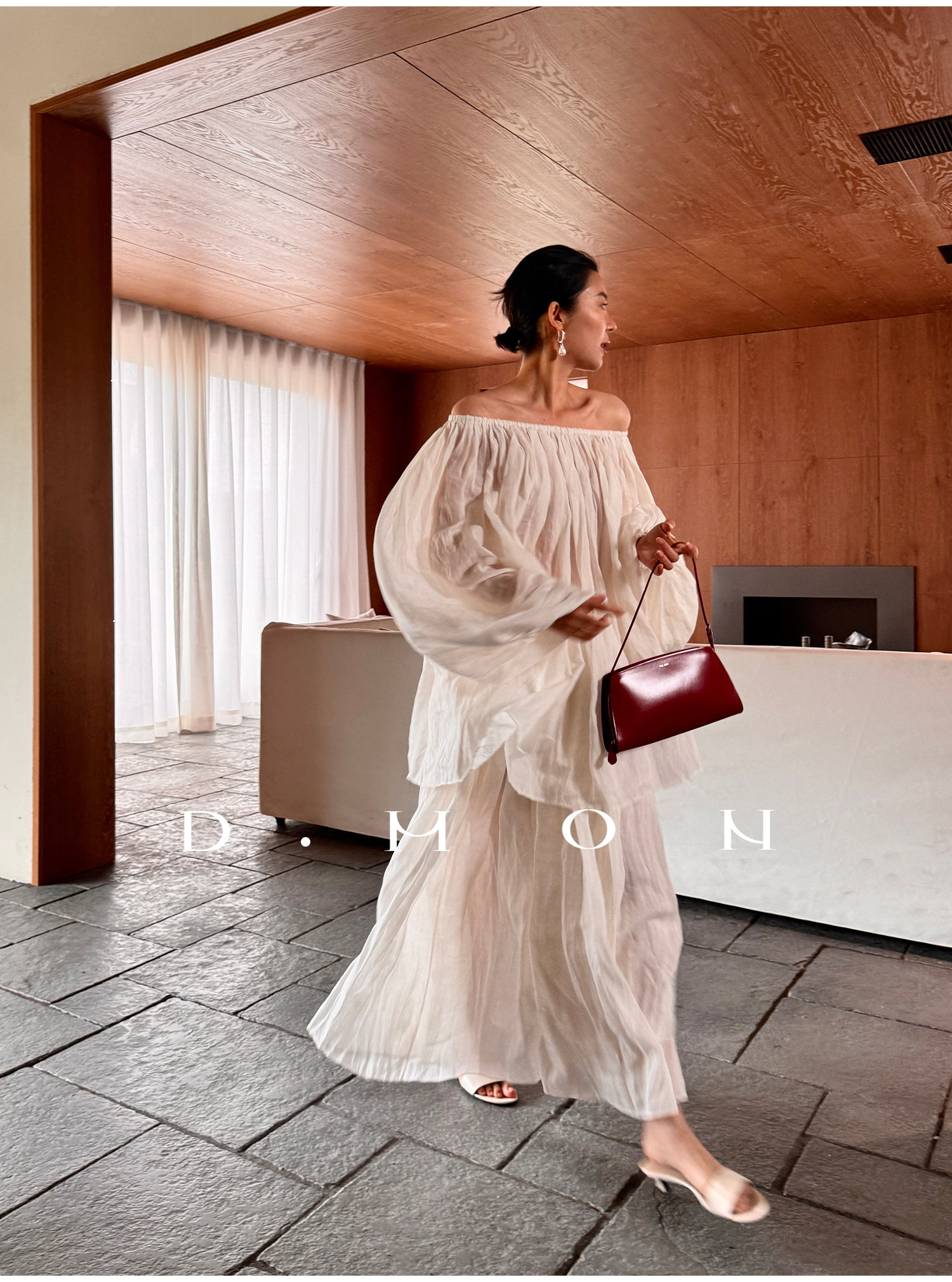 Dmon|Exclusive Custom-Spun Natural Ramie Light Holiday-Style Romantic Ruched Slimming Elegant Set