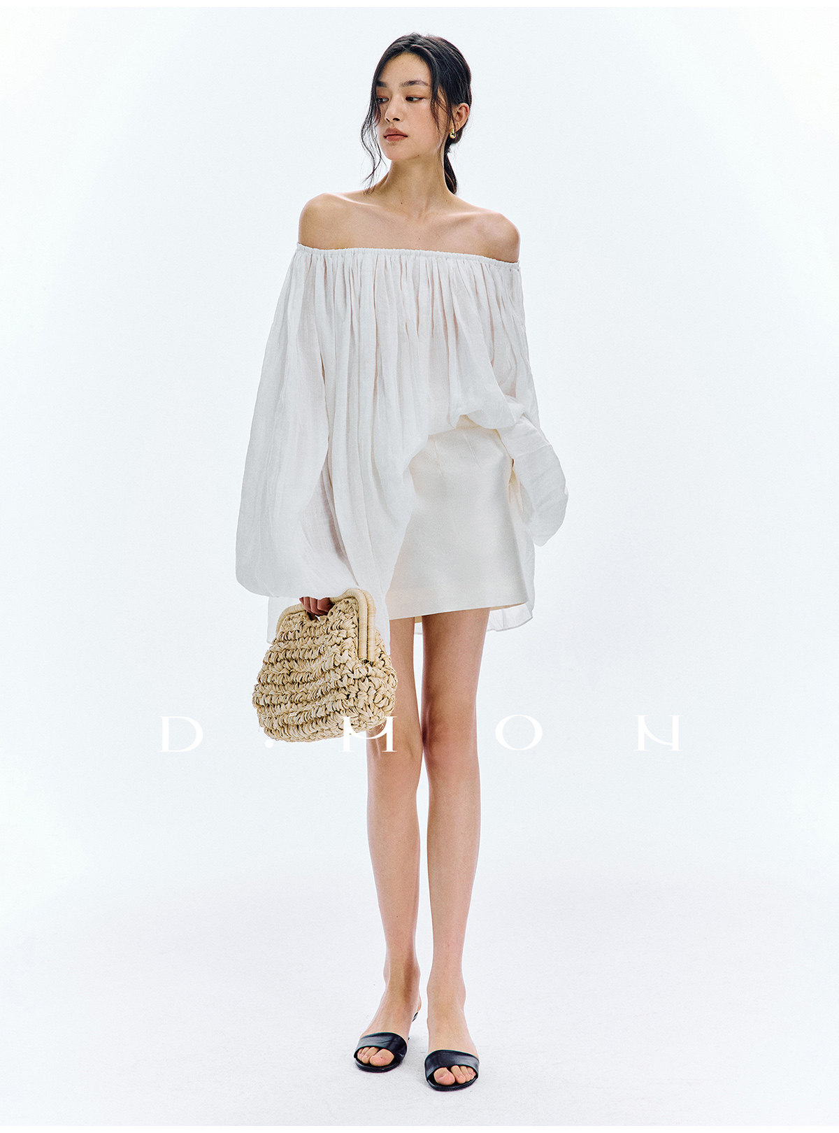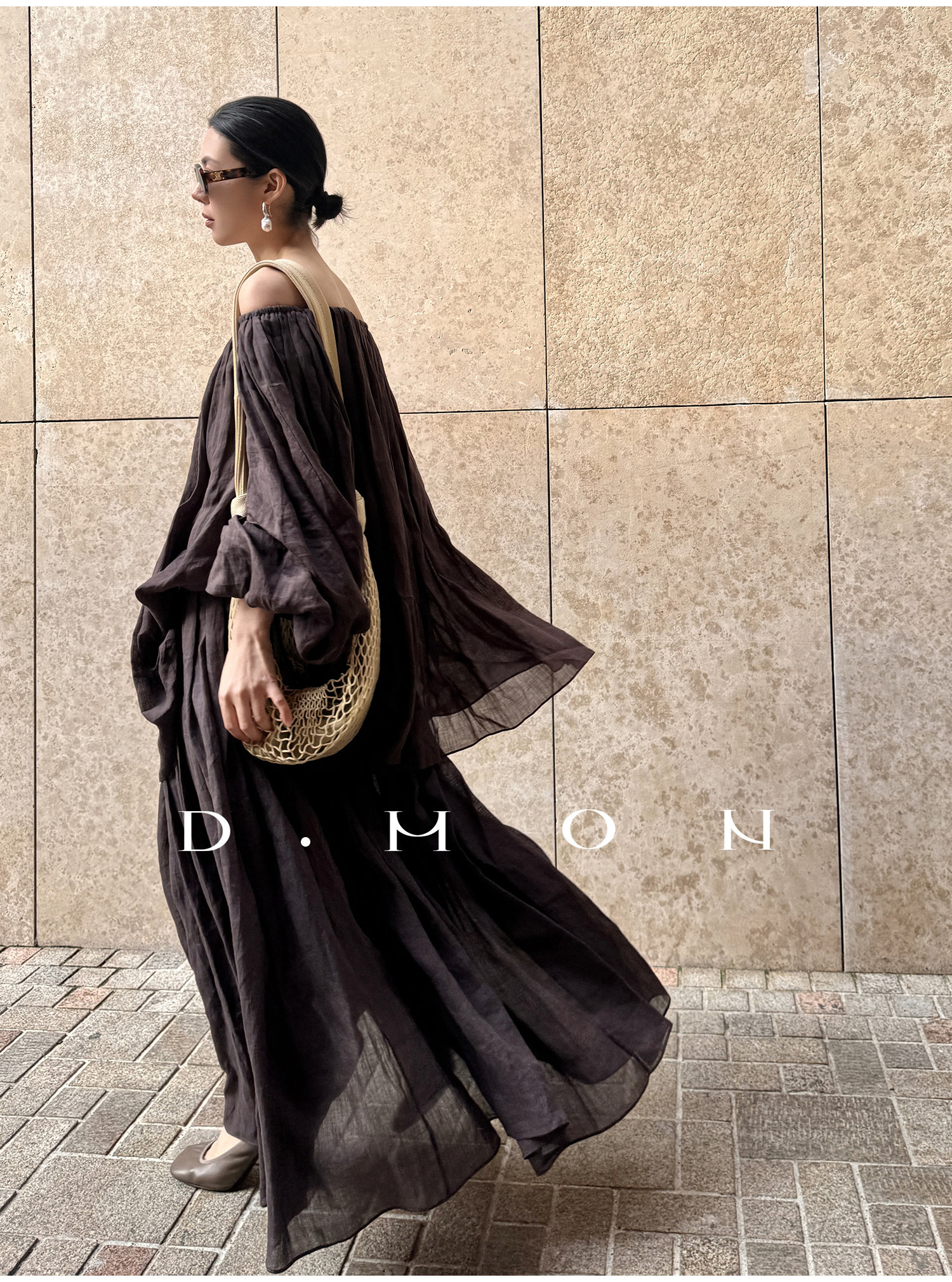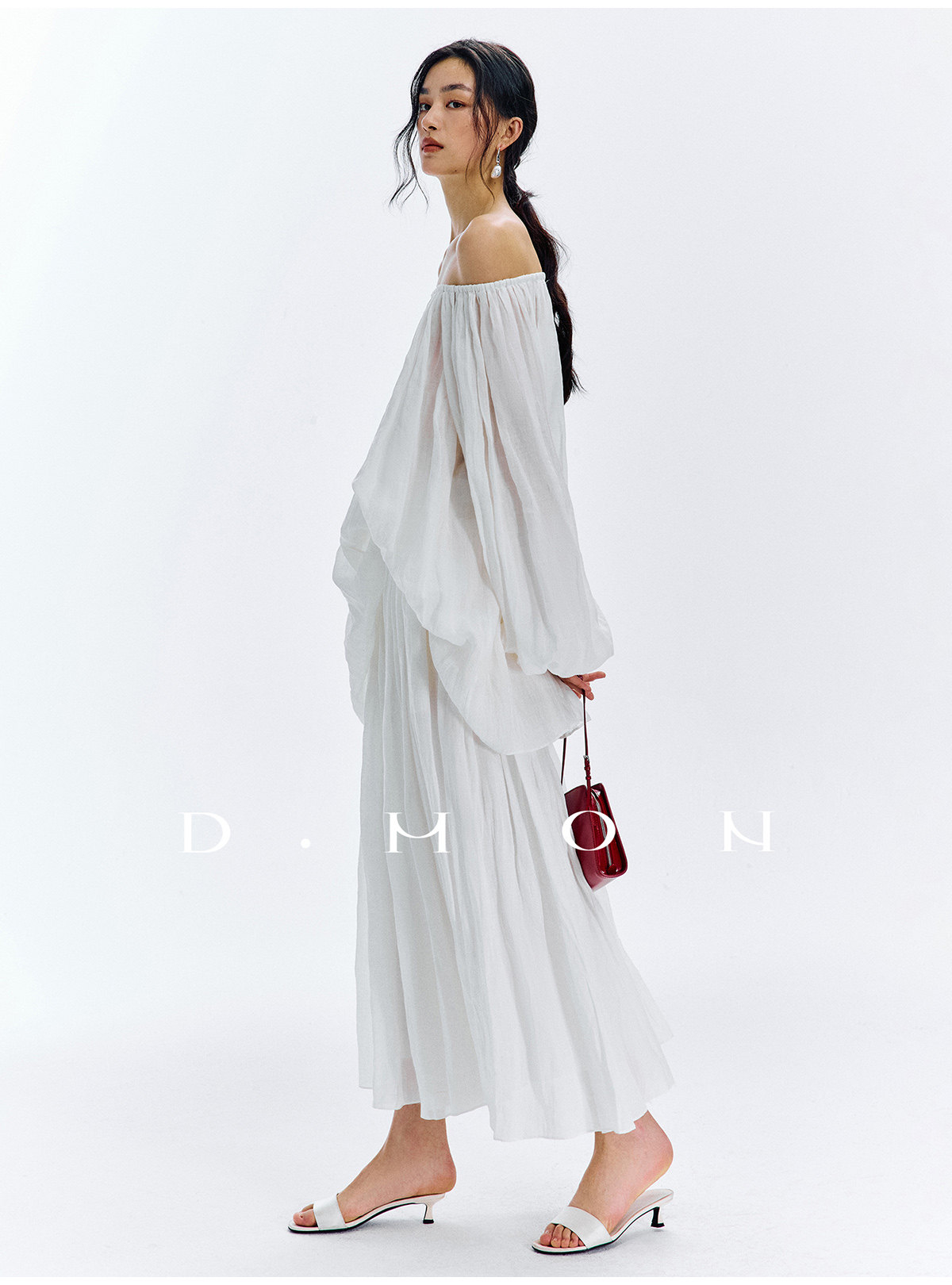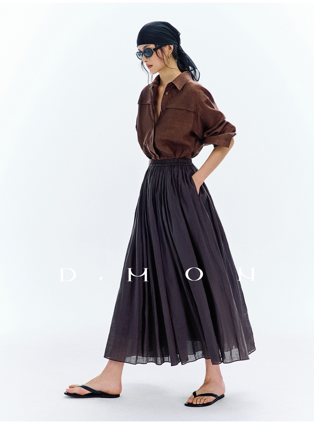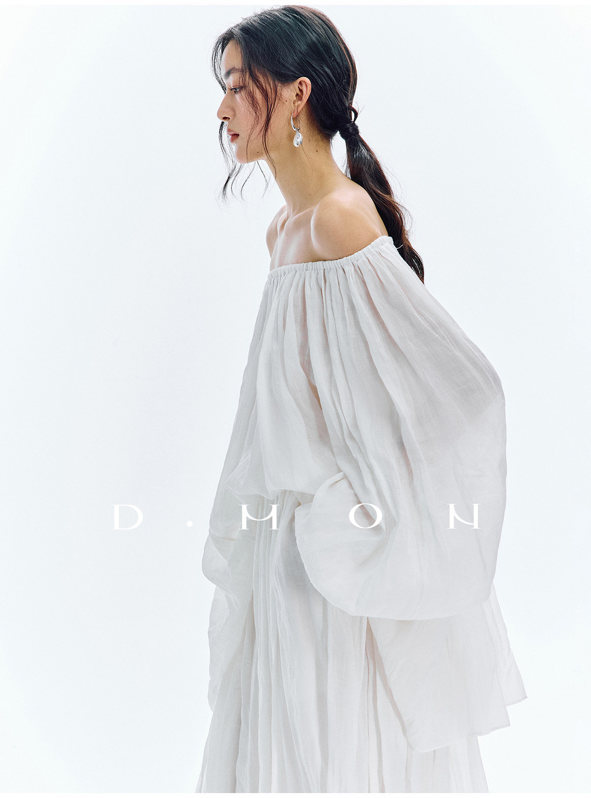 Dmon|Exclusive Custom-Spun Natural Ramie Light Holiday-Style Romantic Ruched Slimming Elegant Set