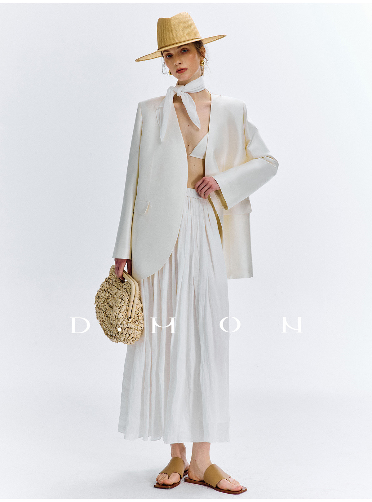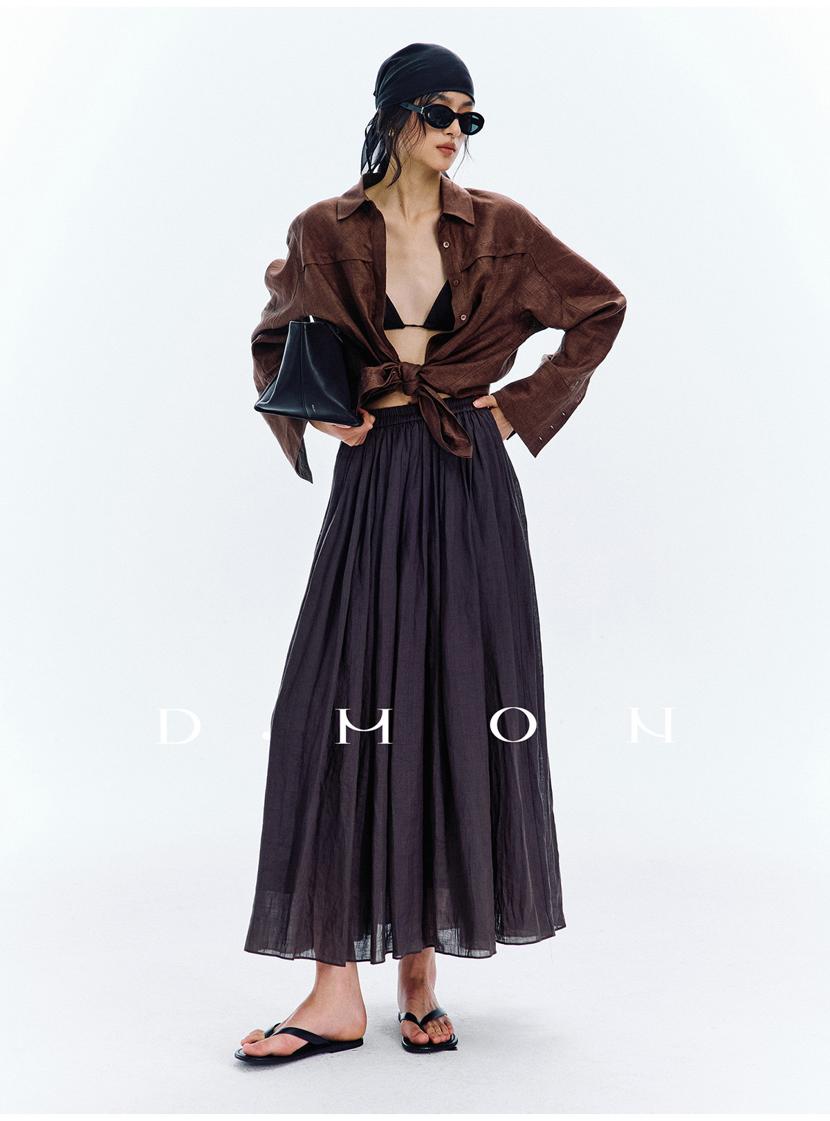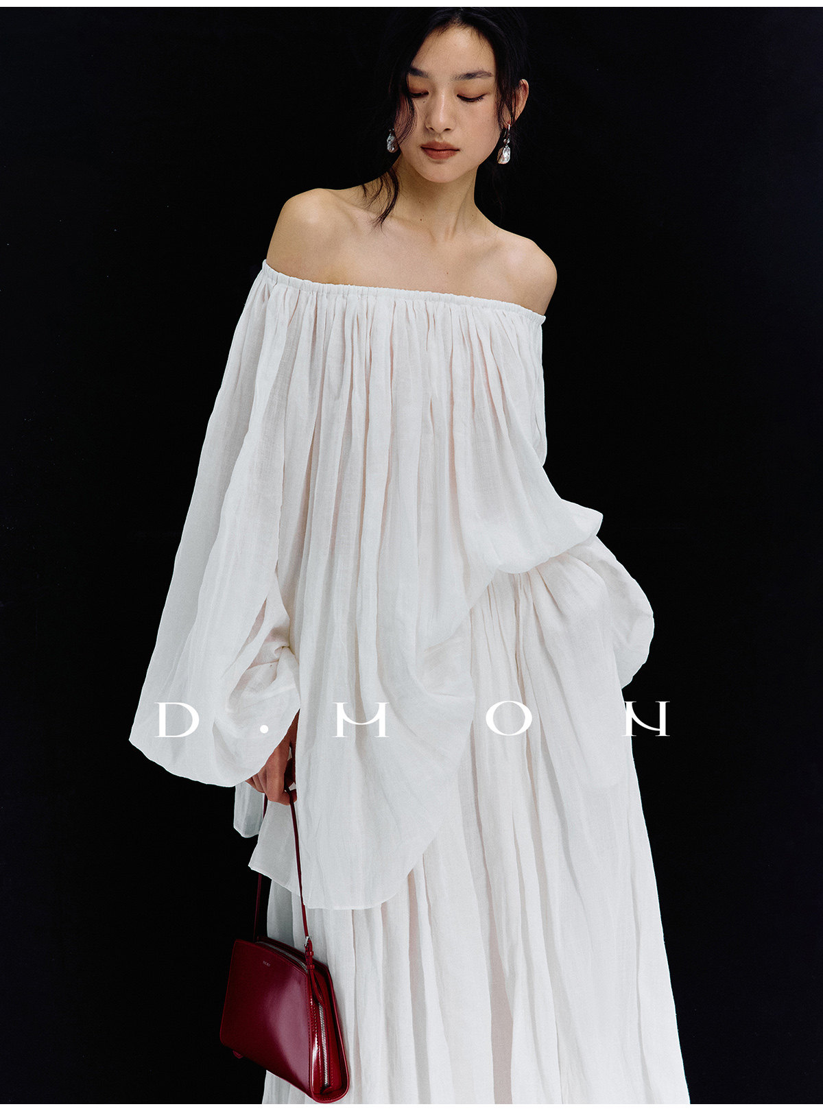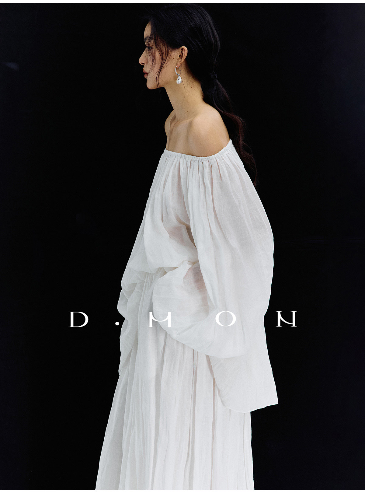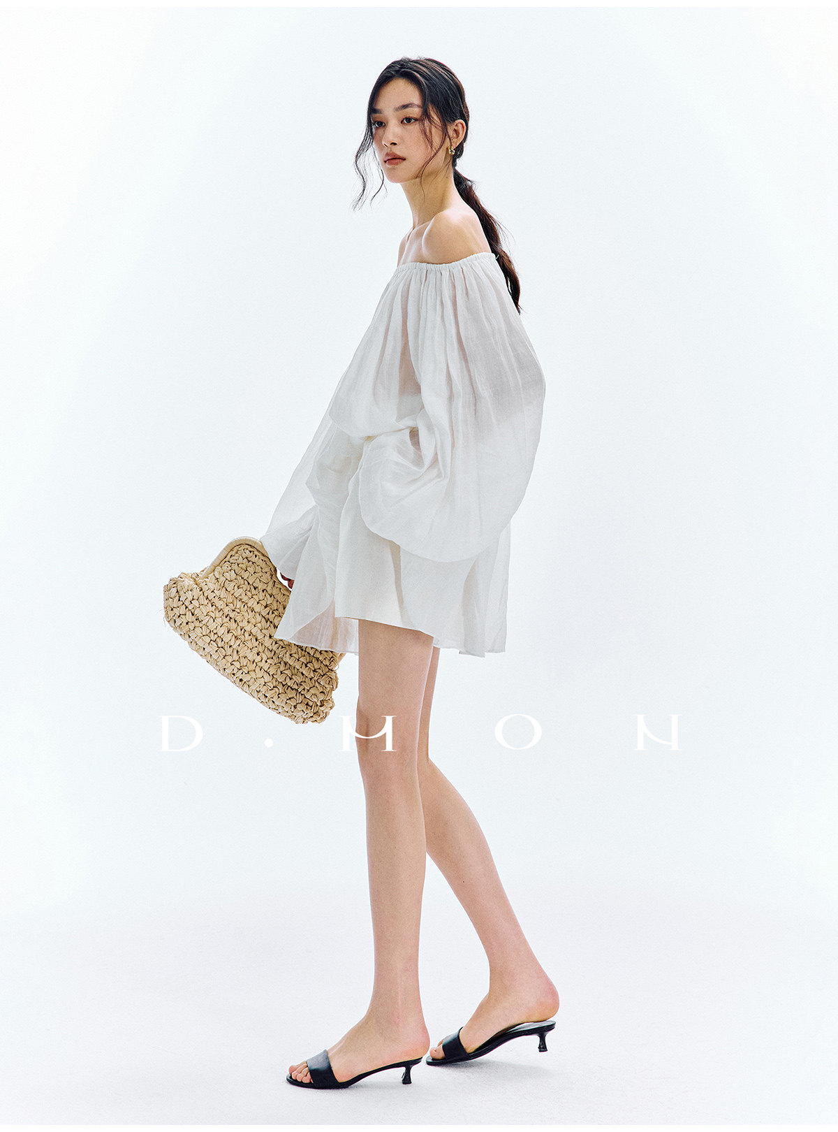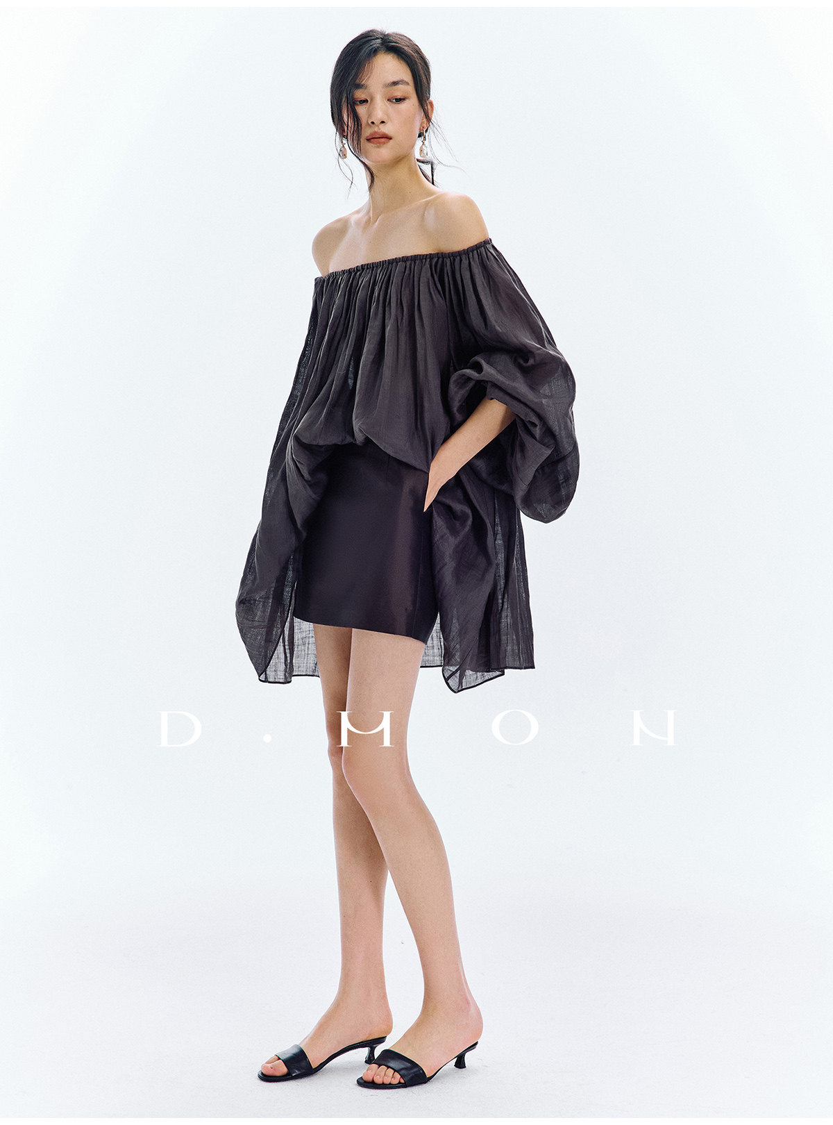 Dmon|Exclusive Custom-Spun Natural Ramie Light Holiday-Style Romantic Ruched Slimming Elegant Set