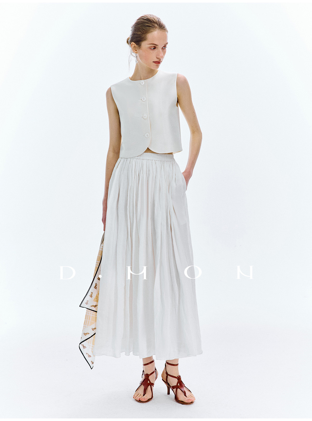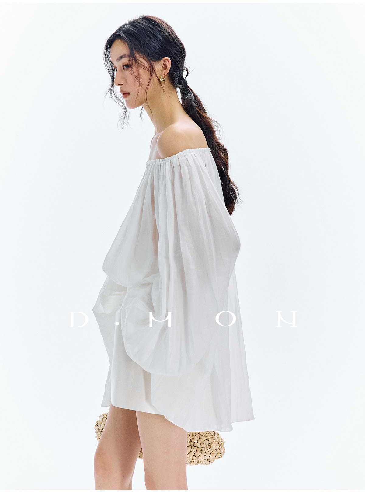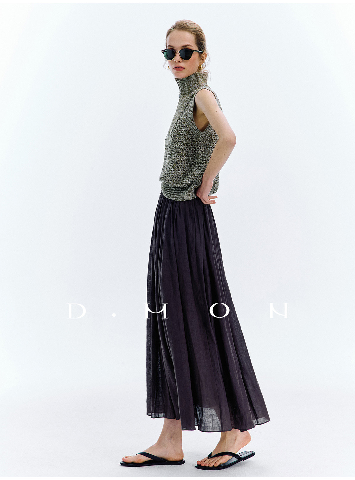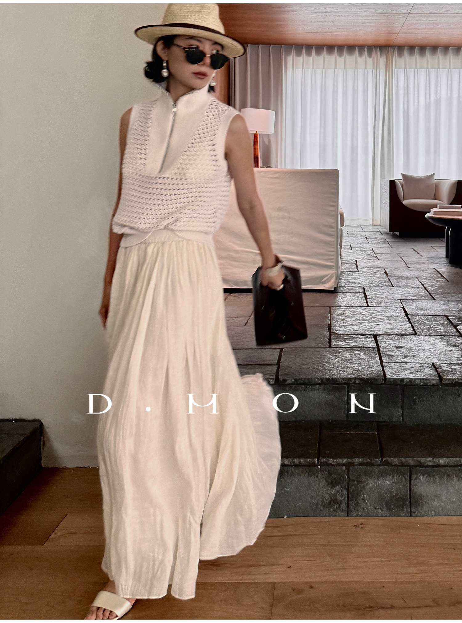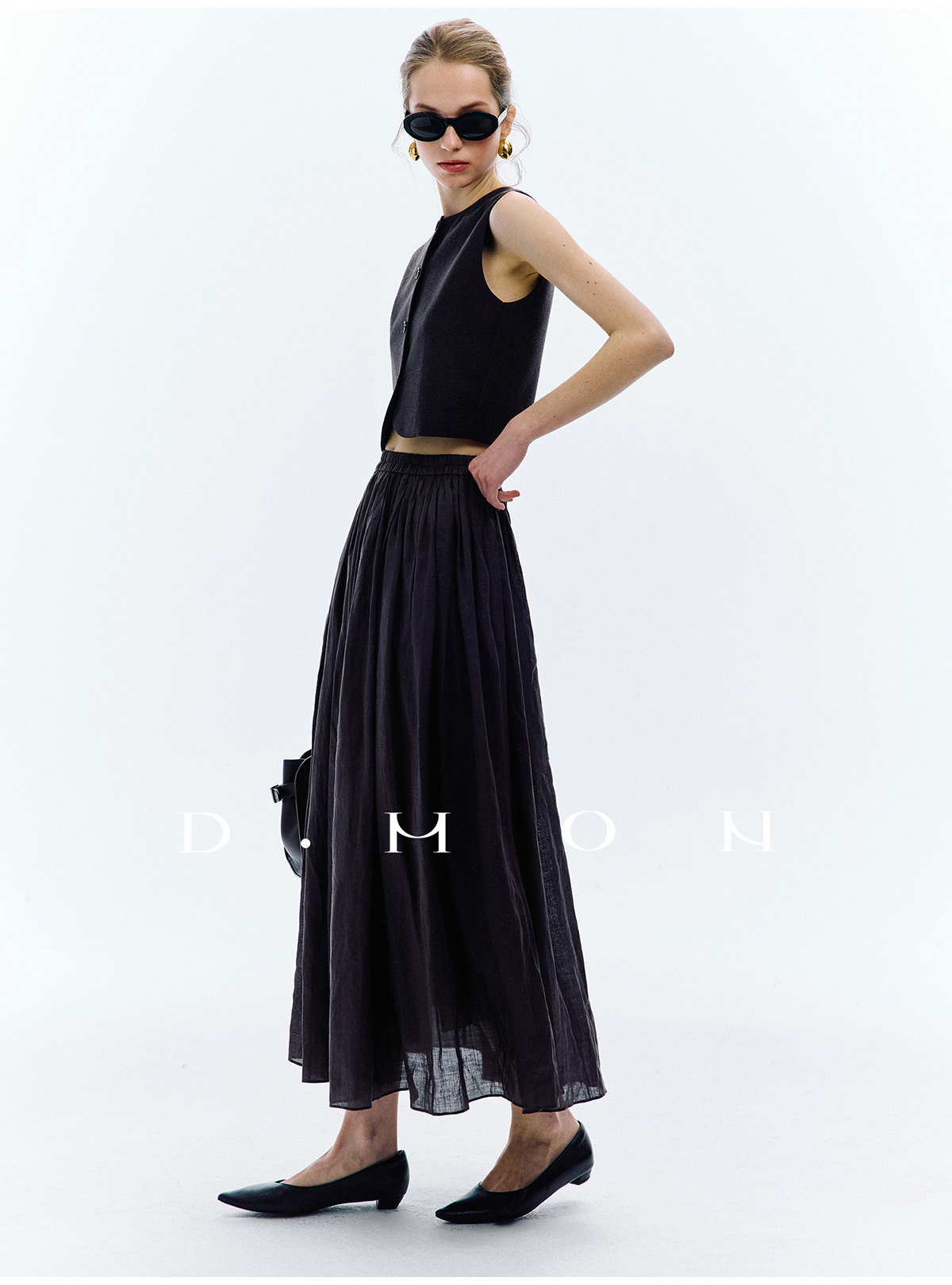 Dmon|Exclusive Custom-Spun Natural Ramie Light Holiday-Style Romantic Ruched Slimming Elegant Set