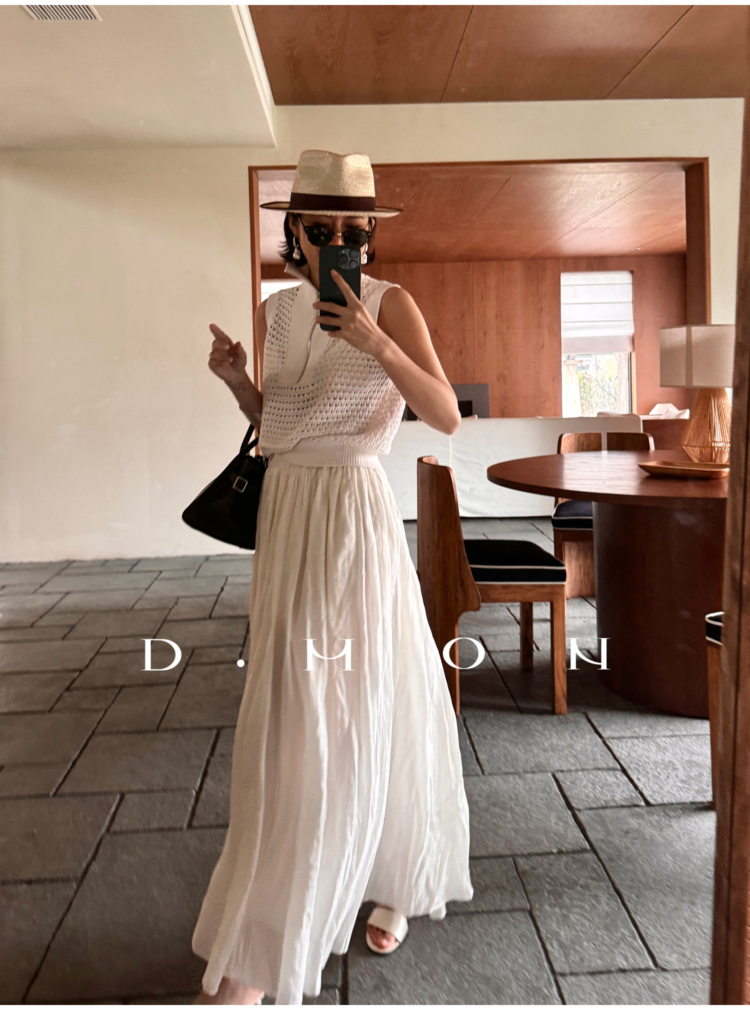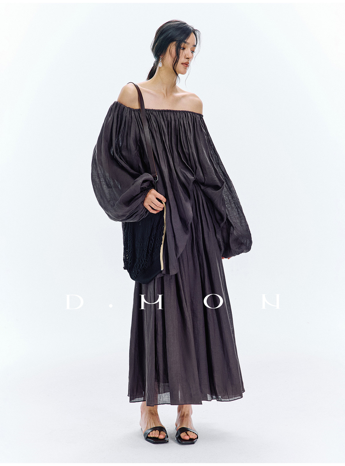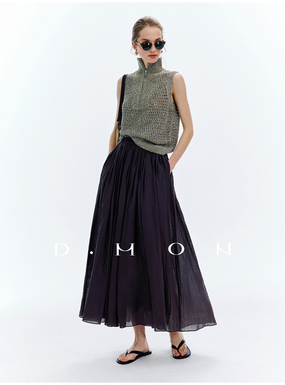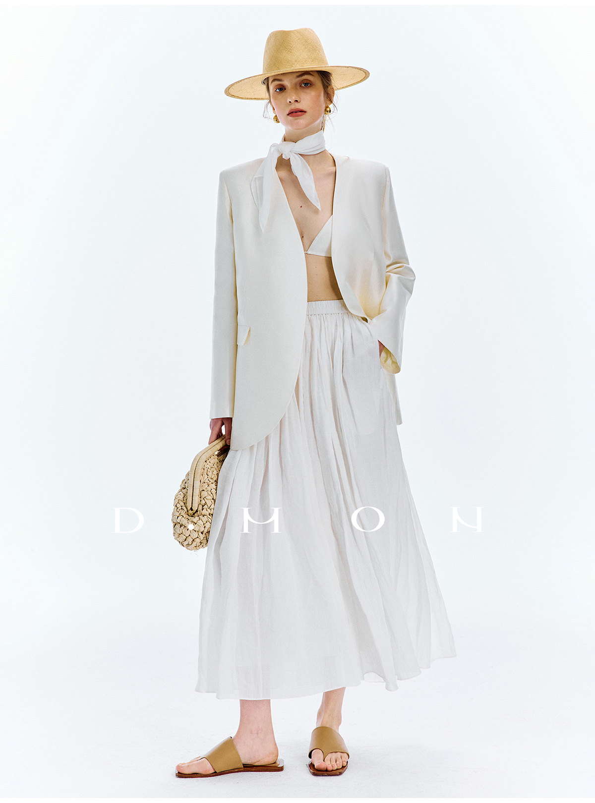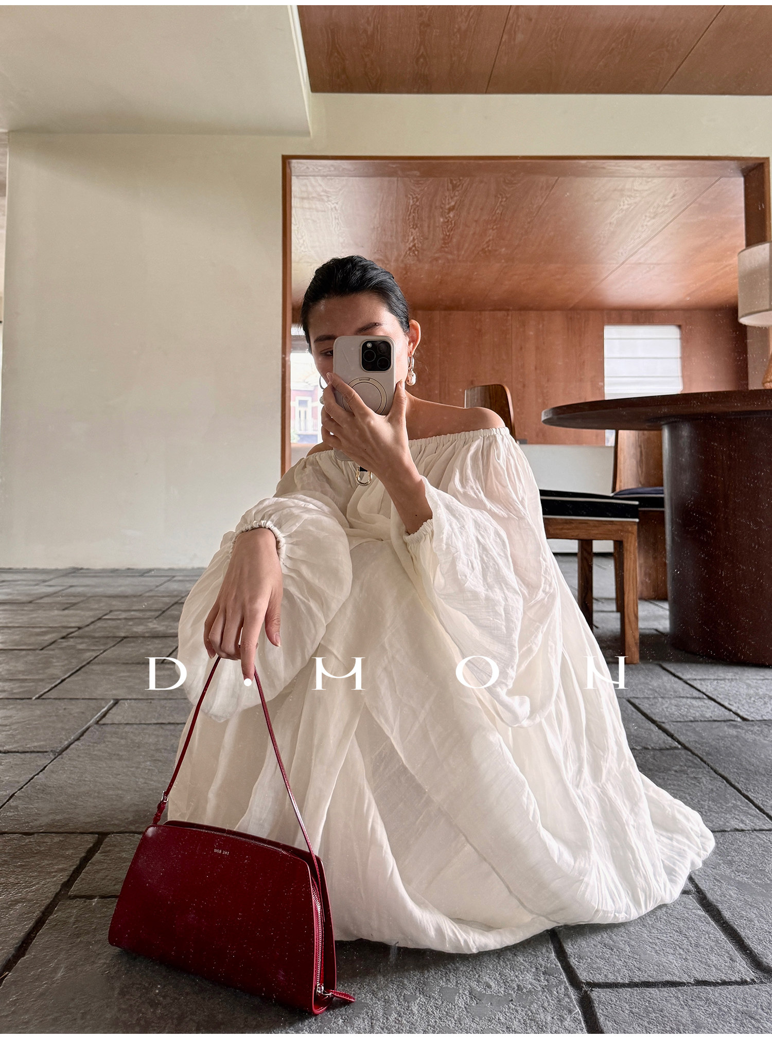Dmon|Exclusive Custom-Spun Natural Ramie Light Holiday-Style Romantic Ruched Slimming Elegant Set
