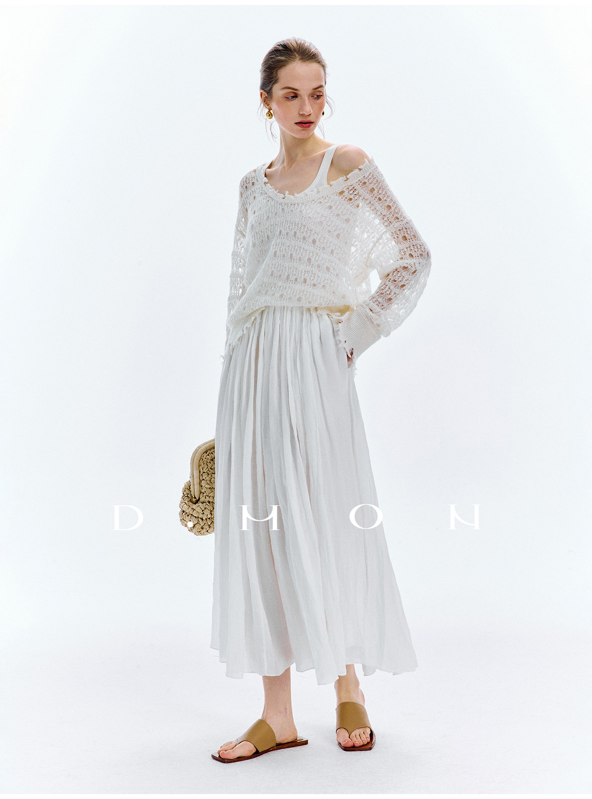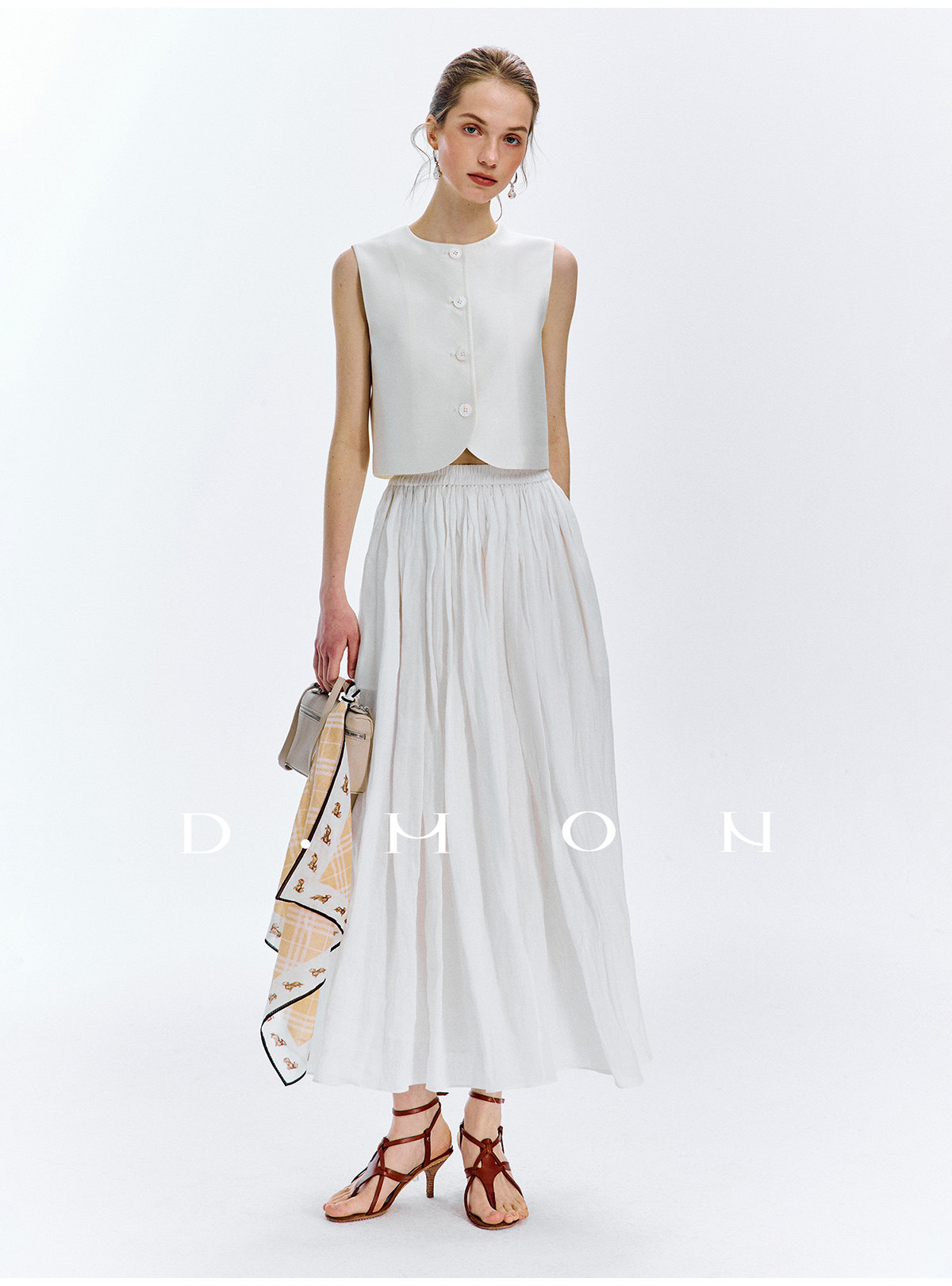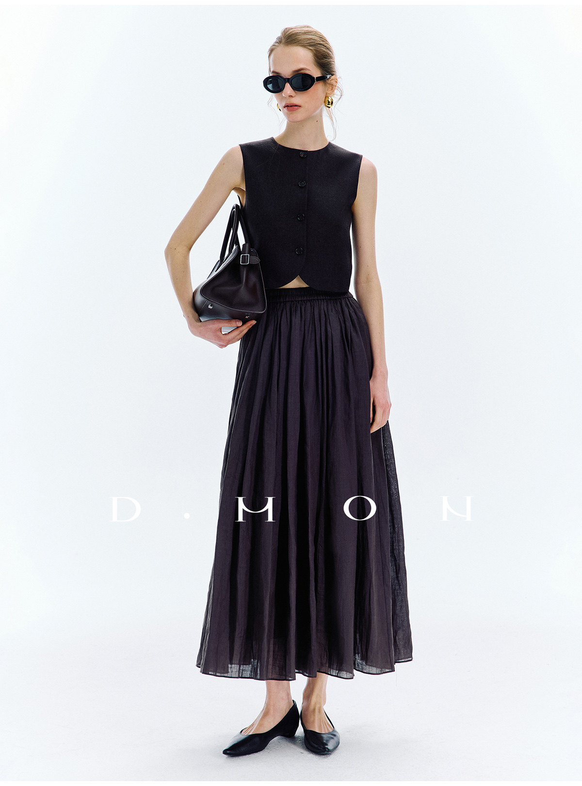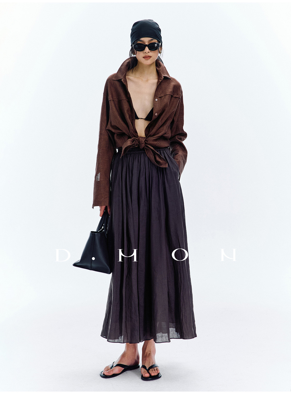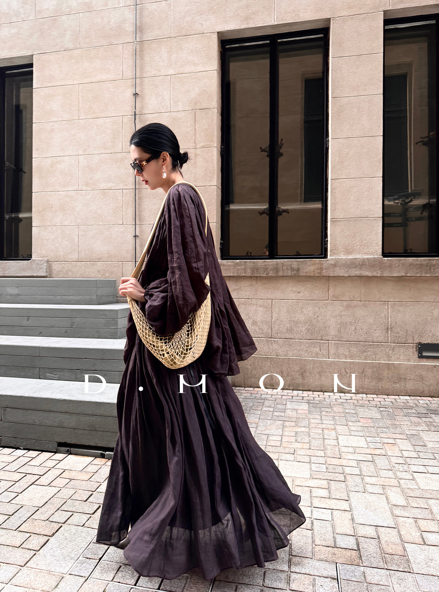 Dmon|Exclusive Custom-Spun Natural Ramie Light Holiday-Style Romantic Ruched Slimming Elegant Set