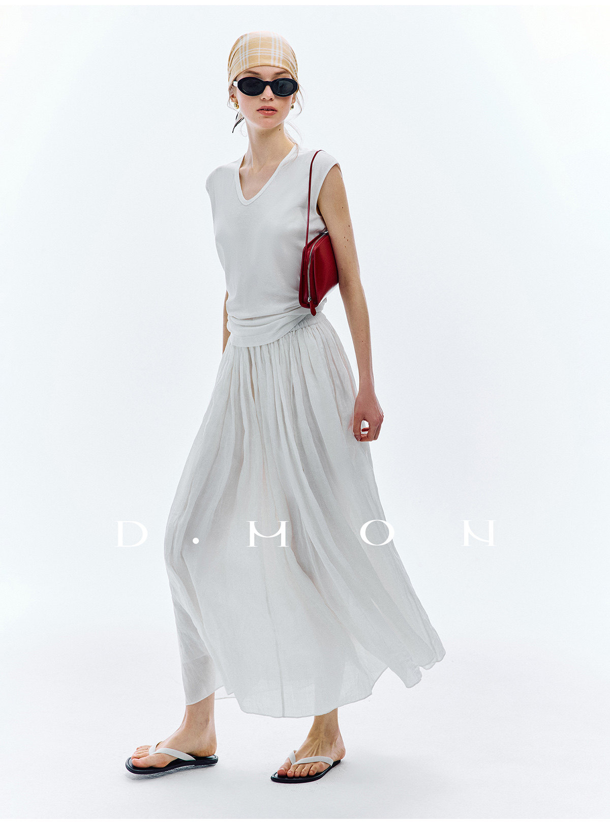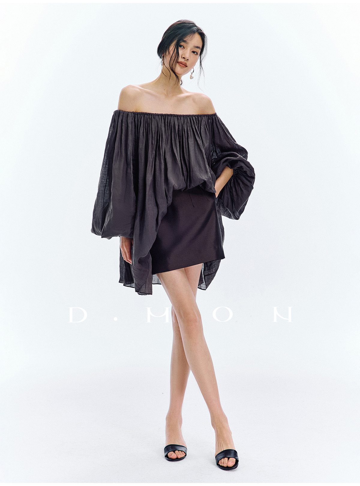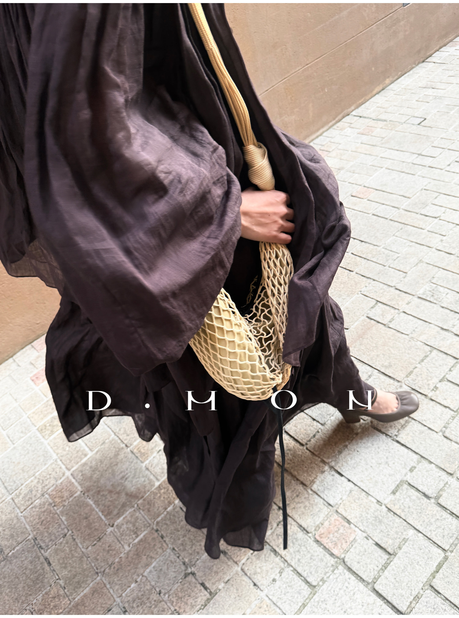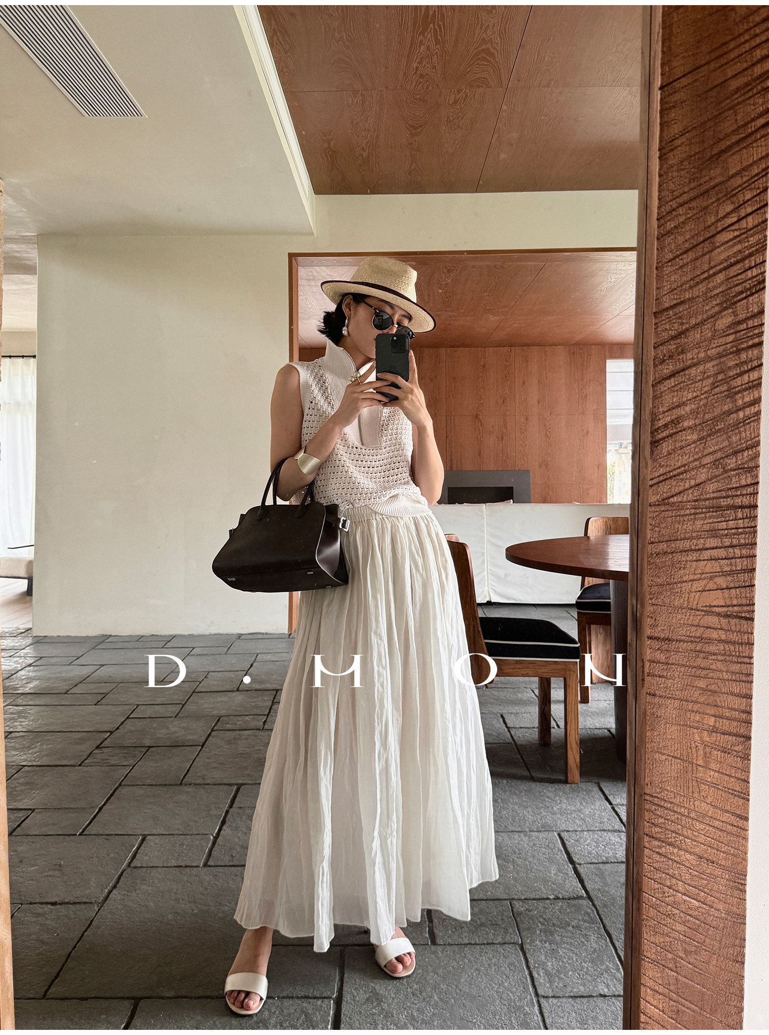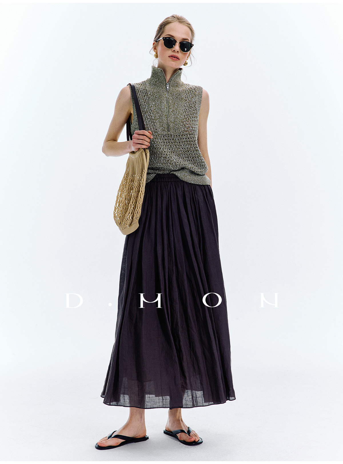 Dmon|Exclusive Custom-Spun Natural Ramie Light Holiday-Style Romantic Ruched Slimming Elegant Set