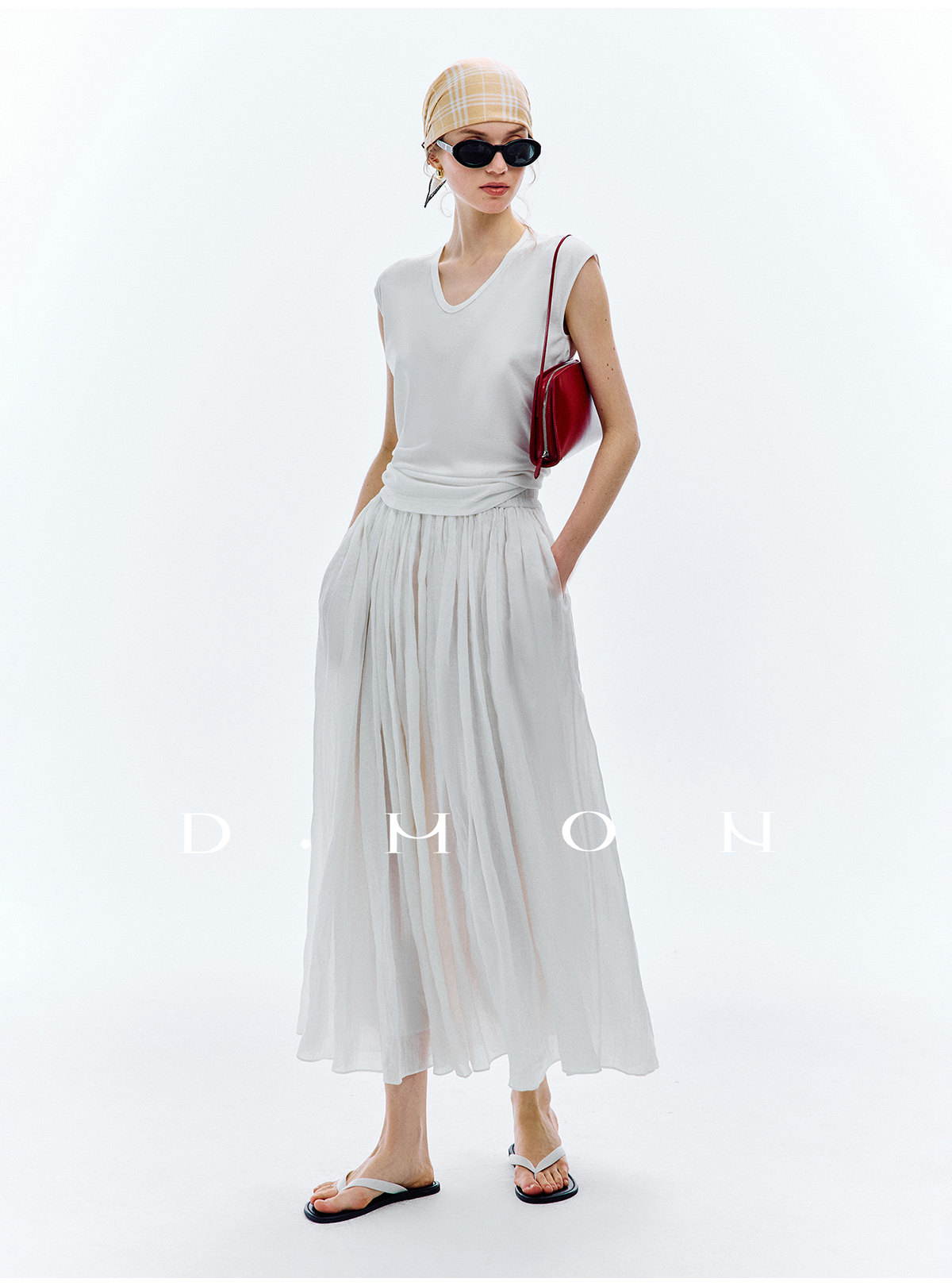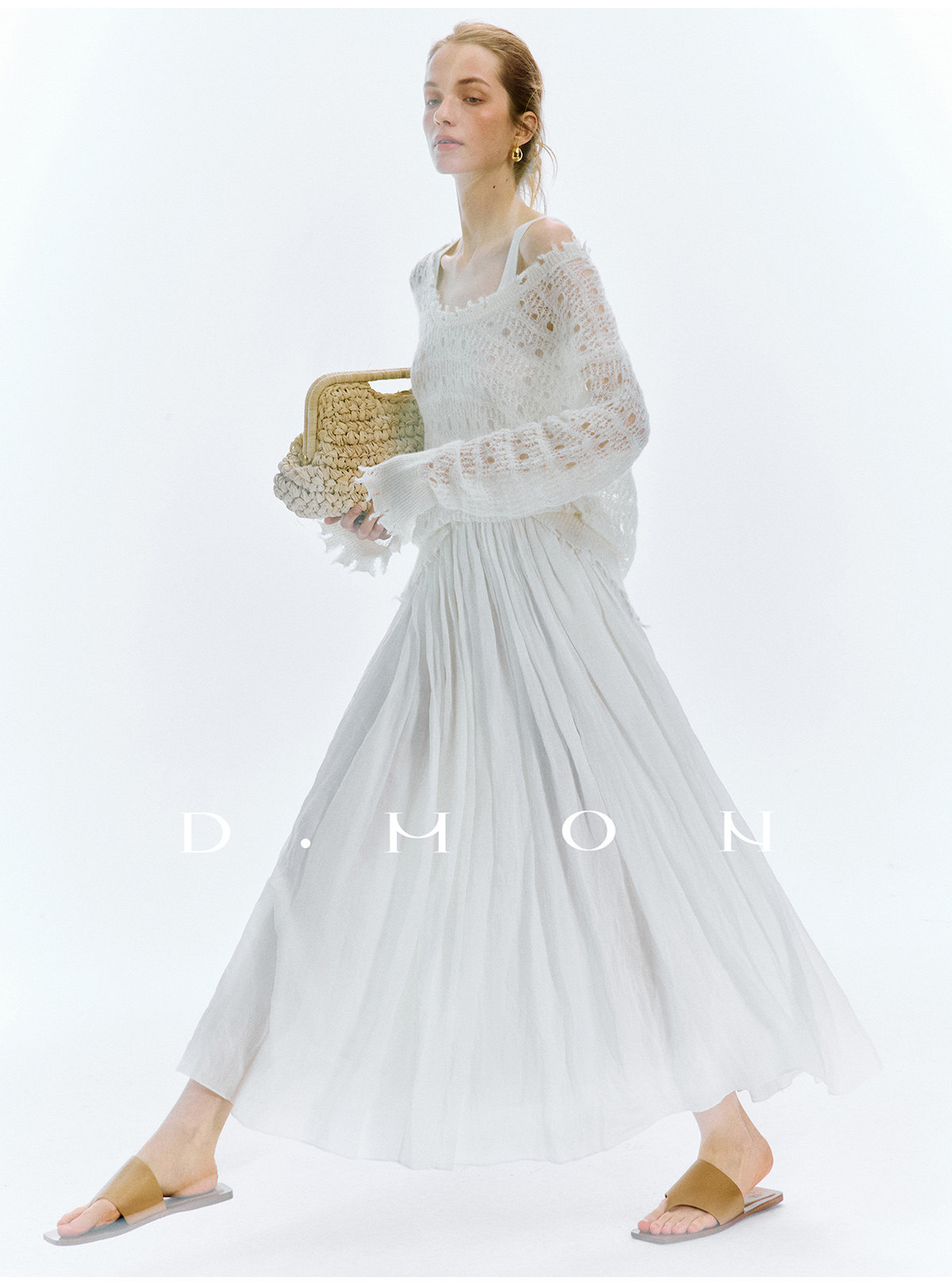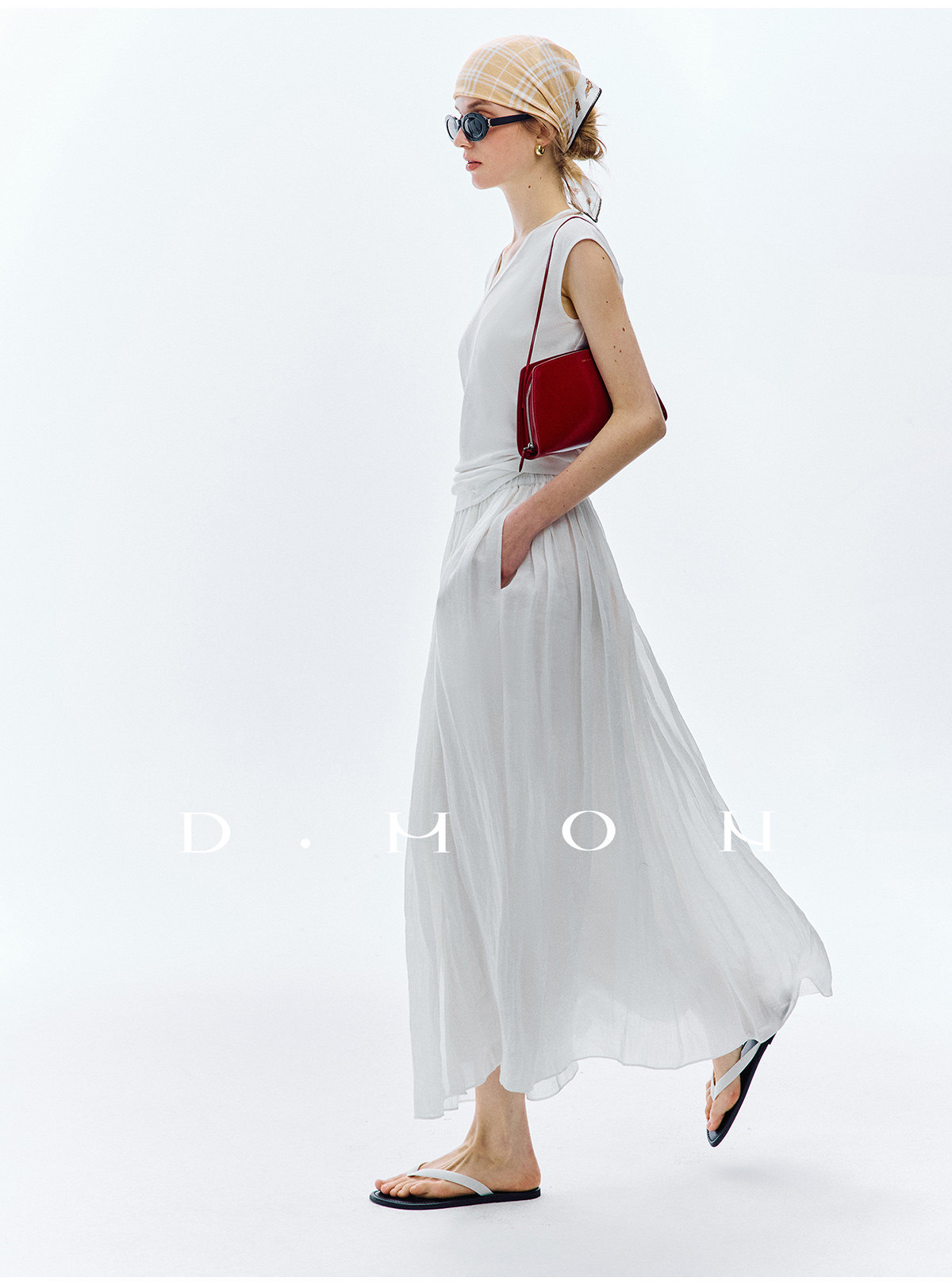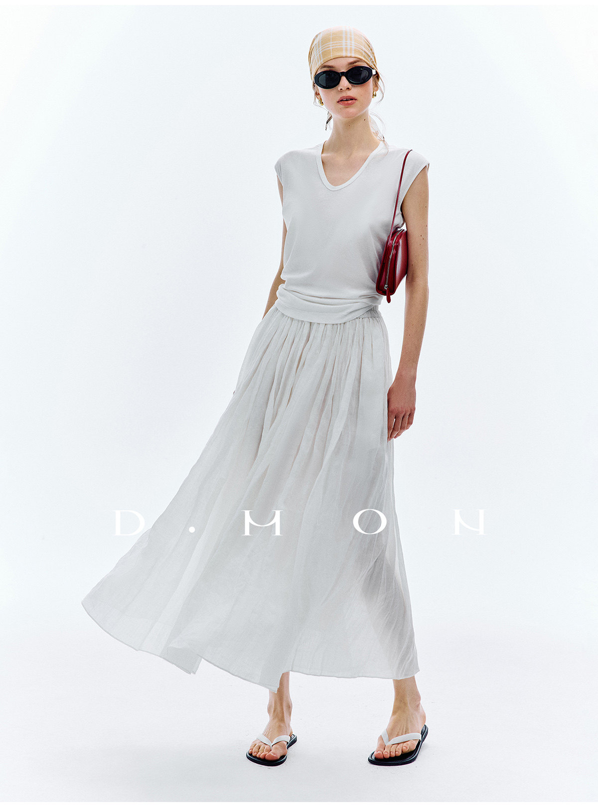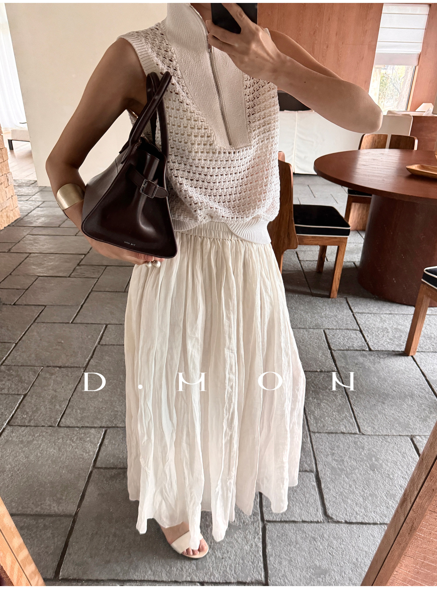 Dmon|Exclusive Custom-Spun Natural Ramie Light Holiday-Style Romantic Ruched Slimming Elegant Set