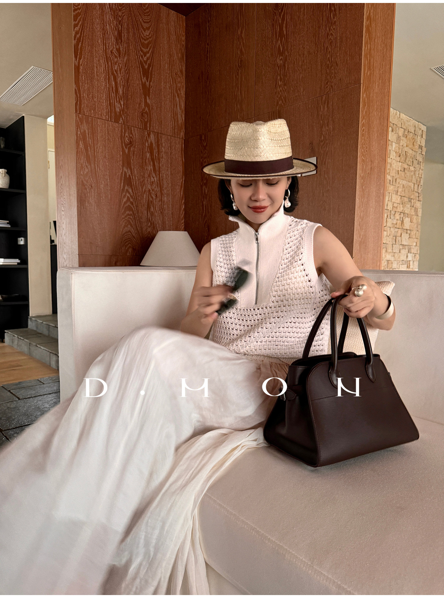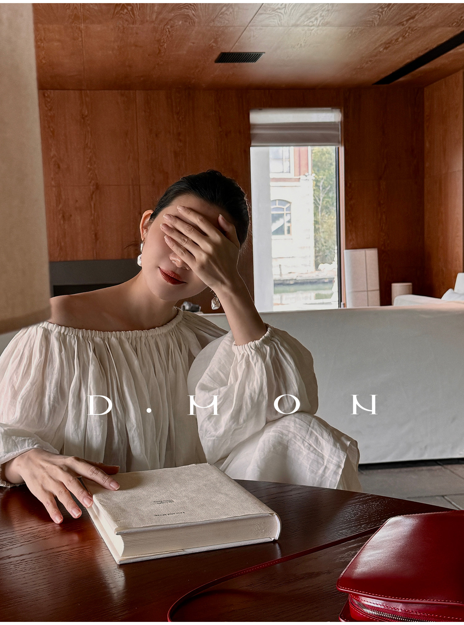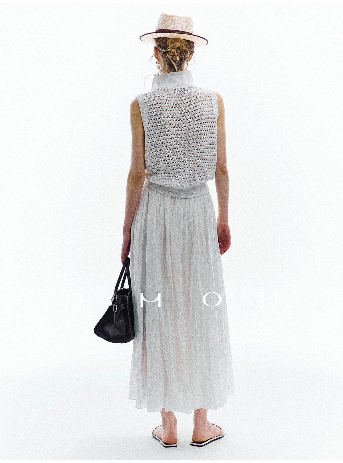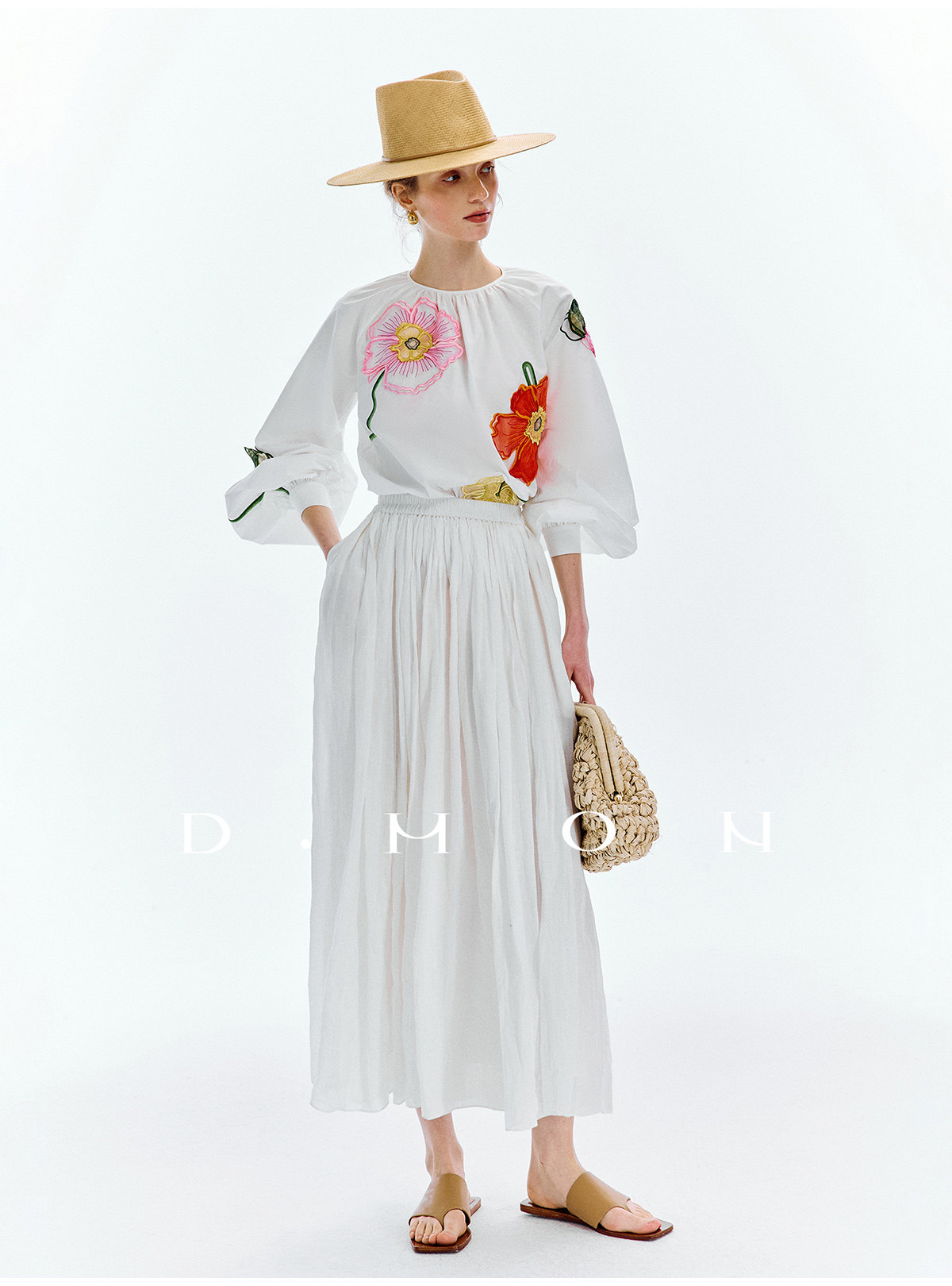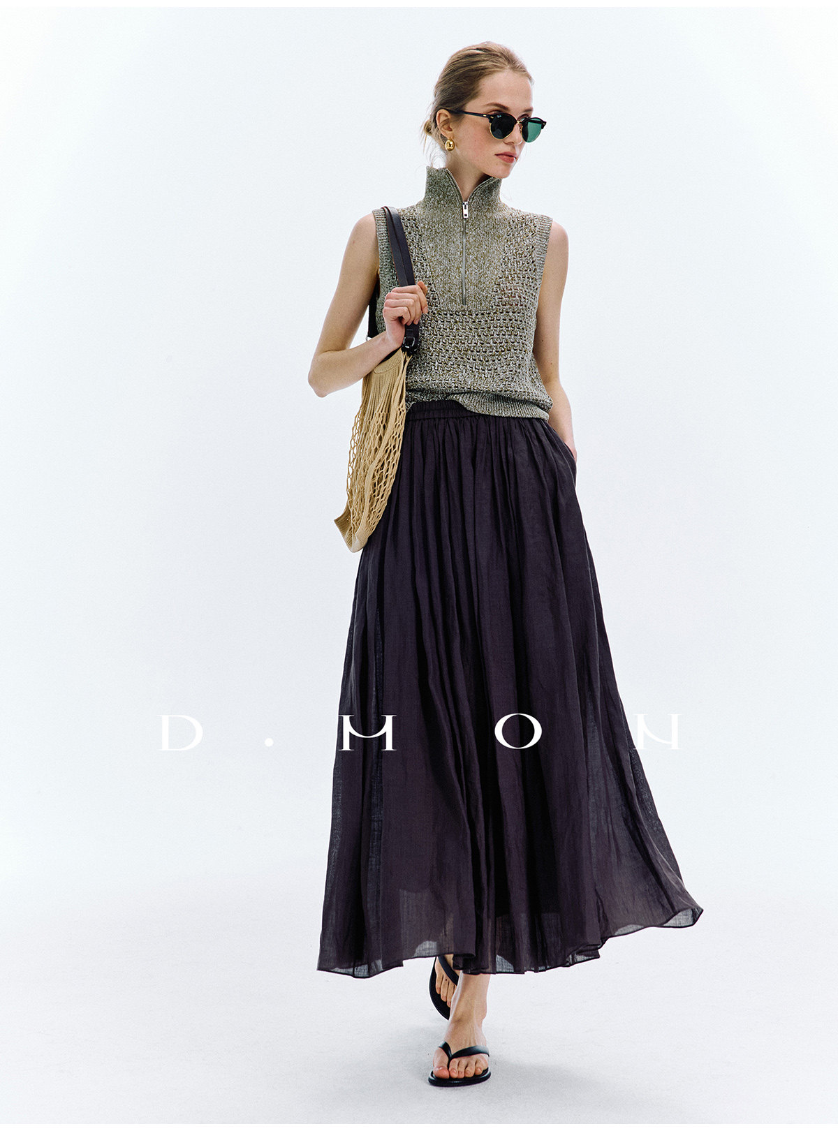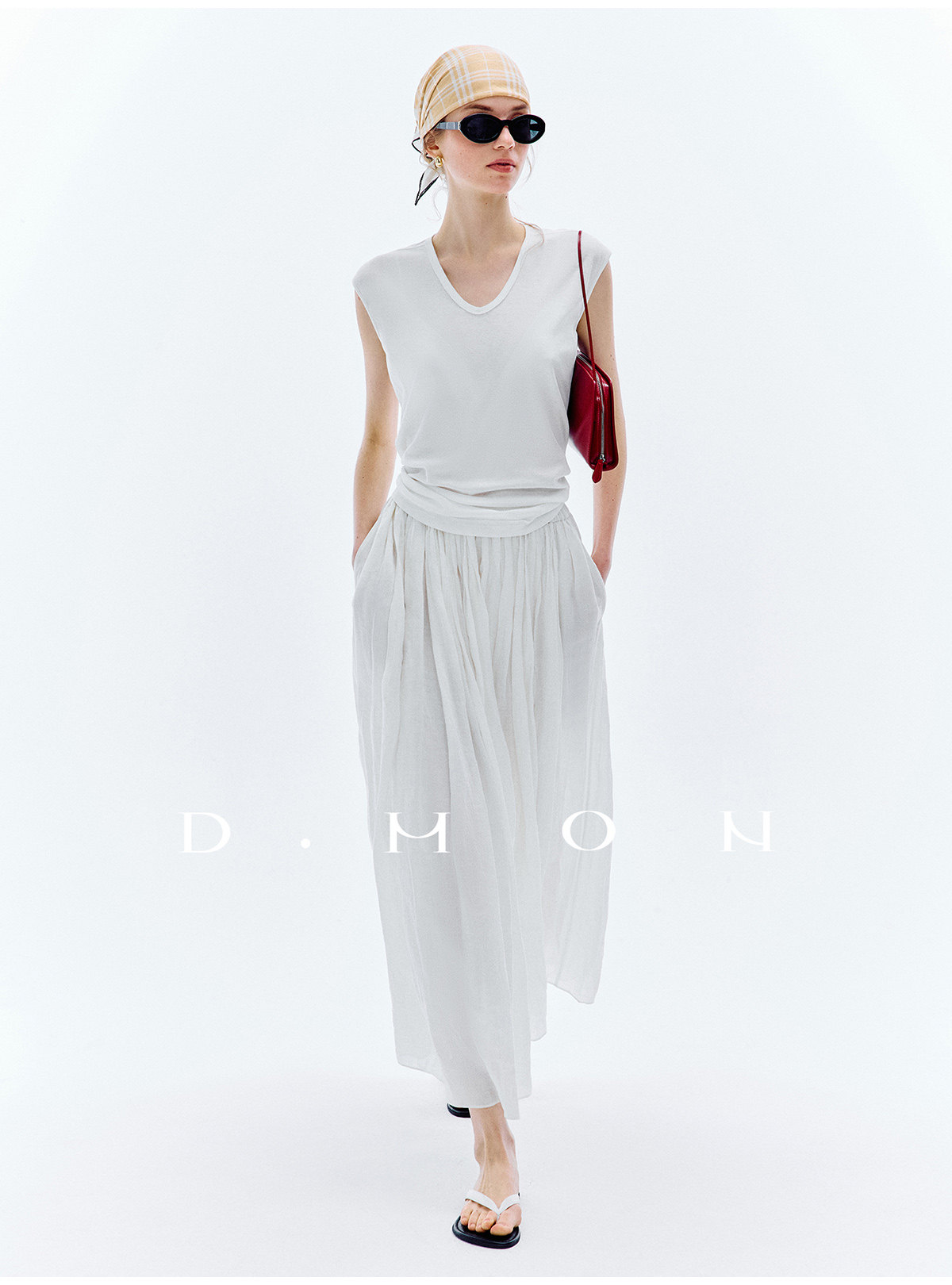 Dmon|Exclusive Custom-Spun Natural Ramie Light Holiday-Style Romantic Ruched Slimming Elegant Set
