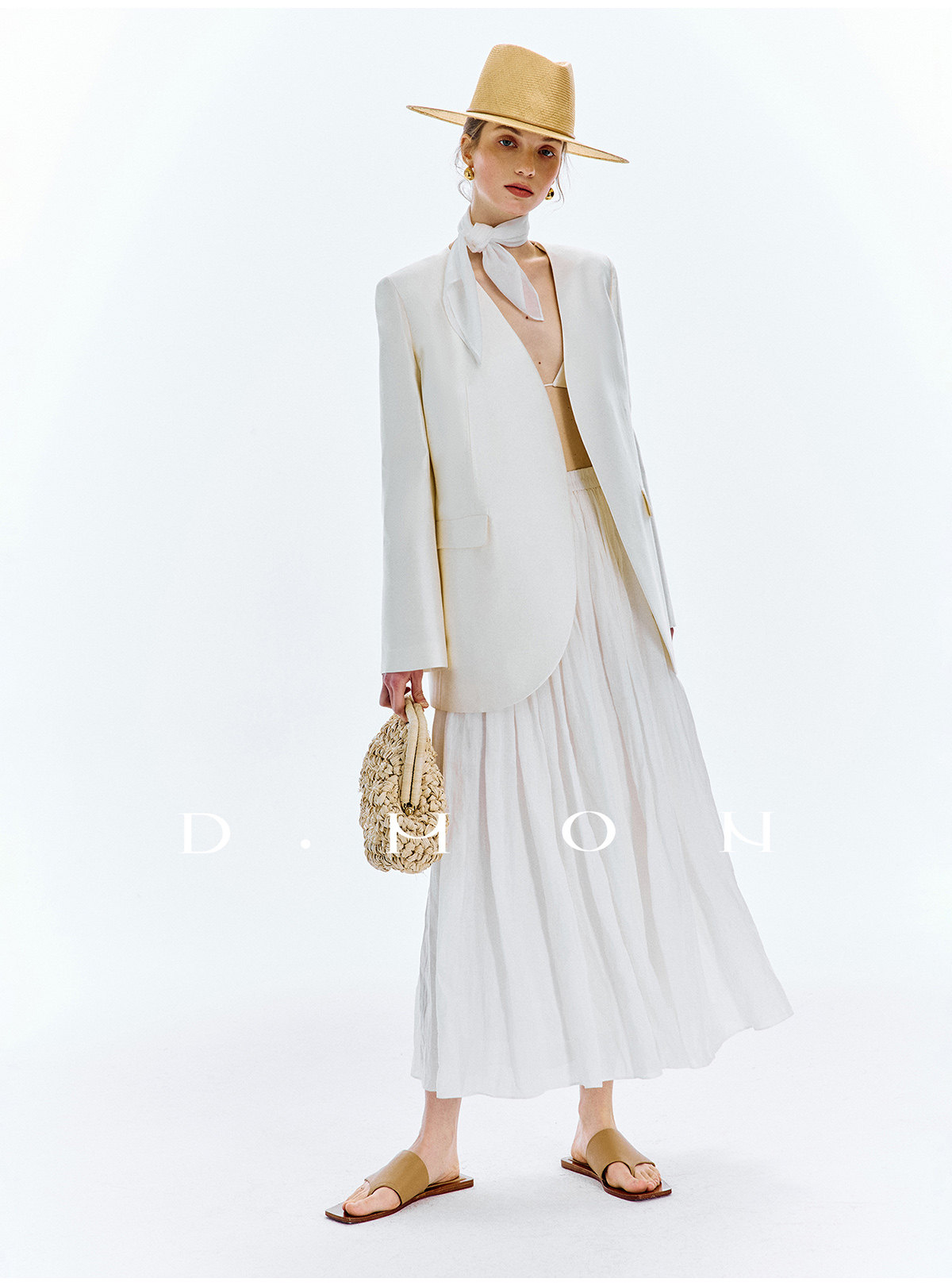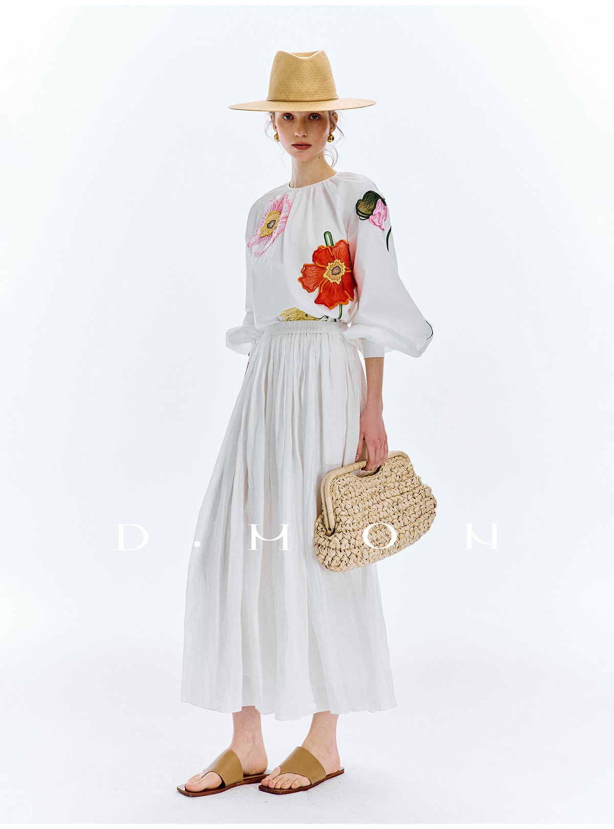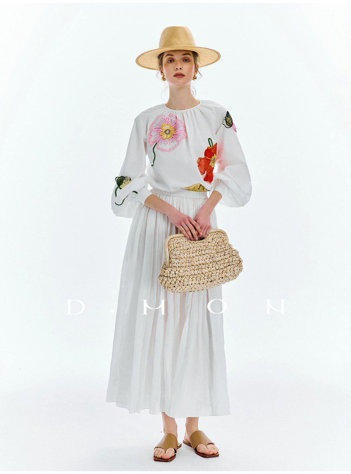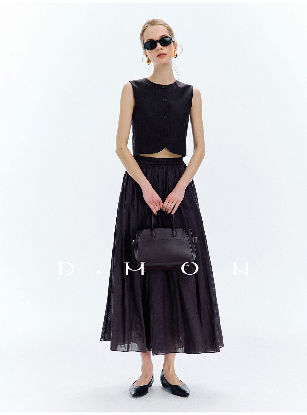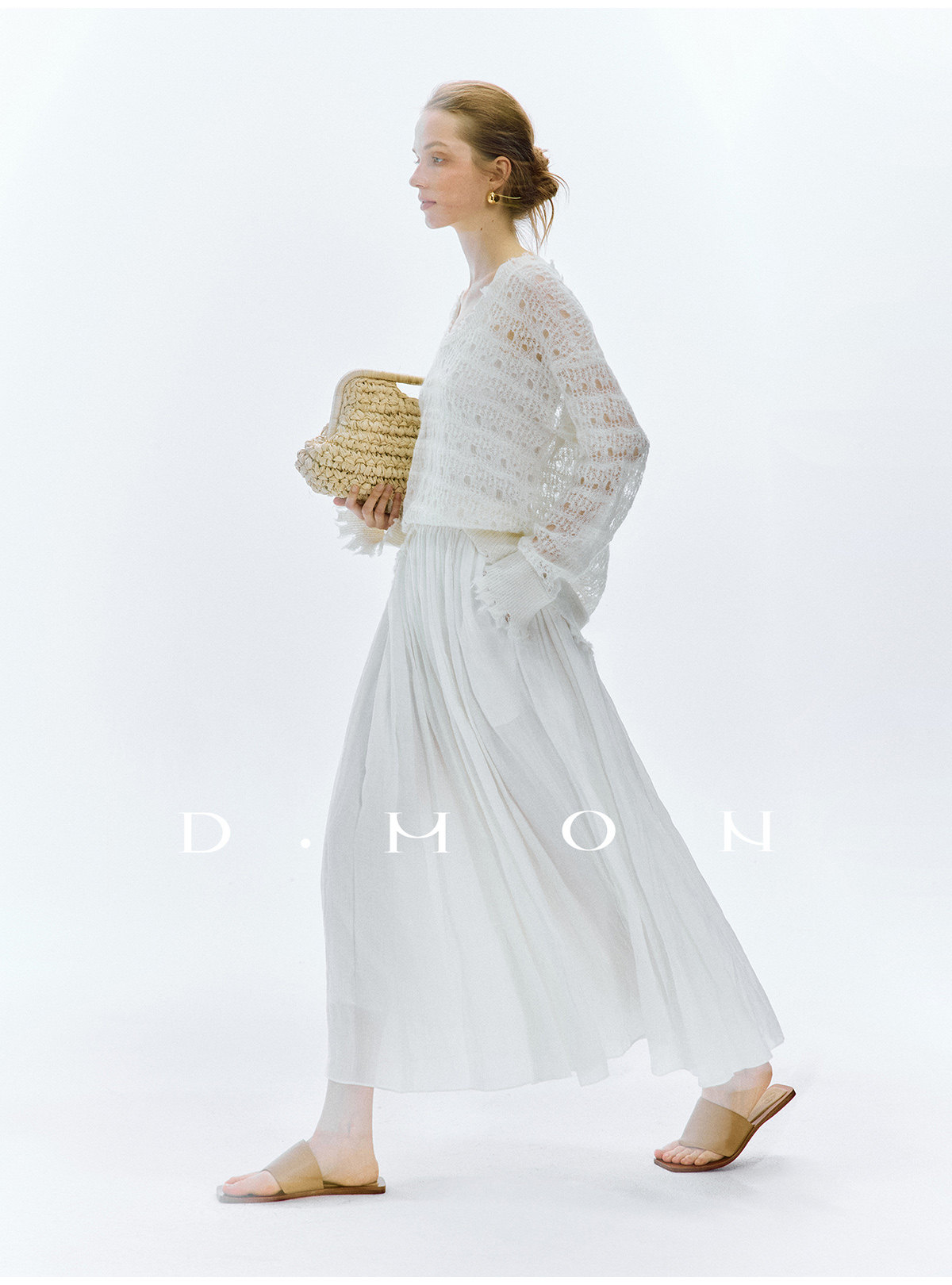 Dmon|Exclusive Custom-Spun Natural Ramie Light Holiday-Style Romantic Ruched Slimming Elegant Set