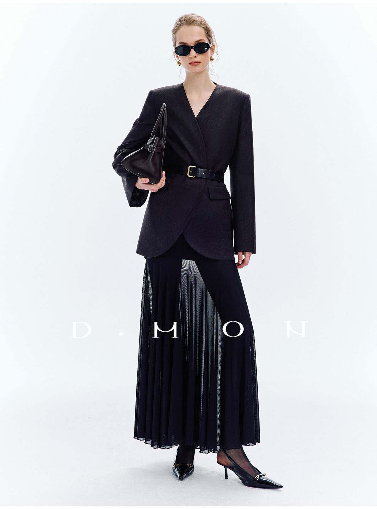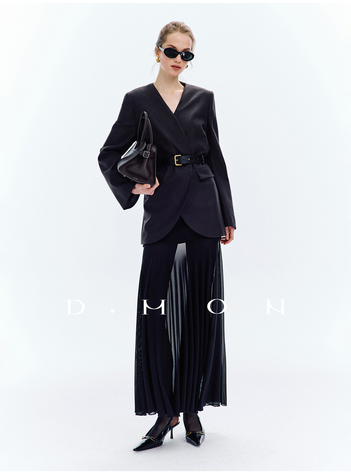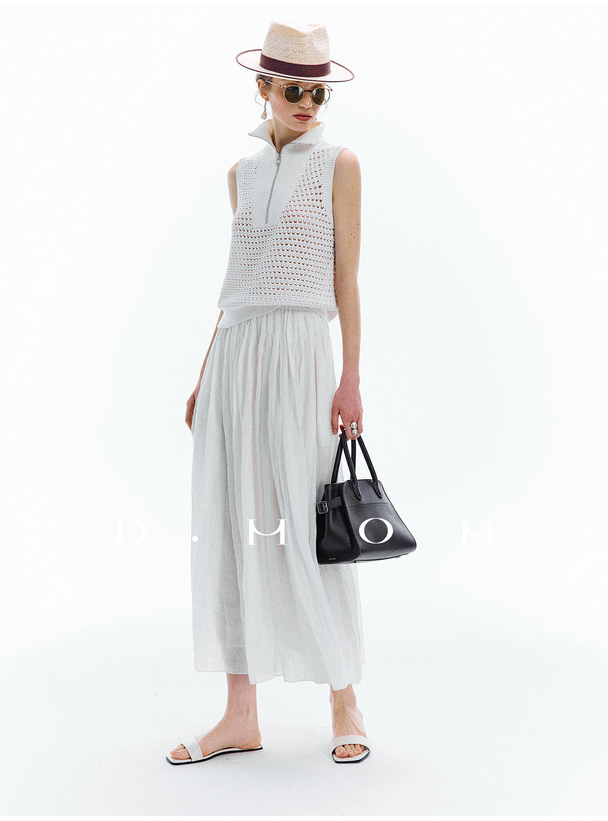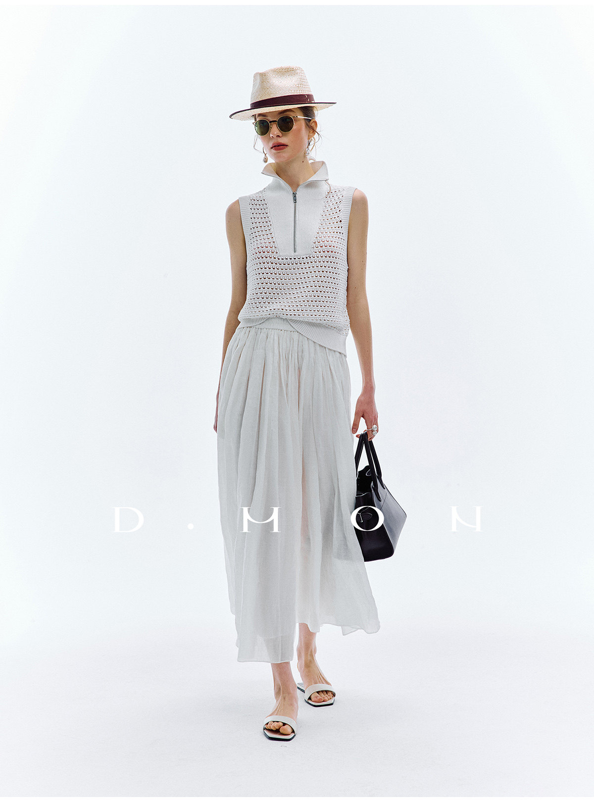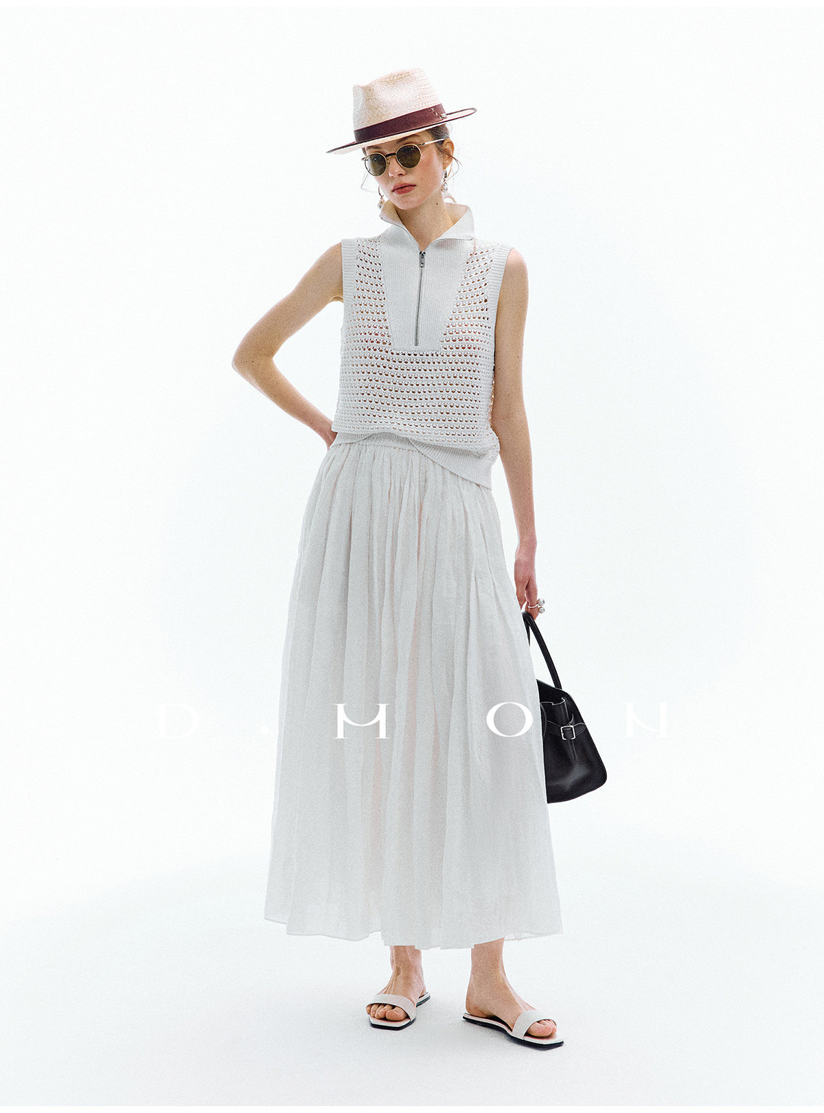 Dmon|Exclusive Custom-Spun Natural Ramie Light Holiday-Style Romantic Ruched Slimming Elegant Set