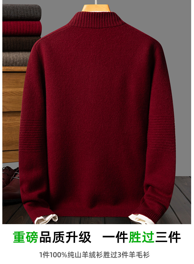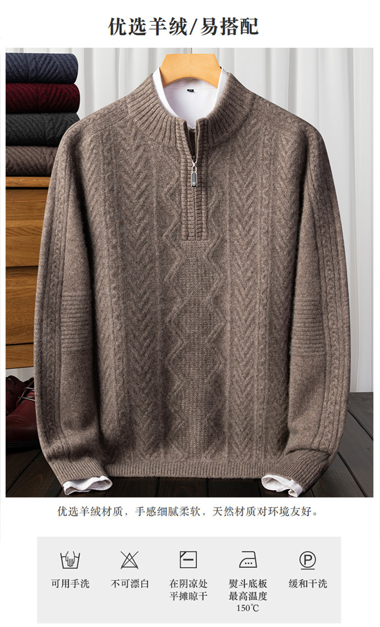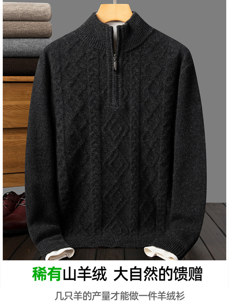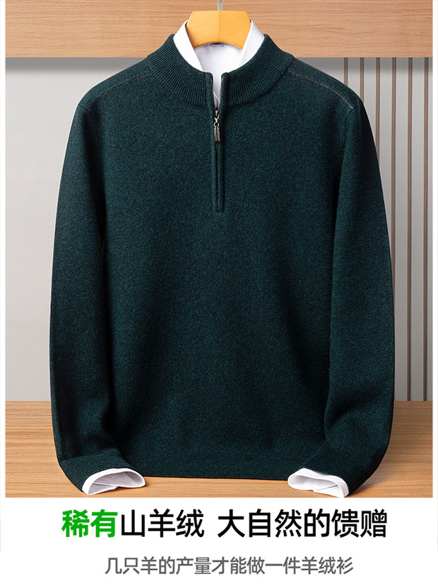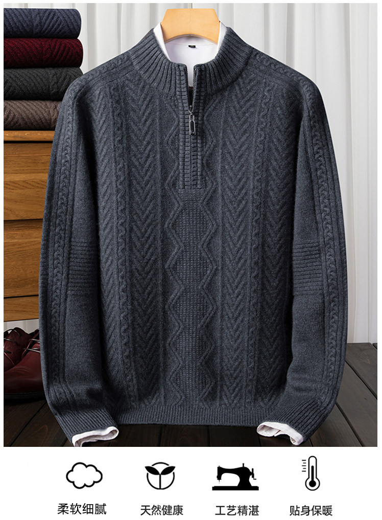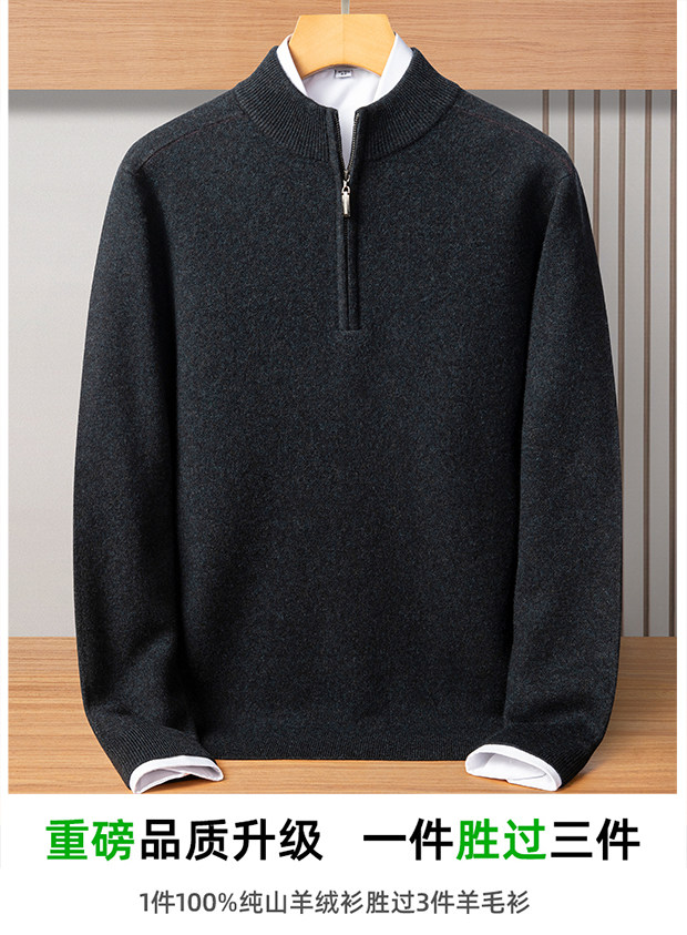 100% Pure Cashmere Sweater for Men with Half-High Zip Collar, Pierre Cardin Middle-Aged Men's Wool Sweater, Winter Thickened Sweater