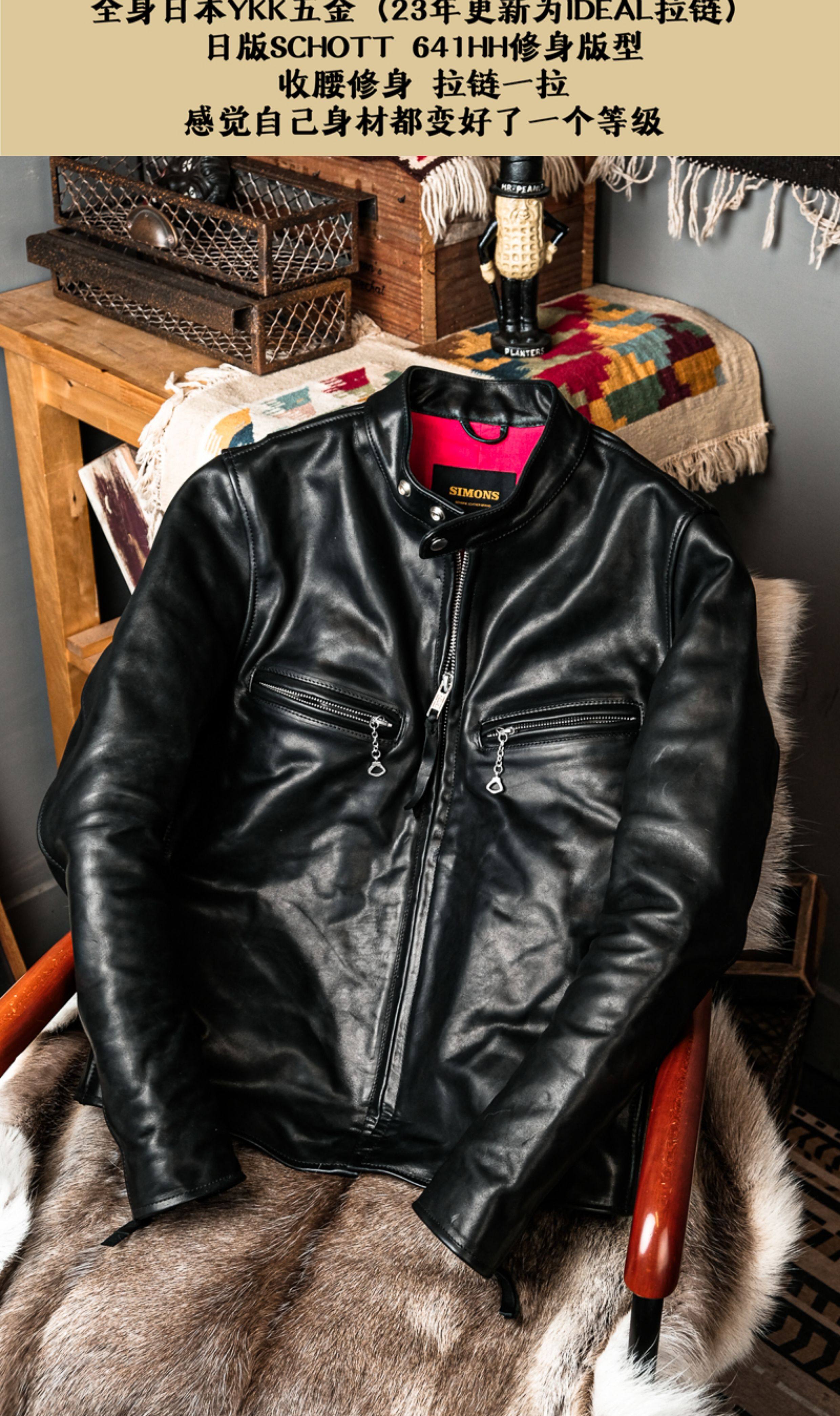 Slim-Fit Japanese Version Schott 641 Model J100 American Motorcycle First-Layer Dyed Oil-Waxed Horse Leather Jacket Genuine Leather Coat