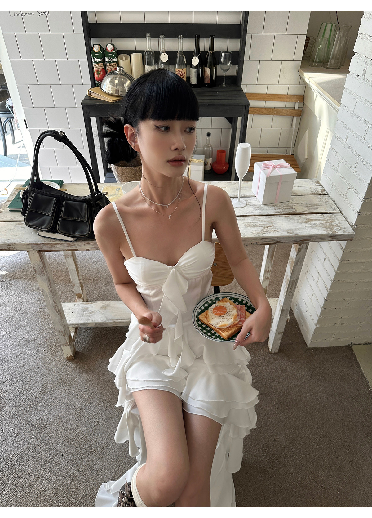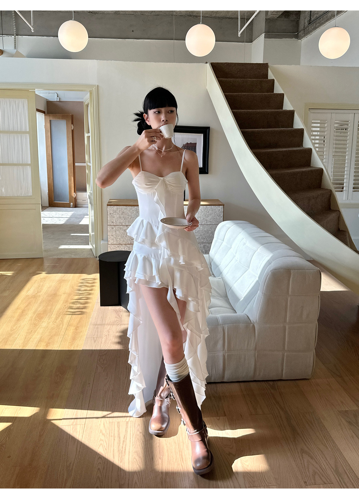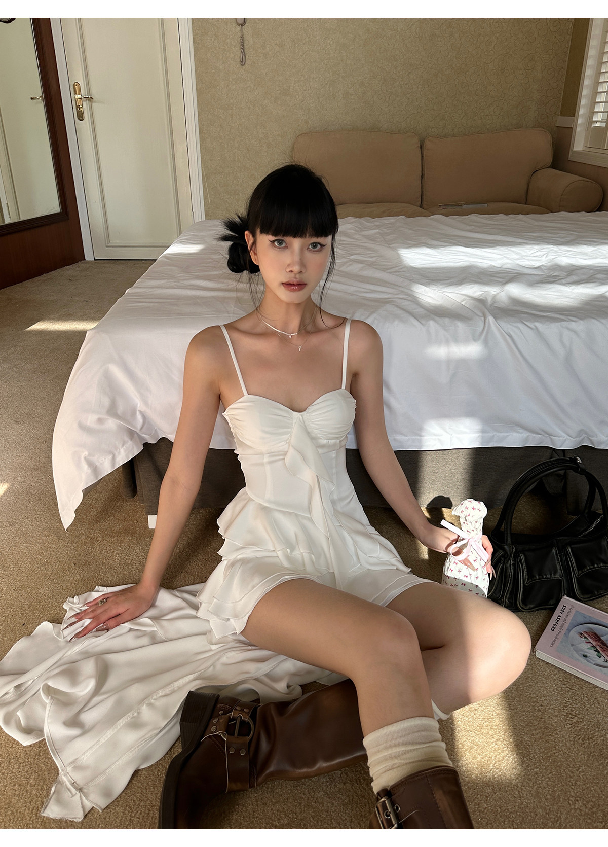 Venuie White Asymmetrical Satin Bud Dress Sanya Southeast Asia Island Vacation Beach Dress Spaghetti Strap Dress