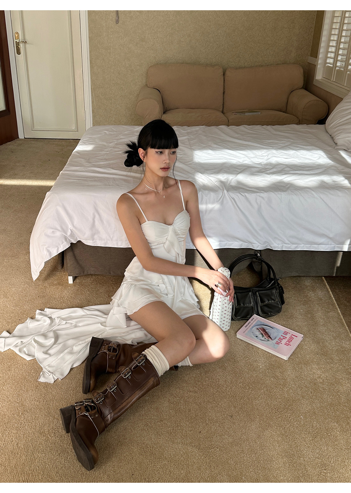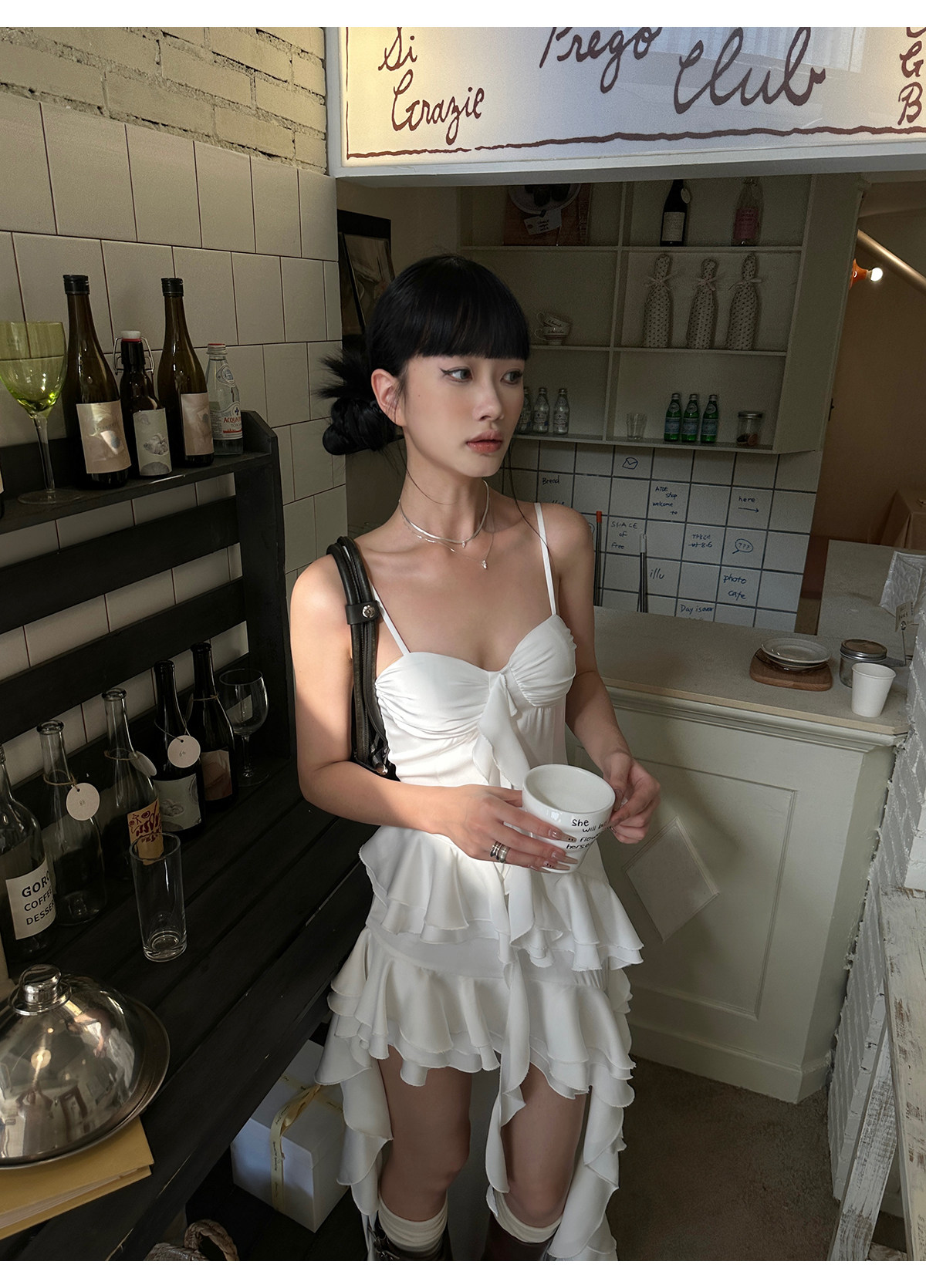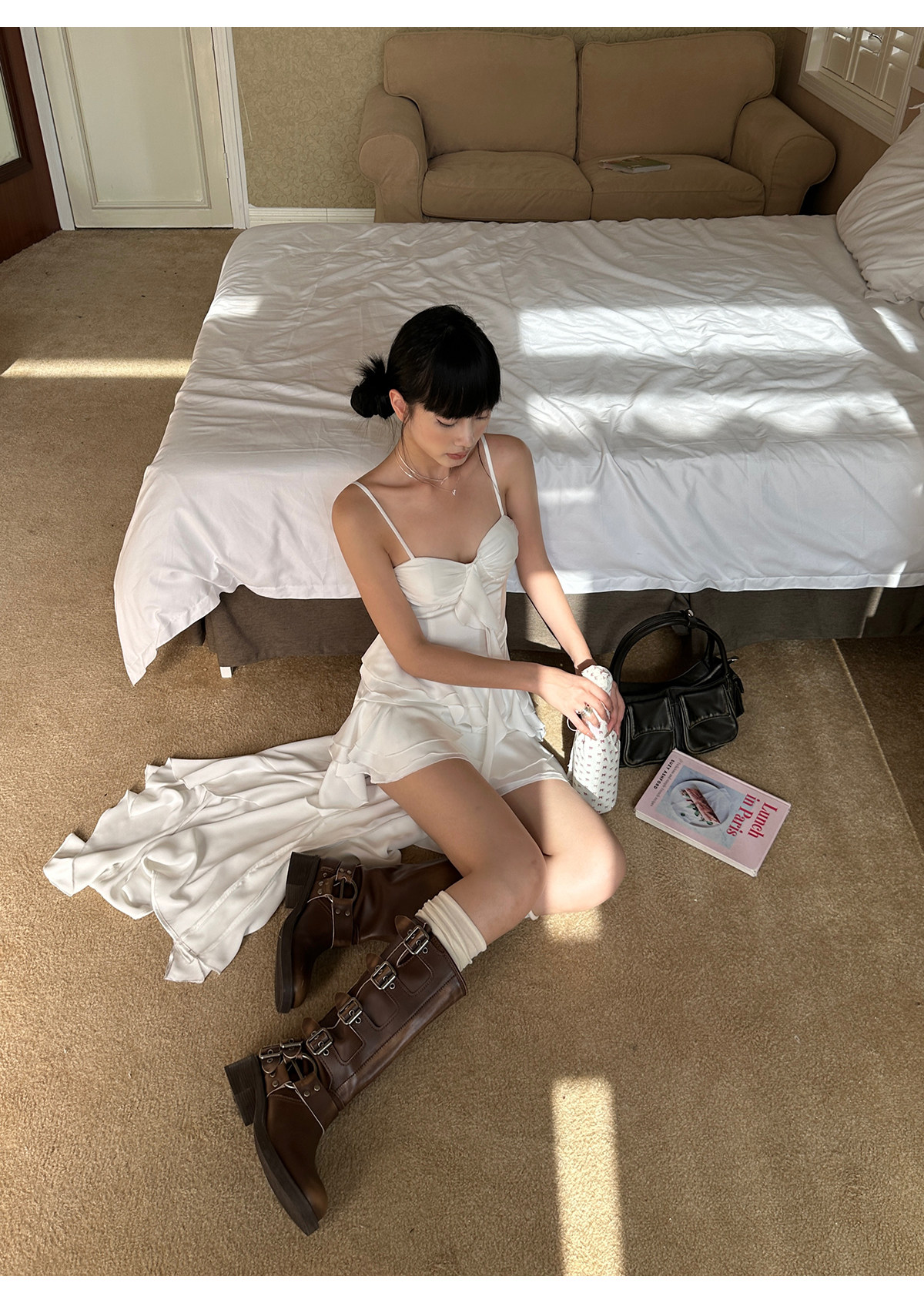Venuie White Asymmetrical Satin Bud Dress Sanya Southeast Asia Island Vacation Beach Dress Spaghetti Strap Dress