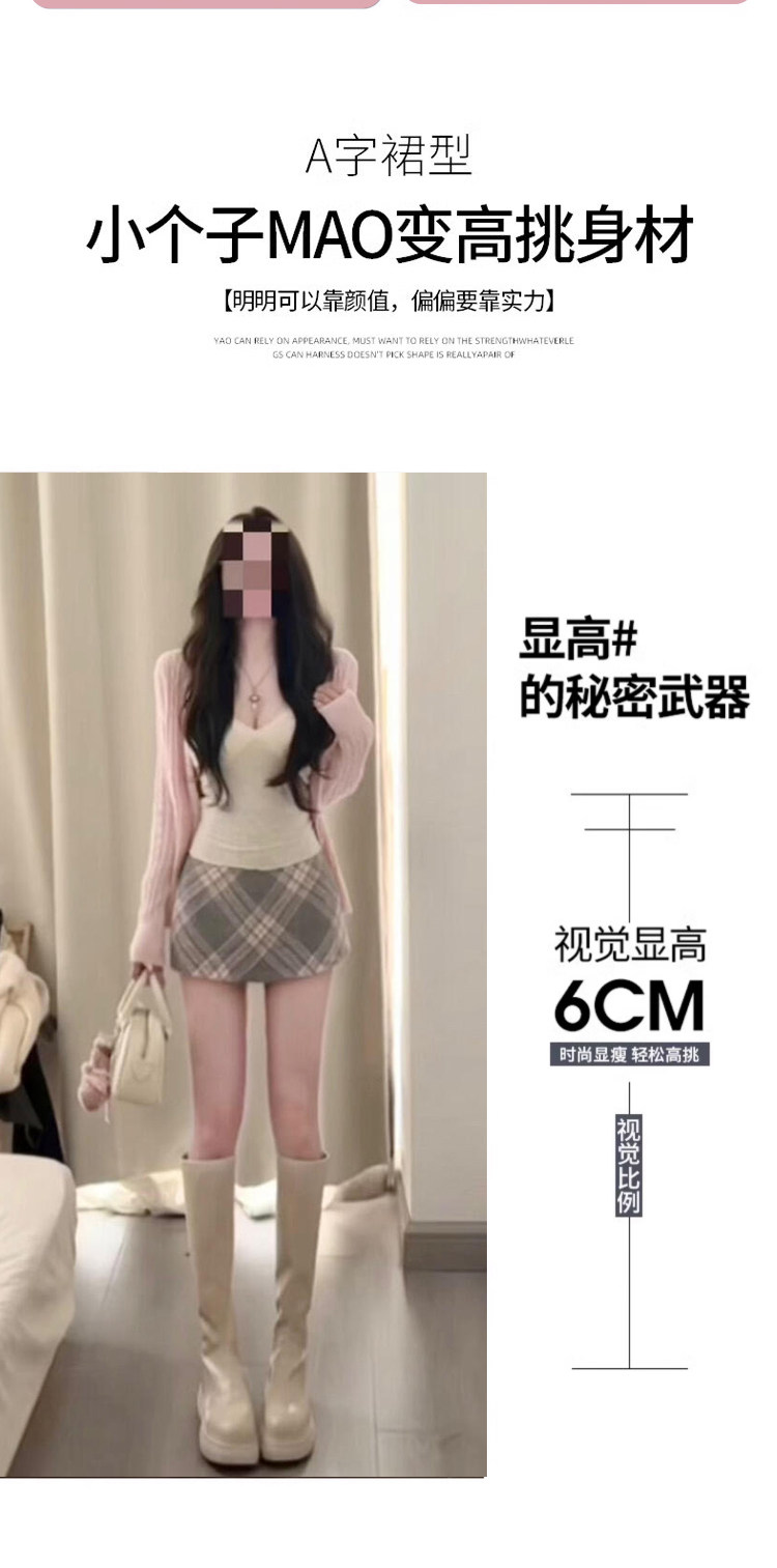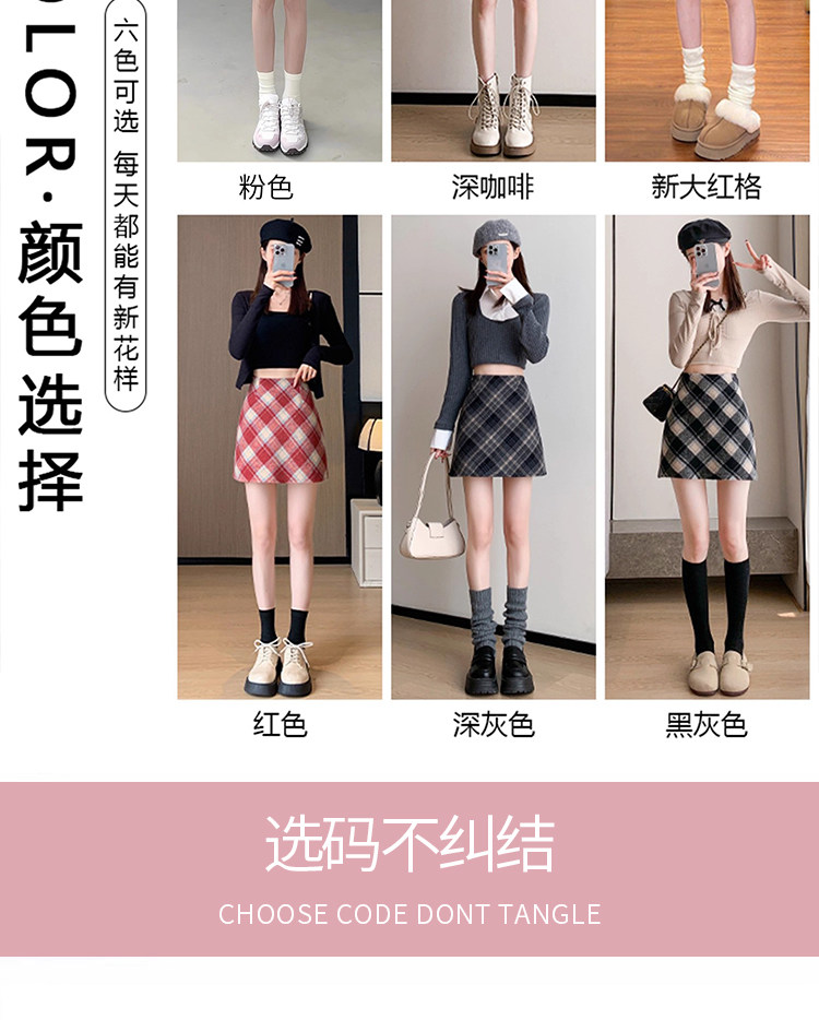 Pink Woolen Plaid Skirt for Women, Spring, Autumn and Winter 2025 New High-Waisted Slimming A-Line Short Skirt for Petite Figures