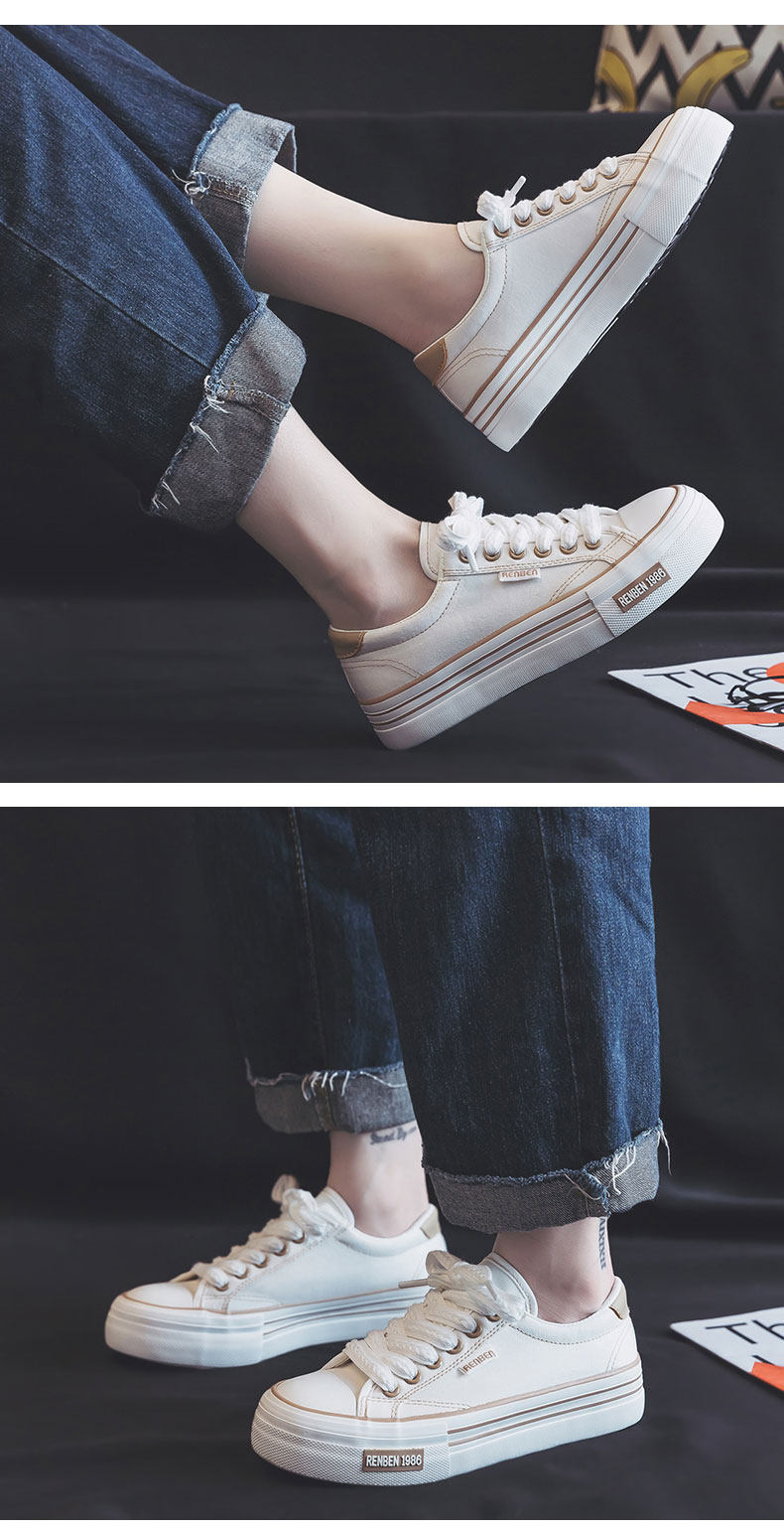 Renben Canvas Shoes for Women, Spring Versatile 2026 New Breathable White Shoes, Thick-Soled Sneakers for Women, Summer Style, Trendy on Instagram